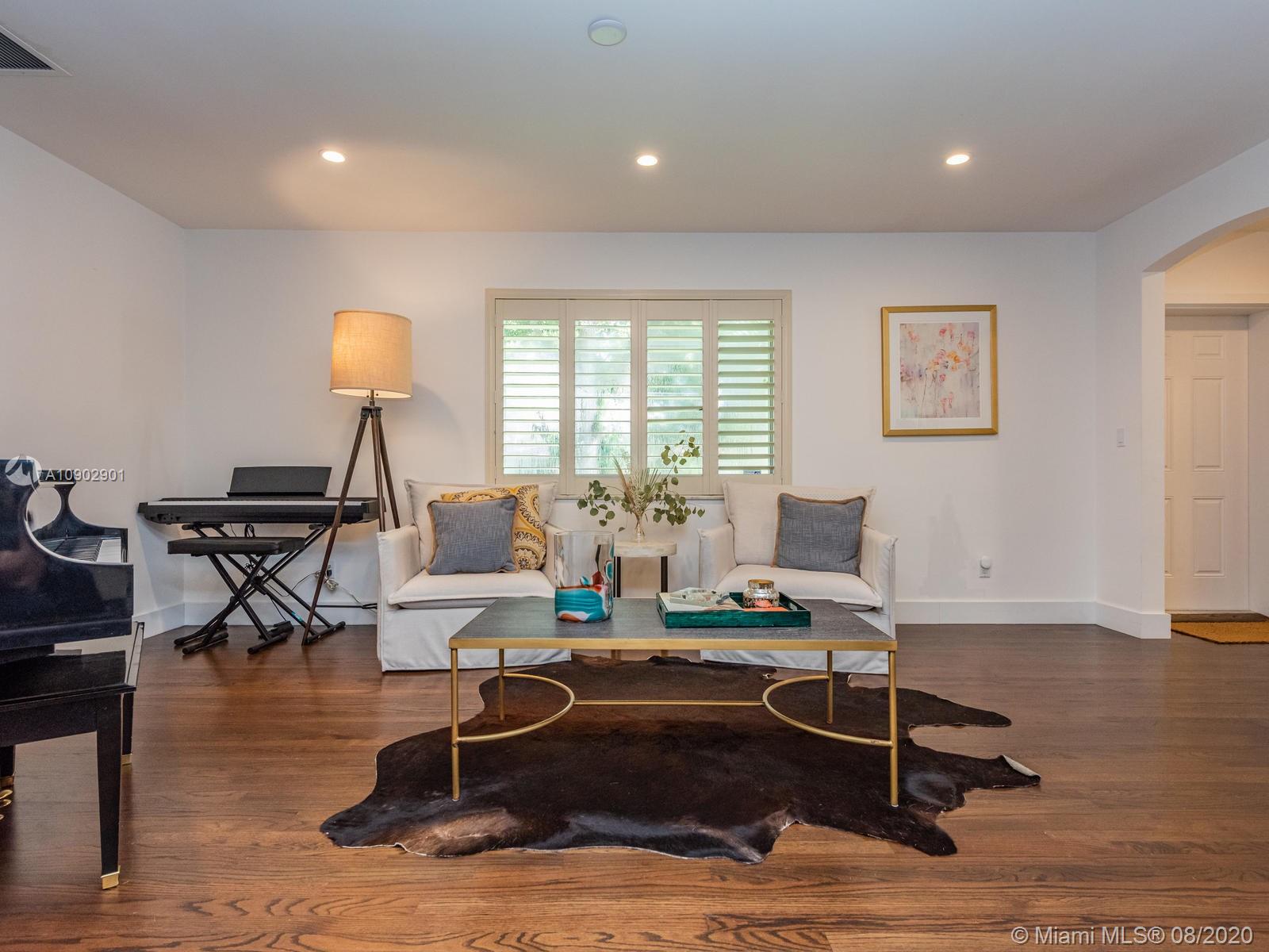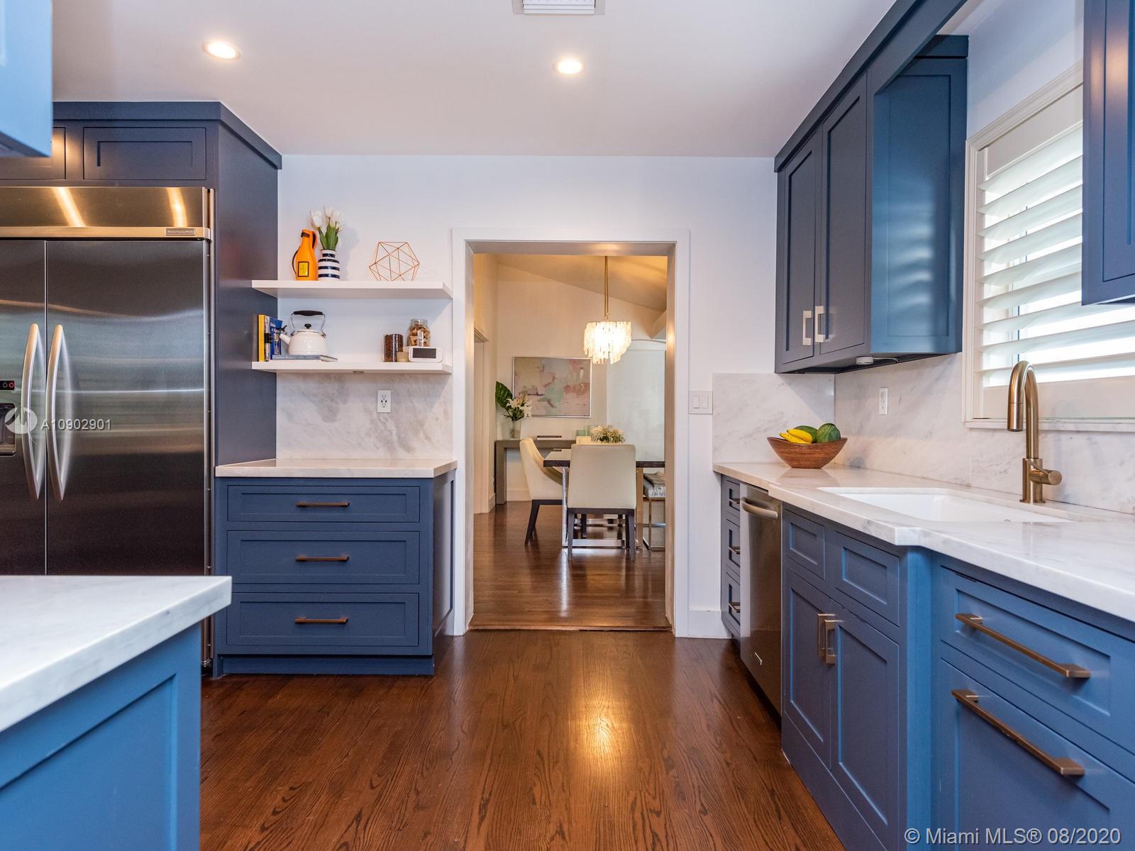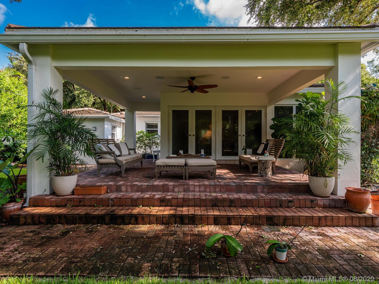 You will fall in love with this picture perfect house. Totally remodeled, impact windows and doors. This house has great flow, lots of natural light. Enter the foyer, that takes you to an open sitting area, living and dining room surrounded by glass doors and windows, overlooking the beautifully landscaped back yard . Enjoy the lovely back yard as a social area, with a large covered terrace, and a canopy from the Oak trees. The house has an ample master suite, with walking closet and master bath. Large kitchen with breakfast area, laundry room and 1 car garage. 3 bedrooms 2 baths and half bath. Great neighborhood and quiet street. This is South Gables "Golden Triangle". Close to parks .This house will not last!!