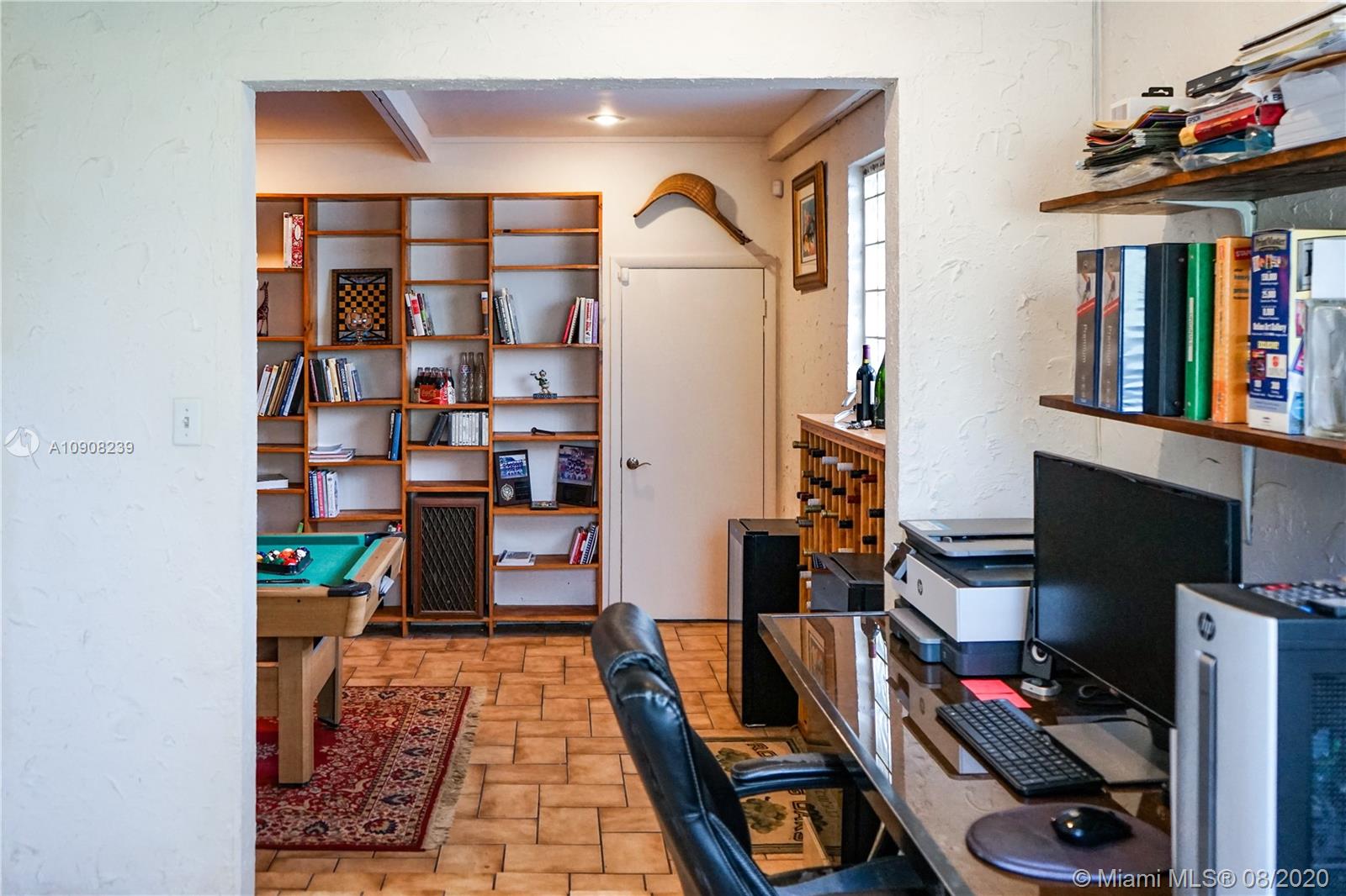 Property located on a quiet street. Large lot 13,000 sq ft. This home has big-ticket items, Newer Roof replace 2018,deck Replaced in 2018, New Pool Pump, Hurricane Shutters, Plantation Shutters, Working Gas Fire Place, AC replaced, Electrical panel changed, Generator, washer and dryer included. Open floor plan and natural light. Circular driveway to park your boat. Updated kitchen, top of the line appliances Refrigerator and dishwasher replaced 2020,gas stove to cook fresh meals. Entertain your friends and family in your screened patio with outdoor bar and a back-patio deck with plenty of land to play. Primary Room has its own patio overlooking the pool deck. Formal Dining & family room. Game Room, Library, Office, Shed. Orchid Garden. Terrazzo Flooring. Pride of ownership.