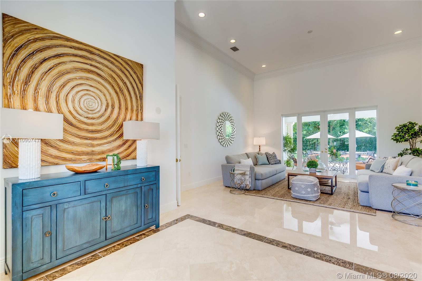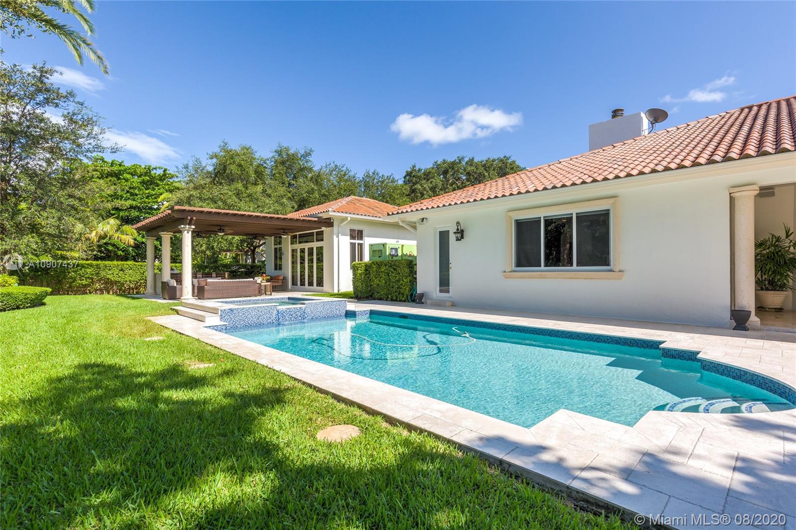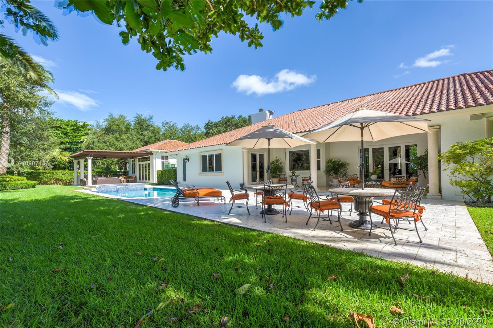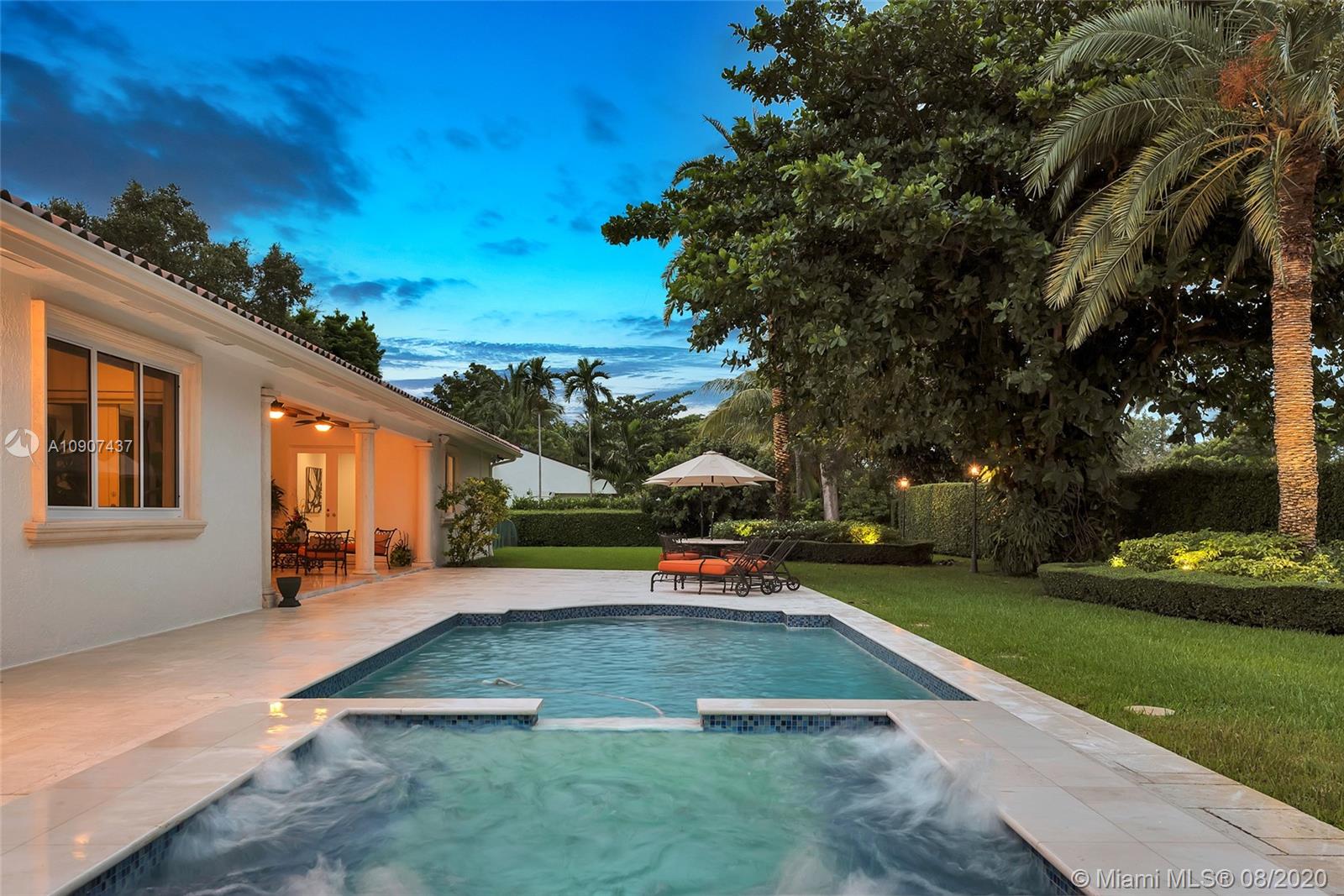 With 10-13' ceilings, light colored travertine floors and prime North Pinecrest location, this single story residence offers style that endures. From the elegant foyer you’re met with natural light at every turn taking you through an idyllic floor plan. Whether you enjoy entertaining loved ones or need a functional multi-generational floor plan, this home has it all. Two wings with a master suite at each; formal living, dining and fireplace family room, plus a grand oak paneled entertainment lounge complete with full bar, 700+ bottle wine room and powder room. The pergola covered patio with full counter summer kitchen extends from the entertainment lounge with views of the private manicured landscaping and heated pool and jacuzzi. Pinecrest Elementary district.