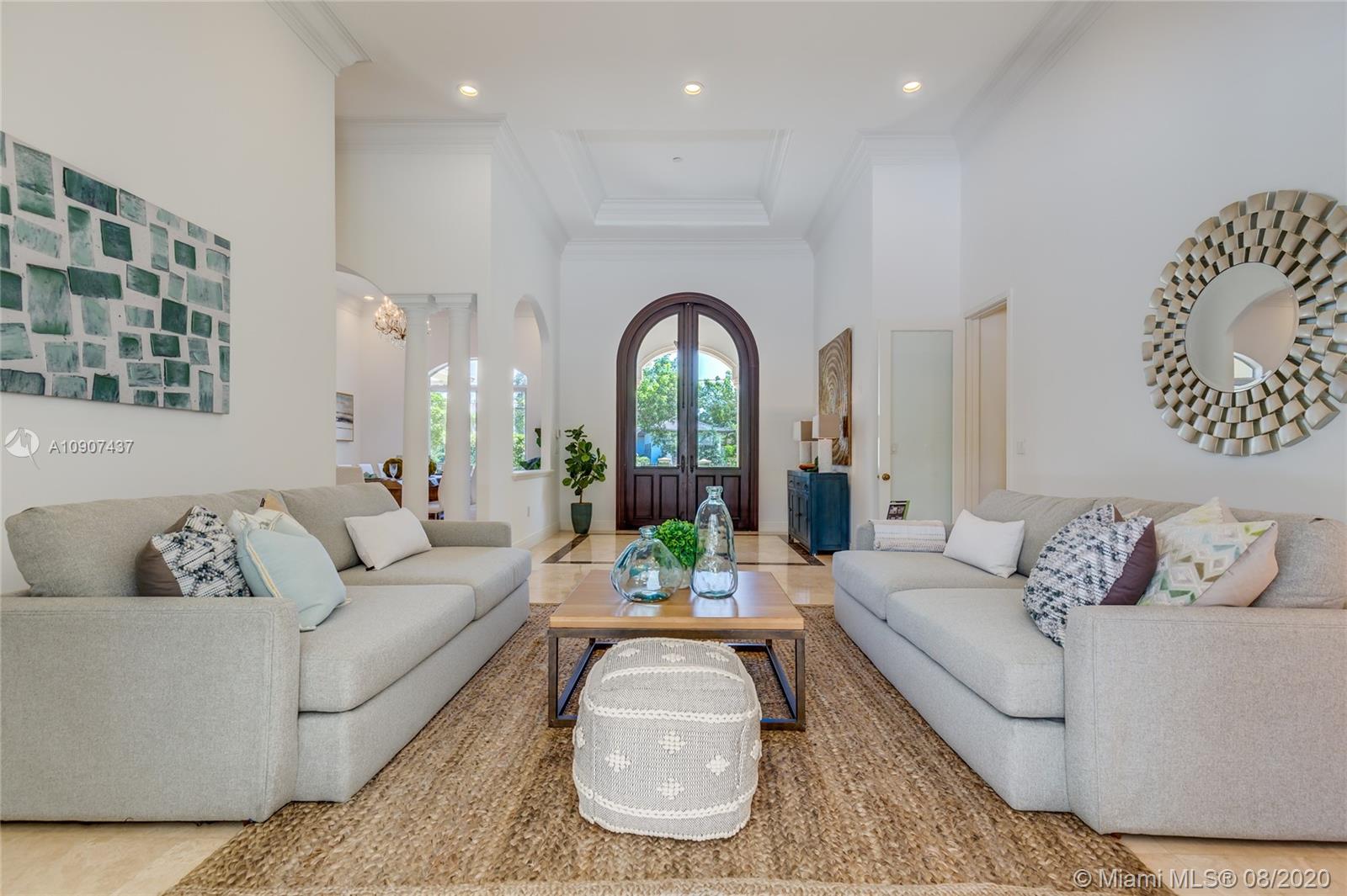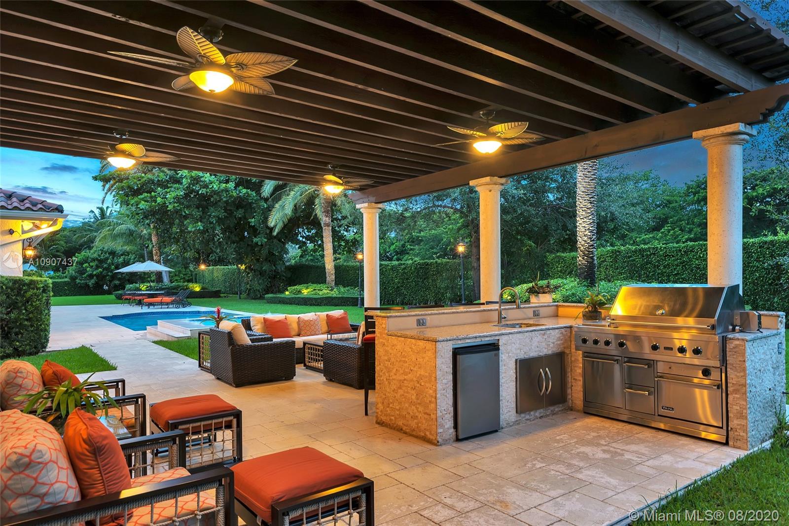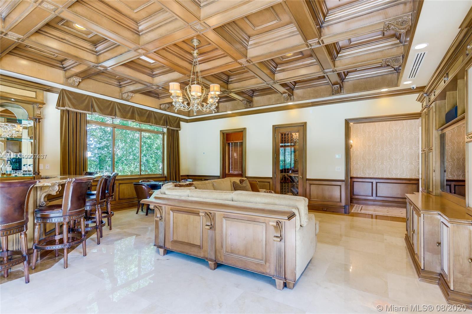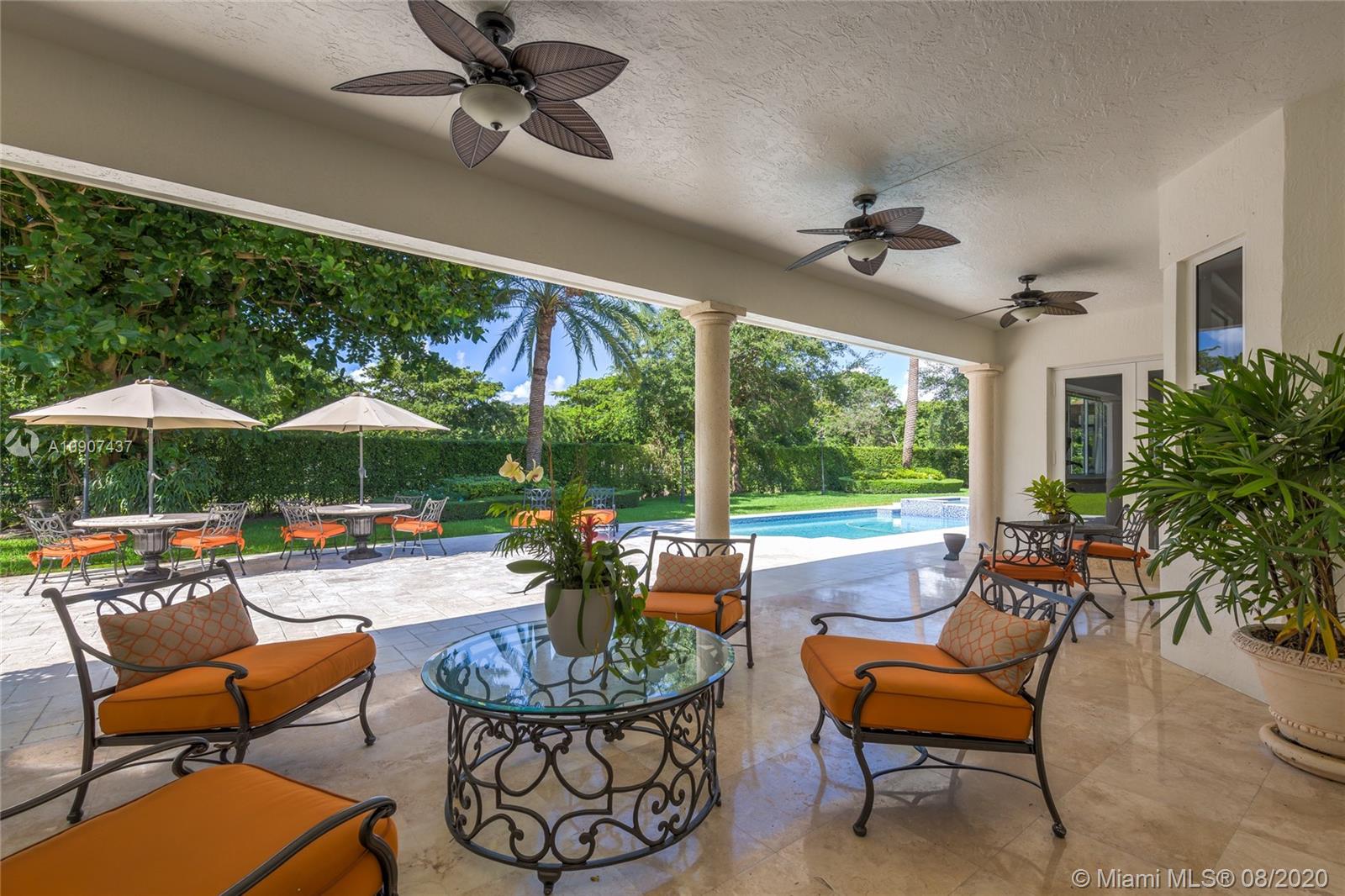 With 10-13' ceilings, light colored travertine floors and prime North Pinecrest location, this single story residence offers style that endures. From the elegant foyer you’re met with natural light at every turn taking you through an idyllic floor plan. Whether you enjoy entertaining loved ones or need a functional multi-generational floor plan, this home has it all. Two wings with a master suite at each; formal living, dining and fireplace family room, plus a grand oak paneled entertainment lounge complete with full bar, 700+ bottle wine room and powder room. The pergola covered patio with full counter summer kitchen extends from the entertainment lounge with views of the private manicured landscaping and heated pool and jacuzzi. Pinecrest Elementary district.