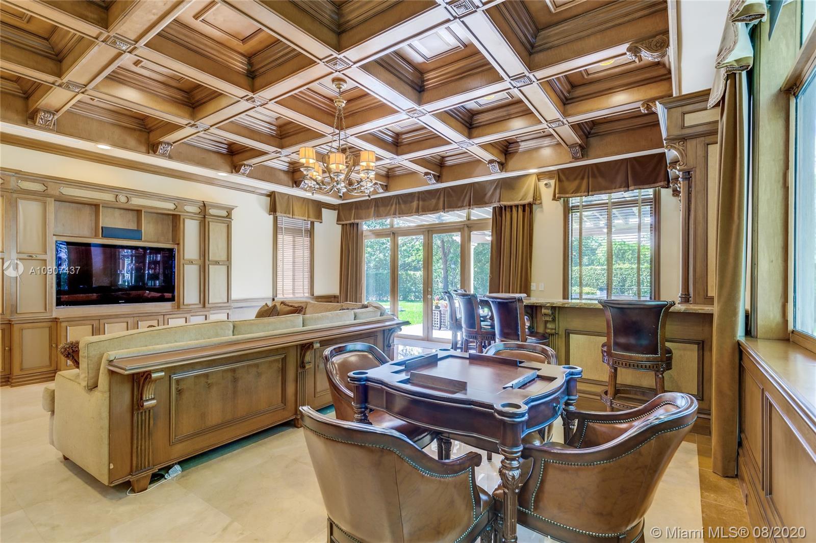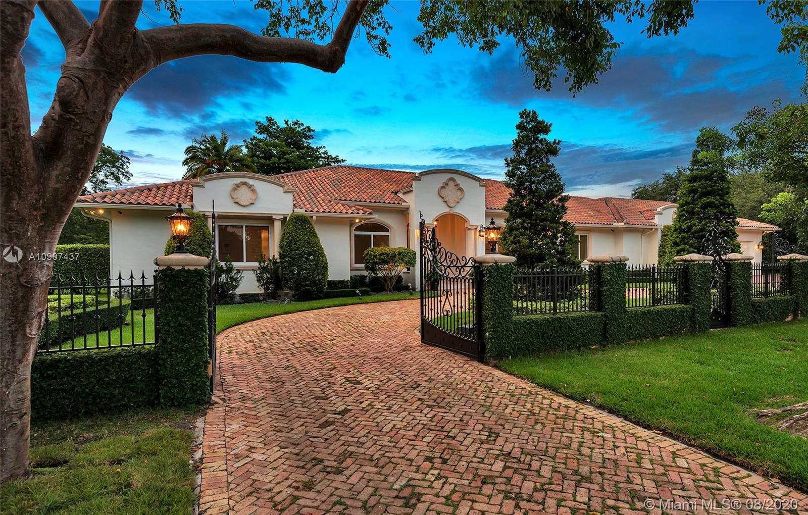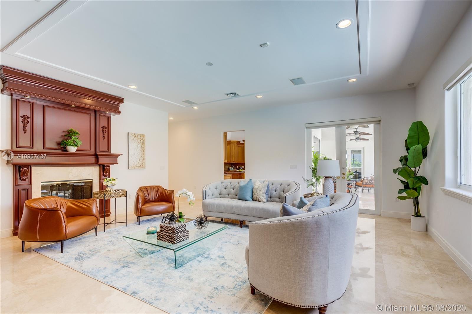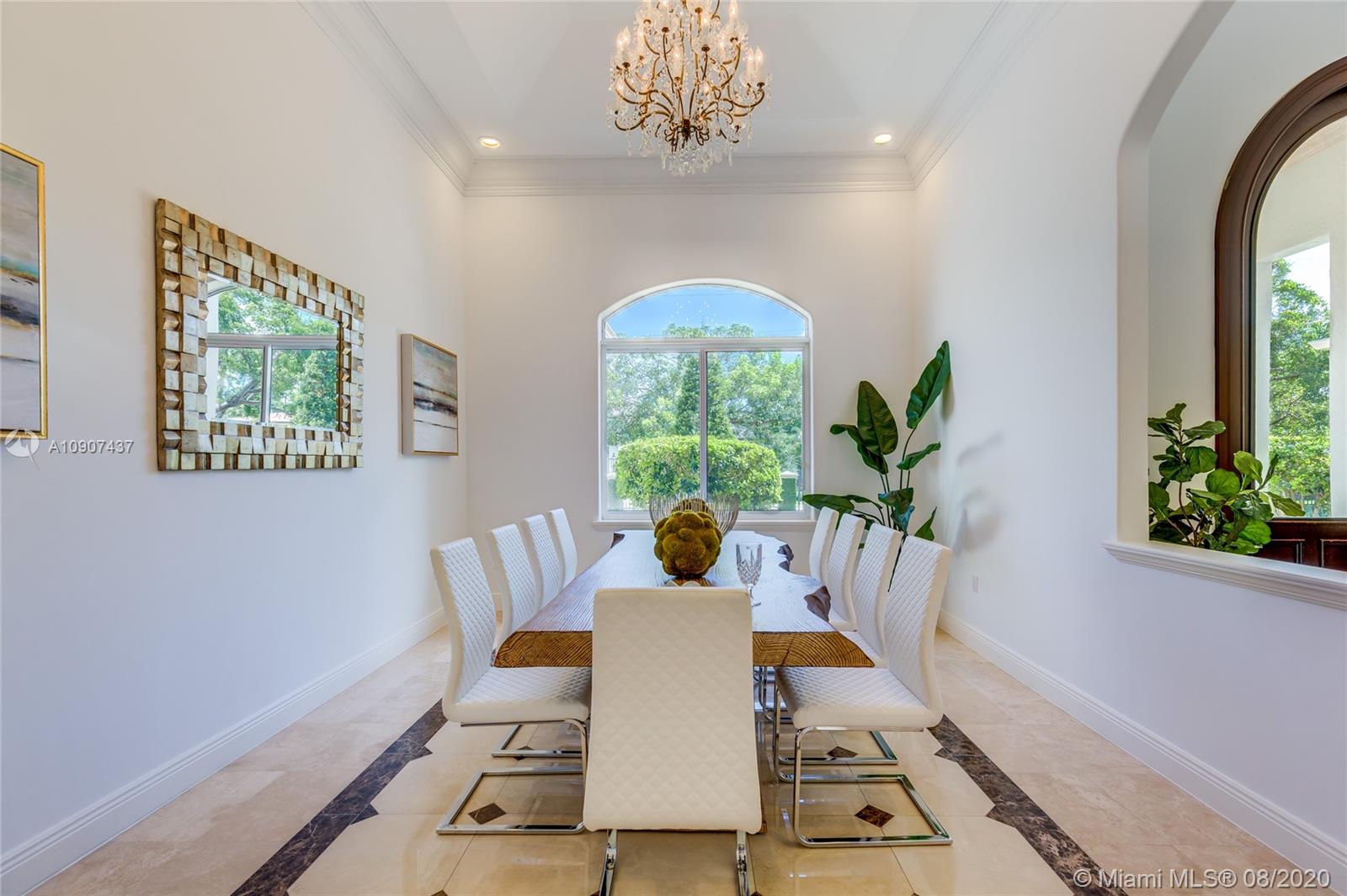 With 10-13' ceilings, light colored travertine floors and prime North Pinecrest location, this single story residence offers style that endures. From the elegant foyer you’re met with natural light at every turn taking you through an idyllic floor plan. Whether you enjoy entertaining loved ones or need a functional multi-generational floor plan, this home has it all. Two wings with a master suite at each; formal living, dining and fireplace family room, plus a grand oak paneled entertainment lounge complete with full bar, 700+ bottle wine room and powder room. The pergola covered patio with full counter summer kitchen extends from the entertainment lounge with views of the private manicured landscaping and heated pool and jacuzzi. Pinecrest Elementary district.