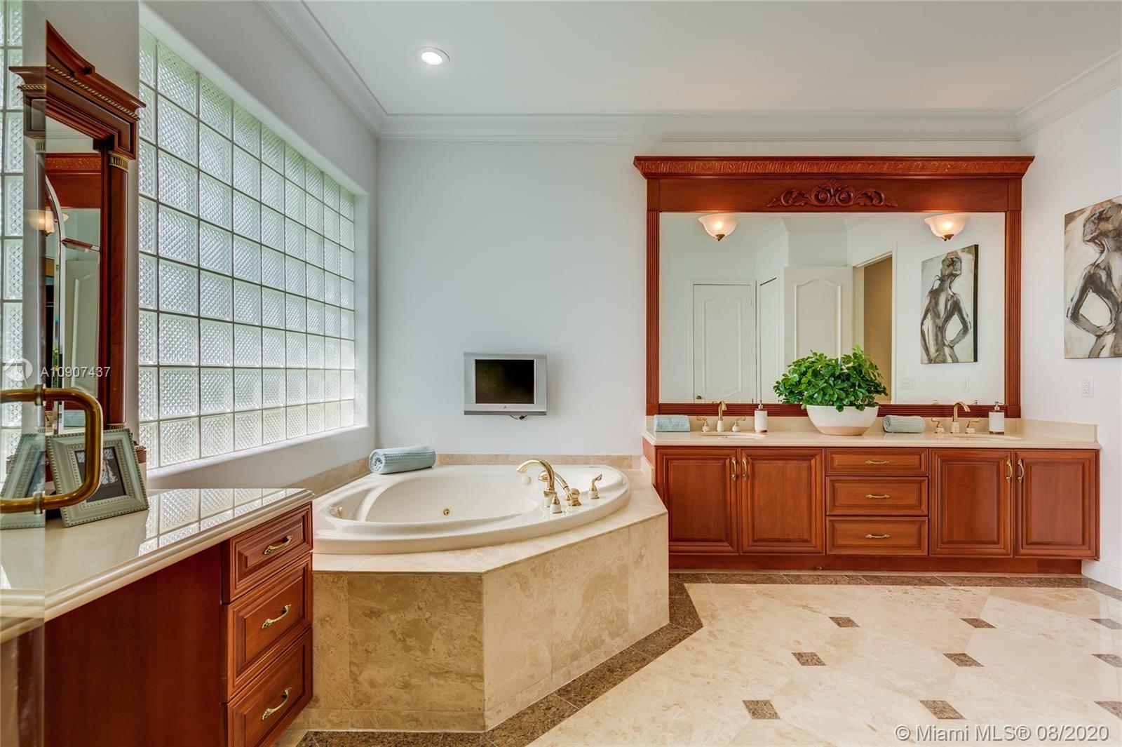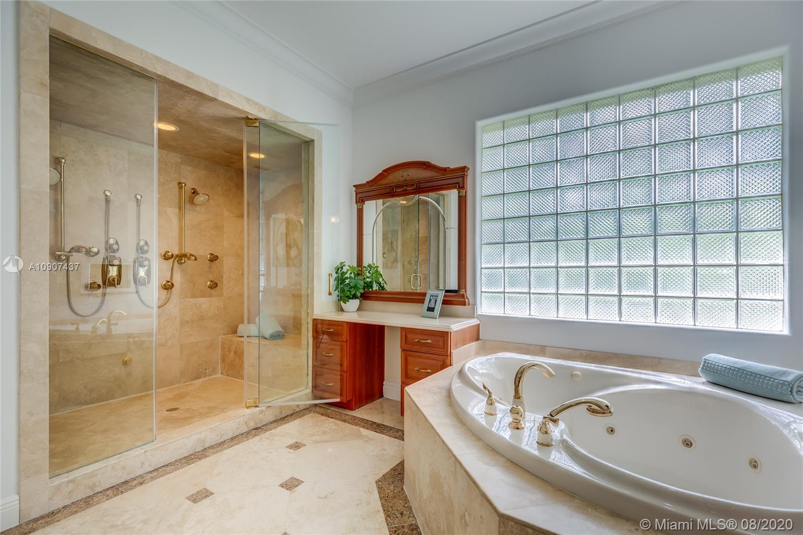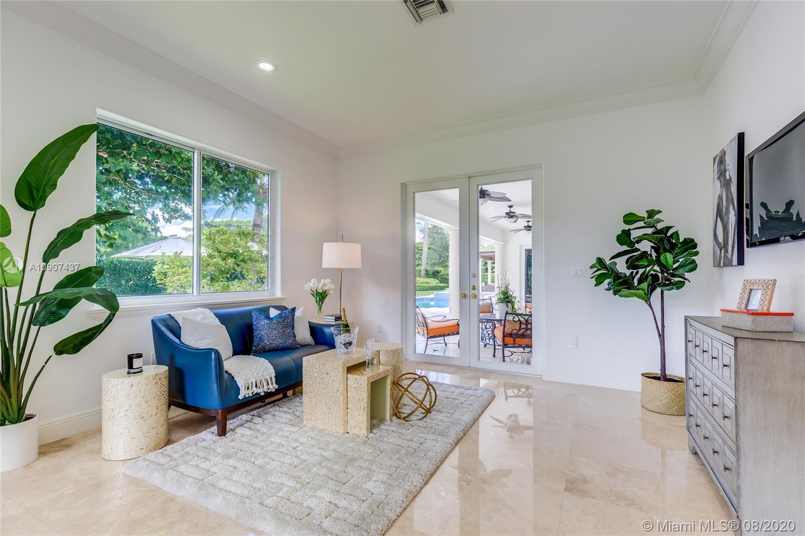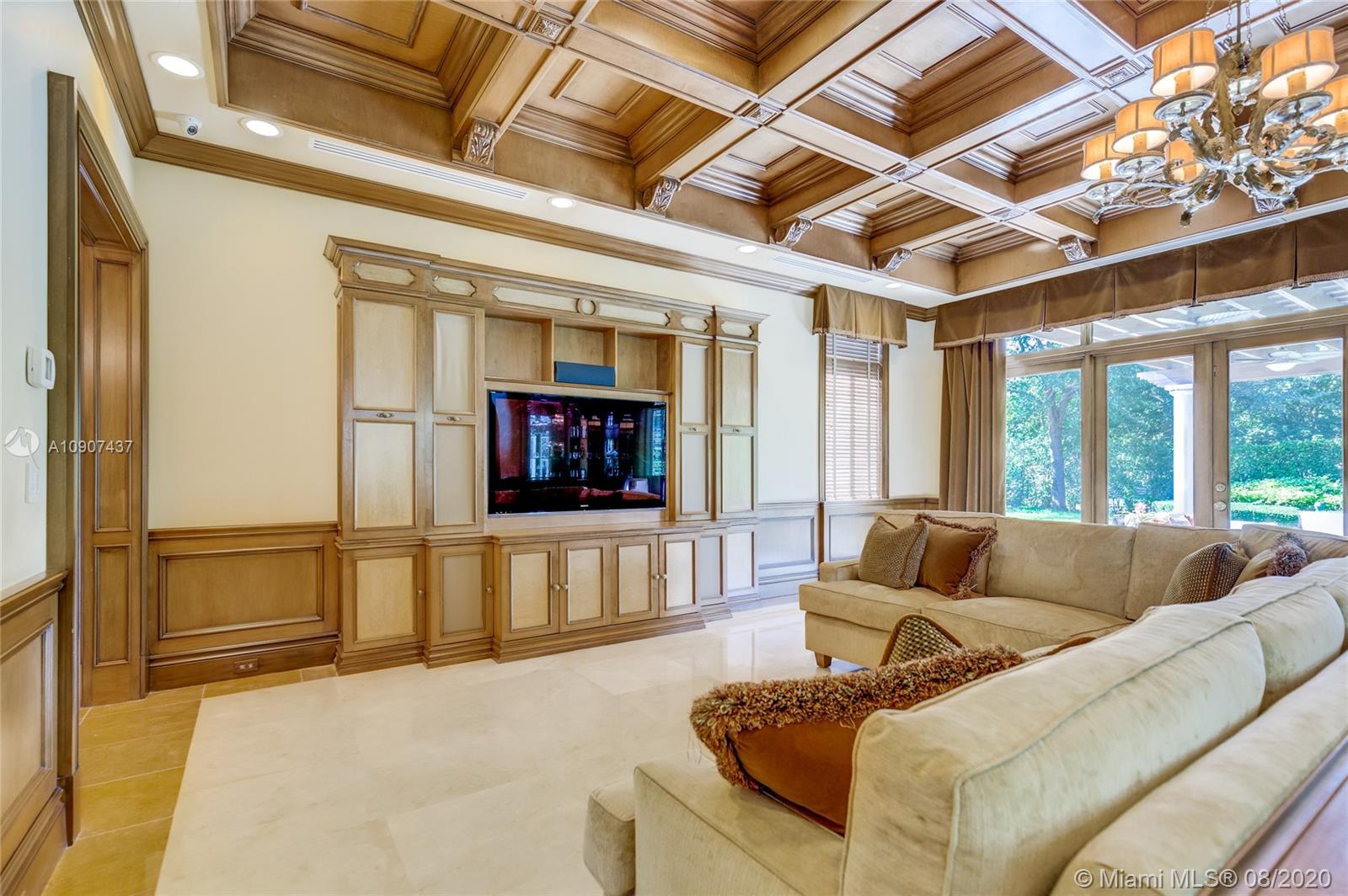 With 10-13' ceilings, light colored travertine floors and prime North Pinecrest location, this single story residence offers style that endures. From the elegant foyer you’re met with natural light at every turn taking you through an idyllic floor plan. Whether you enjoy entertaining loved ones or need a functional multi-generational floor plan, this home has it all. Two wings with a master suite at each; formal living, dining and fireplace family room, plus a grand oak paneled entertainment lounge complete with full bar, 700+ bottle wine room and powder room. The pergola covered patio with full counter summer kitchen extends from the entertainment lounge with views of the private manicured landscaping and heated pool and jacuzzi. Pinecrest Elementary district.