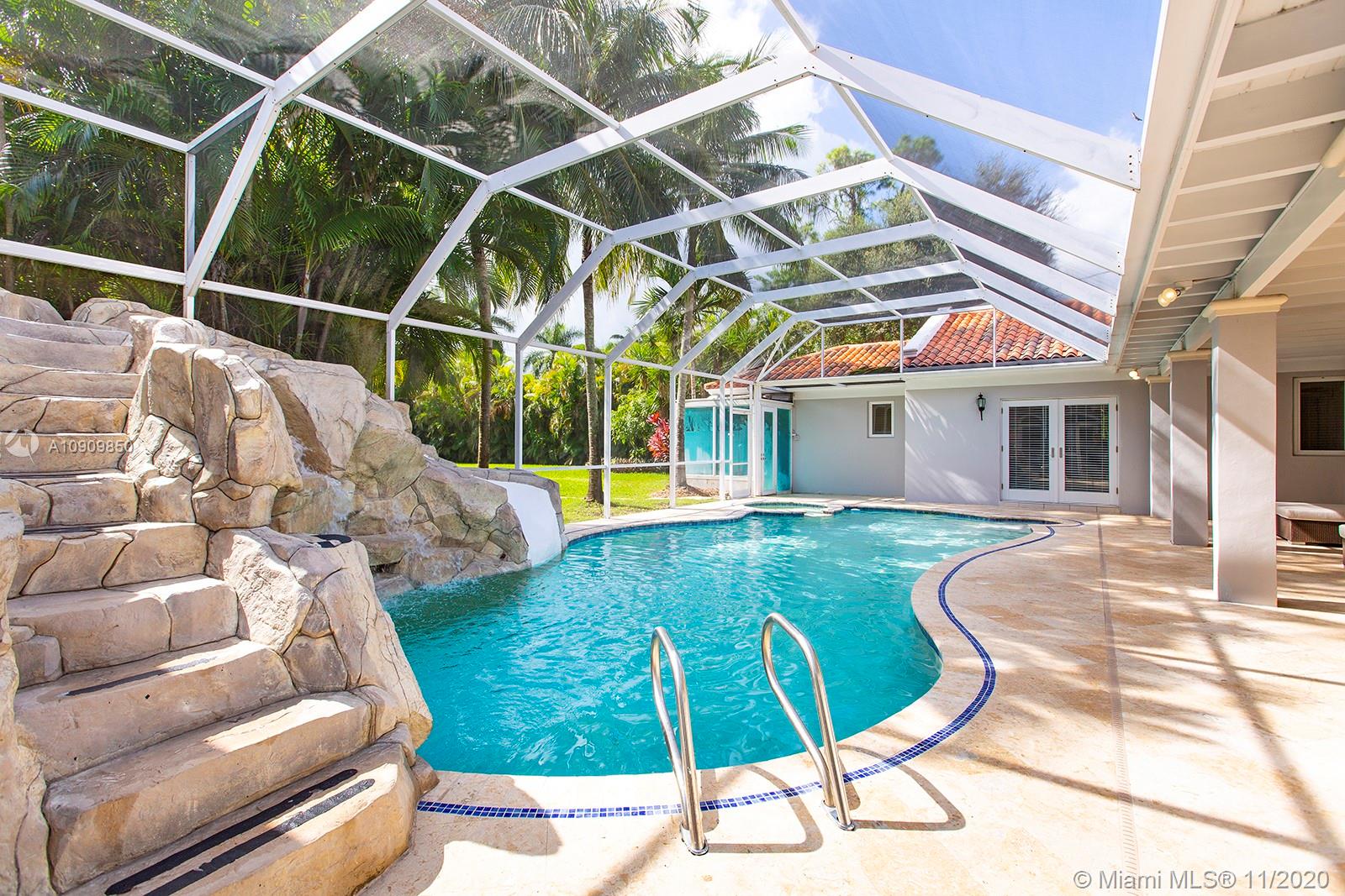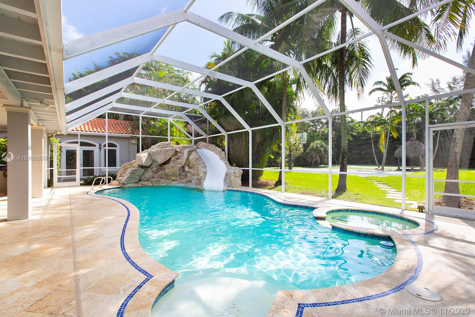 Perfect Pinecrest playground- newly improved and back on the market! 2003 Blt large family home on special quiet and private dead end street in north Pinecrest. All impact glass windows and doors throughout, huge master suite, stylish den, reading nook, high ceilings, whole house generator w/1000 gallon propane tank, and more. Deep full and lush acre with all the features of your own resort: putting green, pool with great waterfall and slide, basketball court, wonderful yard, summer kitchen under large covered patio, treehouse, big motor court, 2-Car garage, open and inviting large spaces perfect for the family and for entertaining.