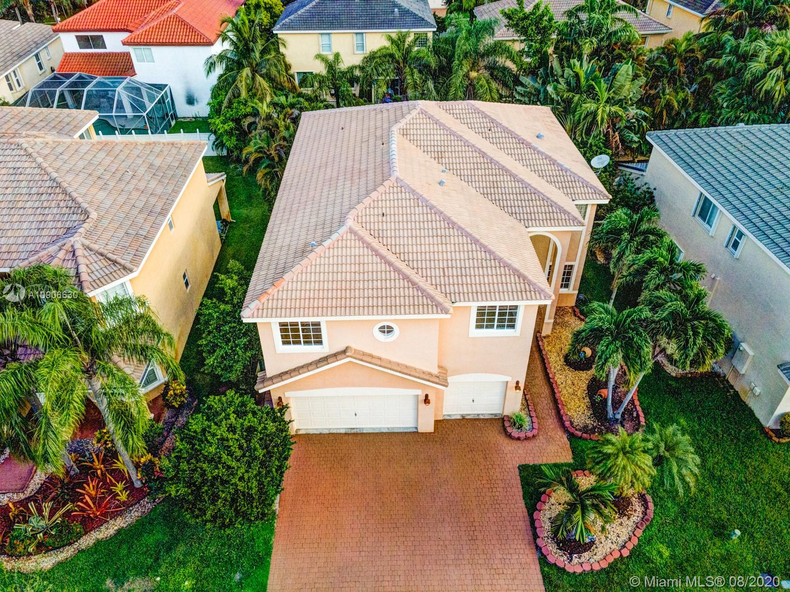 Beautiful 2 story POOL home in the gated community of Pembroke Shores.The home features 6 bedrooms (Huge Master upstairs w/sitting area)+open loft and 4 full bathrooms.One bedroom & bathroom are on the ground floor. Enjoy family gatherings and cook delicious meals in the beautiful kitchen.3 car garage and large paved driveway and patio.TWO newer A/C units,volume ceilings, and spacious laundry room.The backyard area with its inviting pool and private oasis is waiting to host large family events or small late night stargazing.This community offers its residents two 24 hour guarded entrances and an additional resident’s entrance, children's Playground