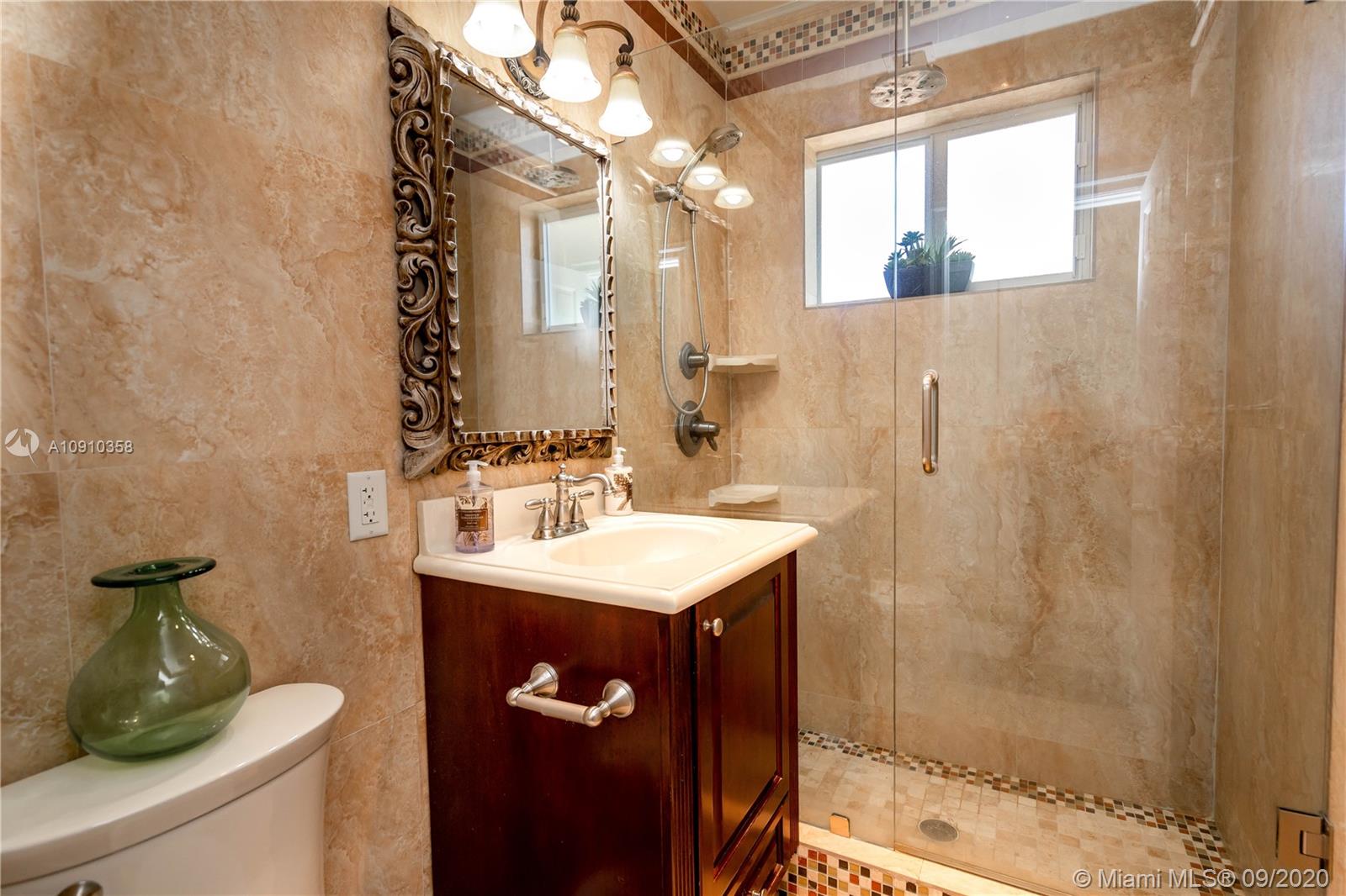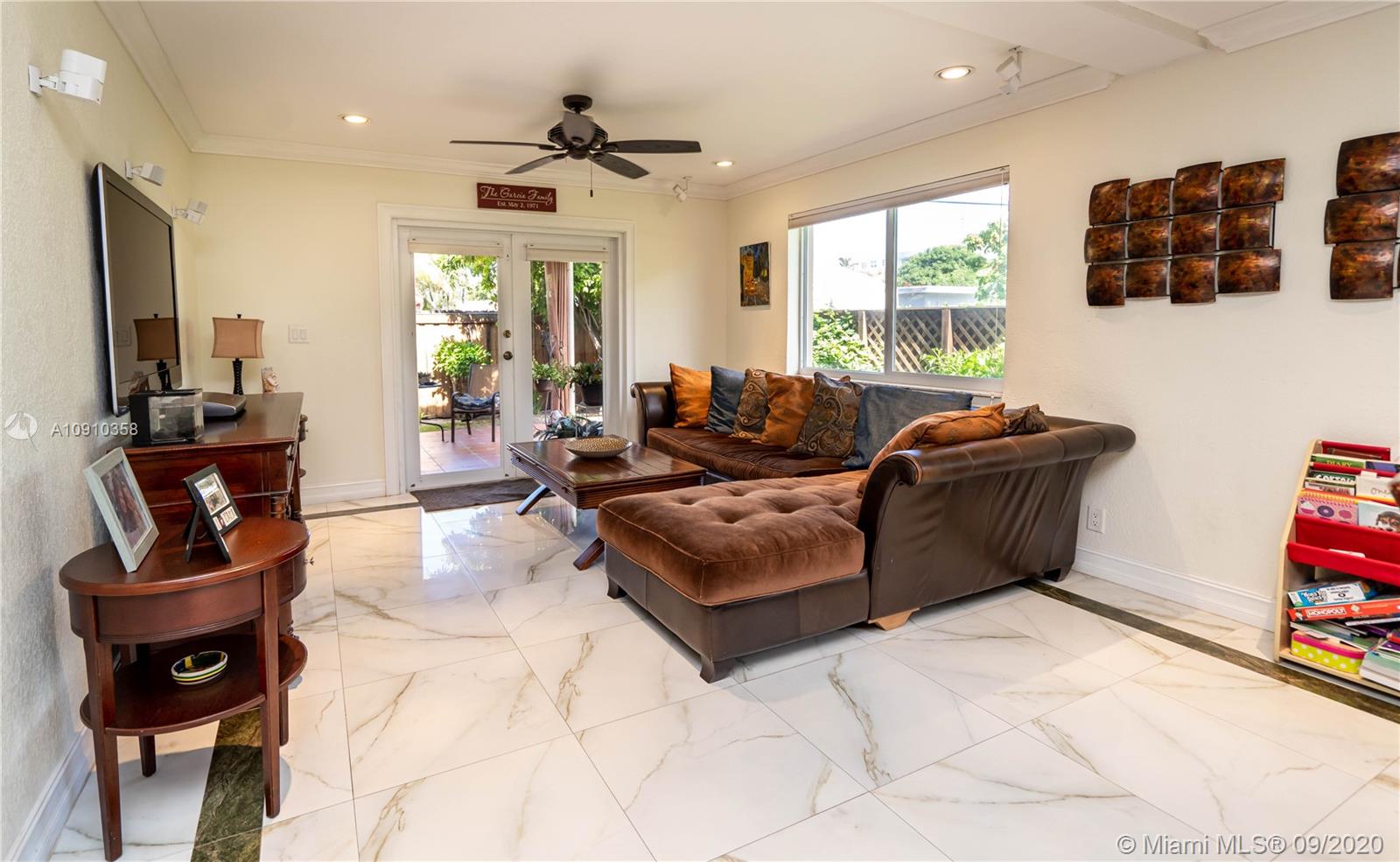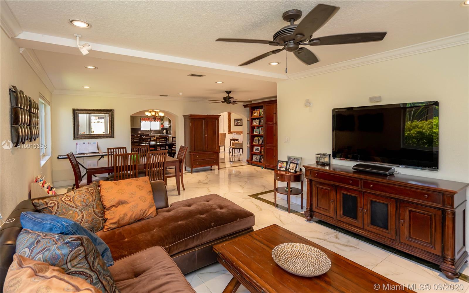 Beautifully updated home in North Bay Village in the Treasure Island section. Features, 3bd/2ba, true master suite and a spacious family room. Open floor plan with large porcelain floors, marble kitchen counters, stainless steel appliances (presently has electric range but gas hookup is available), gas water heater, impact windows & doors and large covered patio. Financing for Jumbo loans are available with only 10% down payment through our preferred lender.
