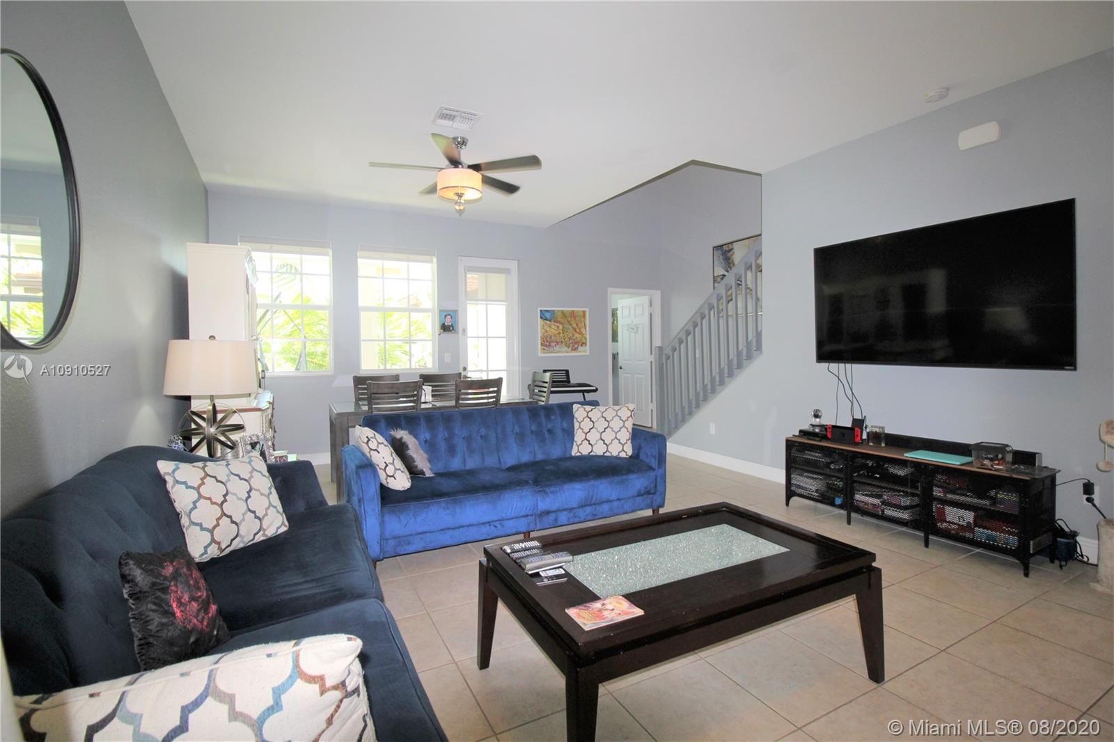 Beautiful Tri-Level Townhouse in Montclair at Miramar, Spacious Home with 2 Car Garage and Driveway for 2 cars. 42" High Kitchen Cabinets, Stainless Steel Appliances, Designer Kitchen Back-splash, Kitchen Island. Ceiling Fans Through out the house, Ring Door Bell, Solar Shades. Centrally located, 5 min to Florida Turnpike, 10 min to I-75, 10 min to Shopping malls and Parks. Community Pool, Gym, 3 playgrounds, Jogging path around lake. Association includes Cable, Internet, Security Alarm System.