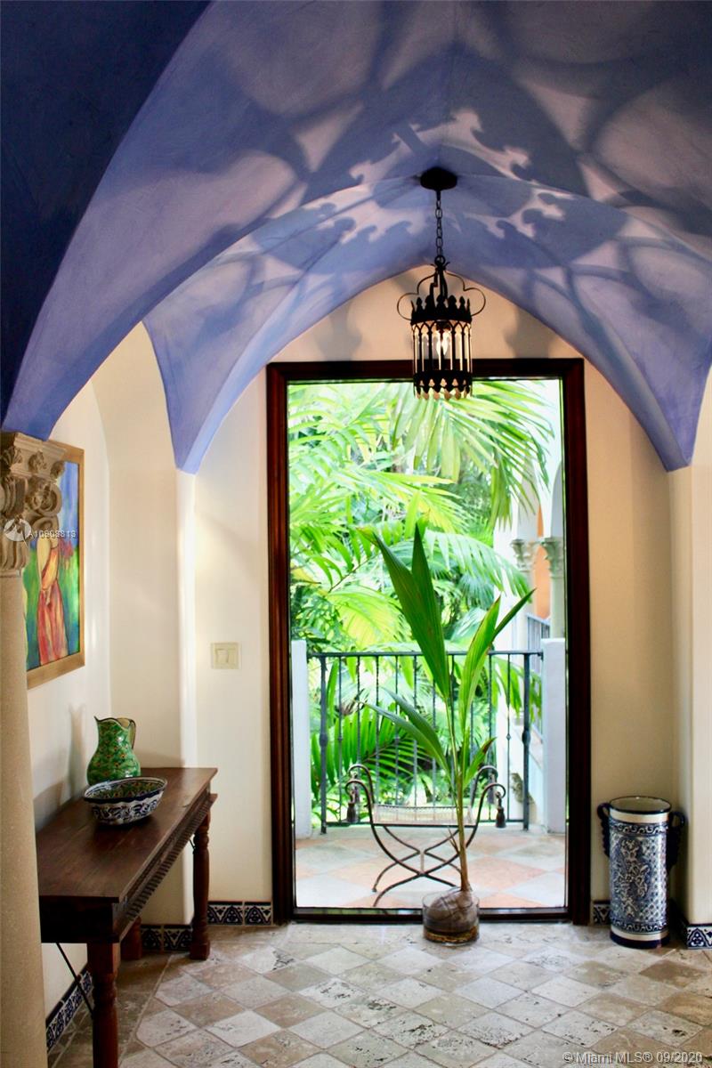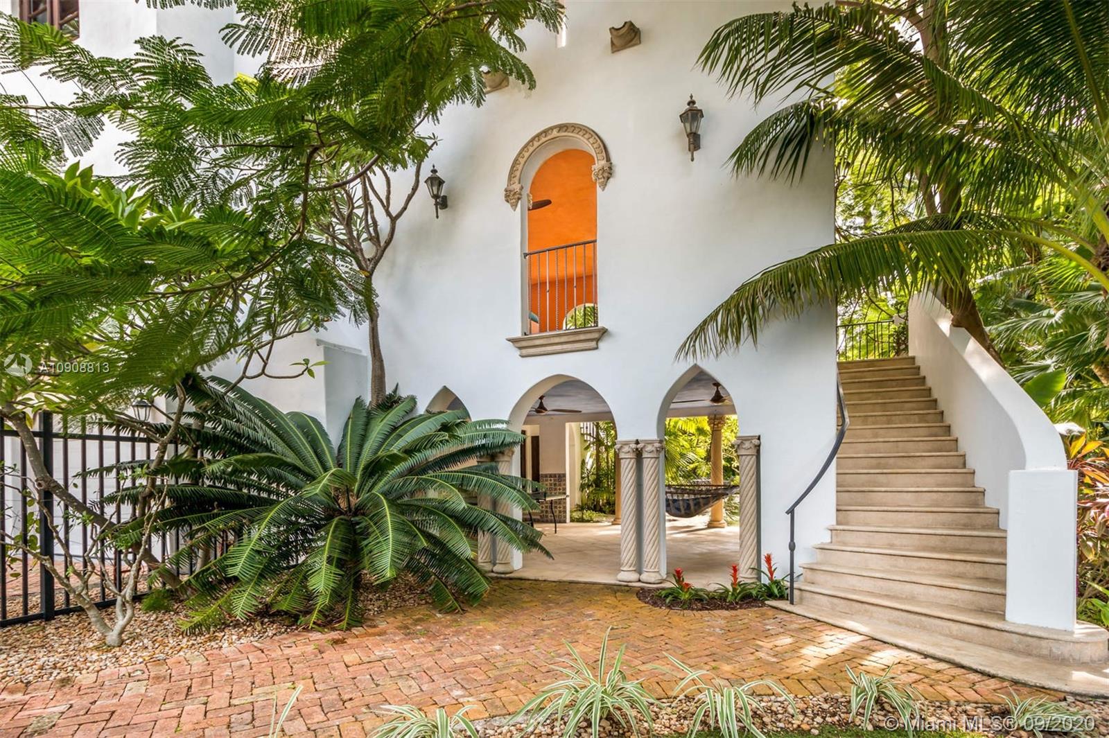 An extraordinary 4 bedroom, 4 bath, jungle retreat in Key Biscayne with over 6000 square feet of covered patios, terraces, balconies and more. This four-level Moorish villa is unlike any other house on the Island. From a beach-entry 60-foot fern laden lagoon pool, to the Moroccan style tile-walled garden patio, to the sunset views on the tower top deck. This unique corner lot with its 1300-foot expansive turf interior lawn ushers you into a artistically crafted home with Spanish, Mexican, and Moroccan hand painted tiles; four bedrooms with in-suite baths, a pool-side cabana guest room, an elevator, two home offices, three fireplaces, updated mahogany custom impact windows and doors, a fourteen window mirador tower office with 360 degree views.VIDEO IS A MUST SEE!!