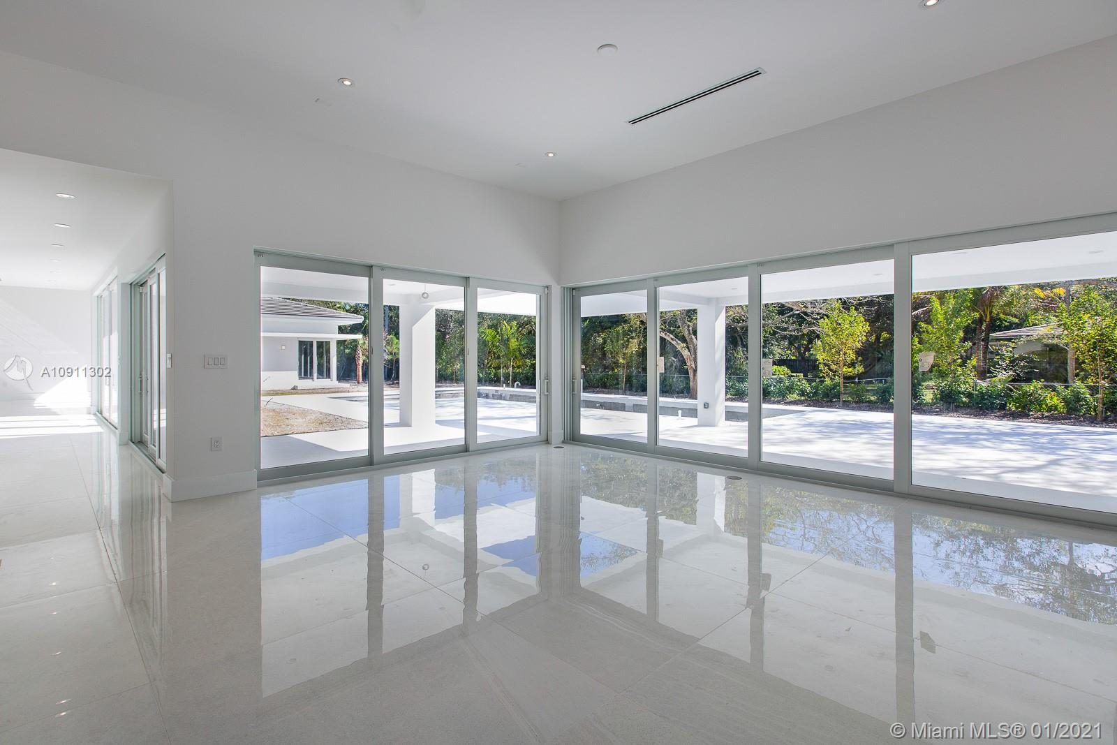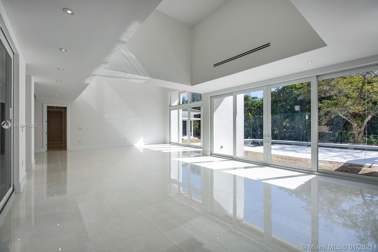 Brand new in Pinecrest. This 6 bedrooms 6 1/2 bathrooms home on an over 35,000 SF corner lot. Walk into 22' high ceilings overlooking the pool. Italian kitchen with Thermador appliances, gas cooktop, water heaters and washer. Italian porcelain tile in all common areas. Wood floors in bedrooms. All en suite bedrooms with walk-in-closets. Master bedrooms has sitting area. His and Hers Closets with large shower and freestanding tub. Glass-encased wine cellar, walk-in kitchen pantry, laundry room, full cabana bath, Trane AC Units. Home has been pre wired for home automation.