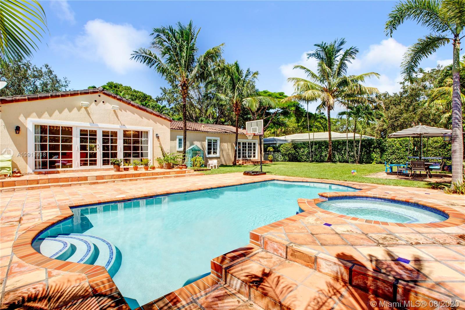 Incredible property in an ideal Coral Gables location! This home is situated on a double-wide lot with more than 13,000 SF on a beautiful tree-lined street. The home features old Coral Gables charm with a stunning entry fireplace, paired with modern renovations including impact windows, PVC piping, and a large kitchen complete with a built-in buffet and wine refrigerator. The living spaces are bright and airy with incredible natural light. It’s the perfect home to entertain or raise with a family, with a large backyard, outdoor kitchen and full-size pool with jacuzzi. Live the Coral Gables lifestyle in this move-in ready four-bedroom, three-bath home.