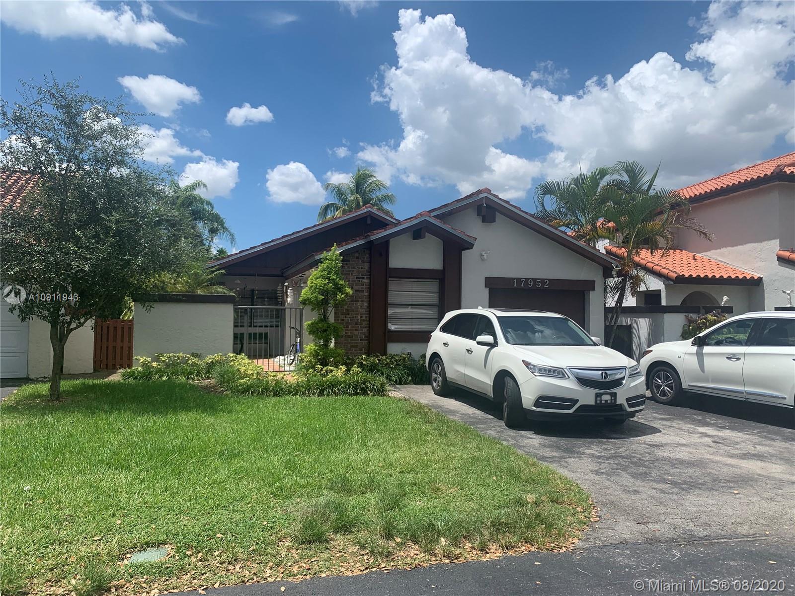 Great home in a quiet comunity on the area of Miami Garden. This cozy house has a converted garage which it makes it a 3er bedroom, Granite kitchen counters and functional layout for entertaiment and family enjoyment. Water view backyard to catch the most magical sunsets and spending time with friends and family. The community count with all the necessary amenities like pool, gym close to restaurantes and shopping centers. The Bahama roof it is only 5 years old and the house is in excellent condition. Whether you want to raise a family or aquire an income producing property, this beautiful home will be your best match. Come see for your self or call listing agent for more details.