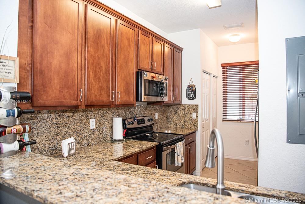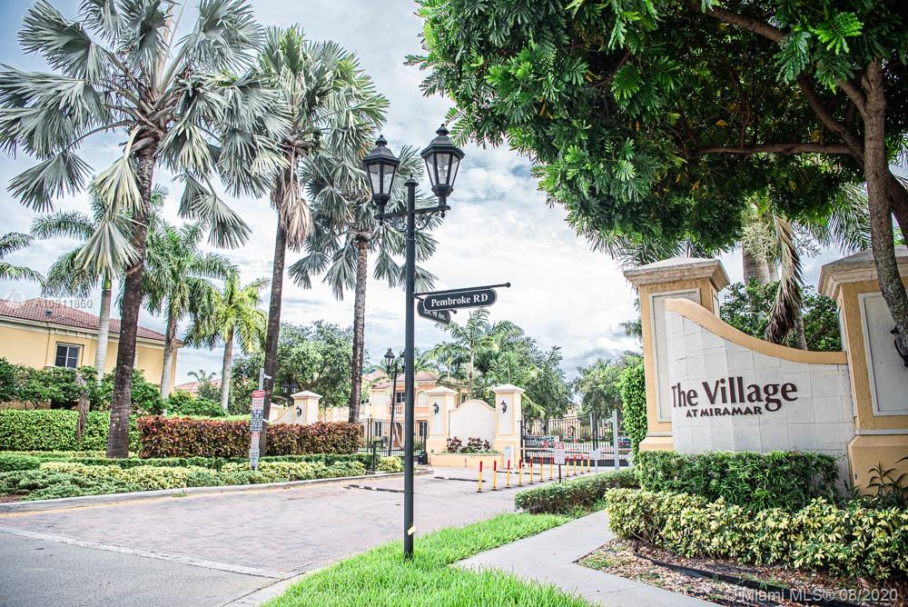 Bright Two-story 3 BR/2.5 Bath corner unit located in the desirable The village at Miramar, gated community. Laminate wood floors upstairs and ceramic tile downstairs. SS Appliances, granite counter-tops, new accordion shutters, two assigned parking spaces in front of the unit. The Village at Miramar community offers a clubhouse, pool and kids play area/park. Perfect for families and first time buyers.