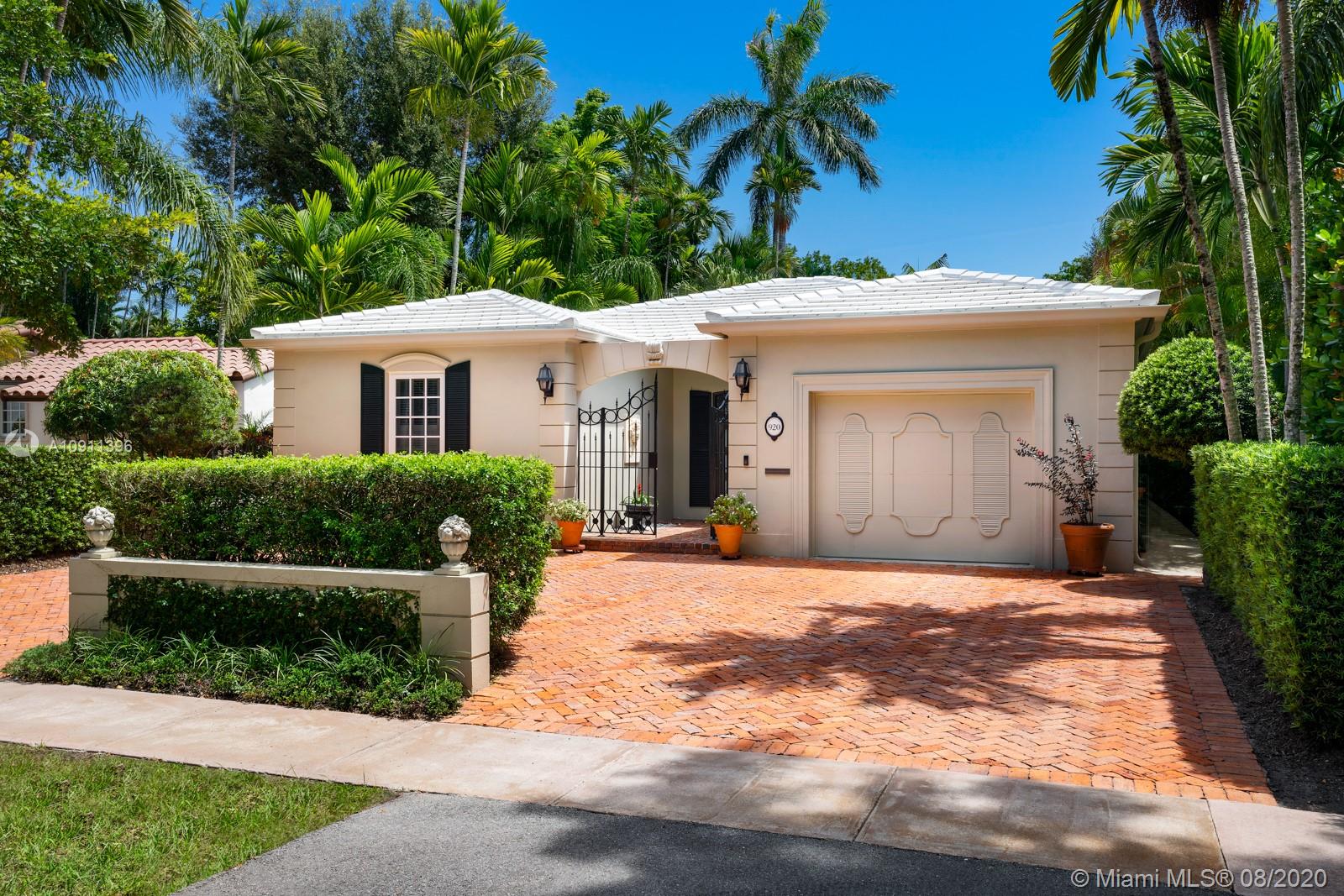 South of France inspired Jewel box home, turn-key in central Gables, a short walk to restaurant/galleries/shops/cinema/Biltmore/Venetian Pool/golf. One story original details, fully and lovingly restored & updated. Brick driveway and iron gate courtyard lead to foyer and spacious living room. Statuary marble and elegant black wood kitchen features top of the line appliances. Sunny breakfast/Dining Room. Covered patio, sparkling pool and private garden. 3rd room currently used as office/media but can easily add closet. New: IMPACT, bathrooms, wood floors throughout, Sub-Zero refrigerator, LG washer/dryer, Miele dishwasher. 2015/2016 roof/ac/gutters/electric and garage door. Appraiser sketch Living Area is 1,834 sf and Total Area is 2,381 sf. Five chandeliers are excluded.