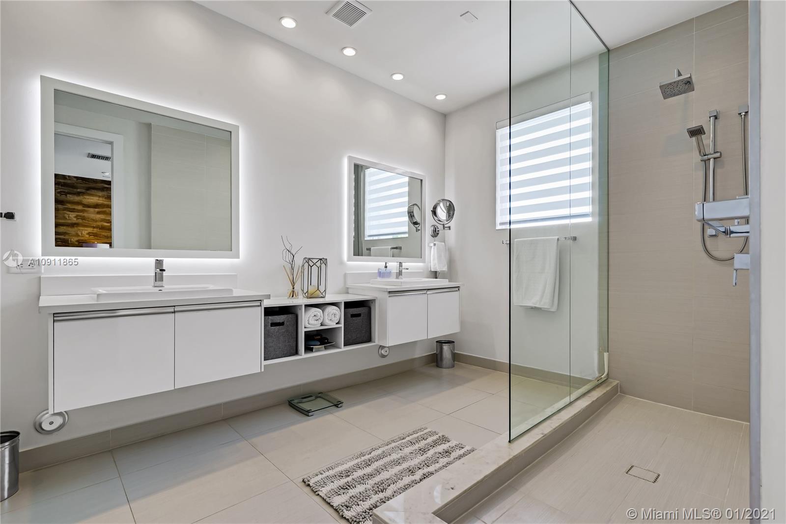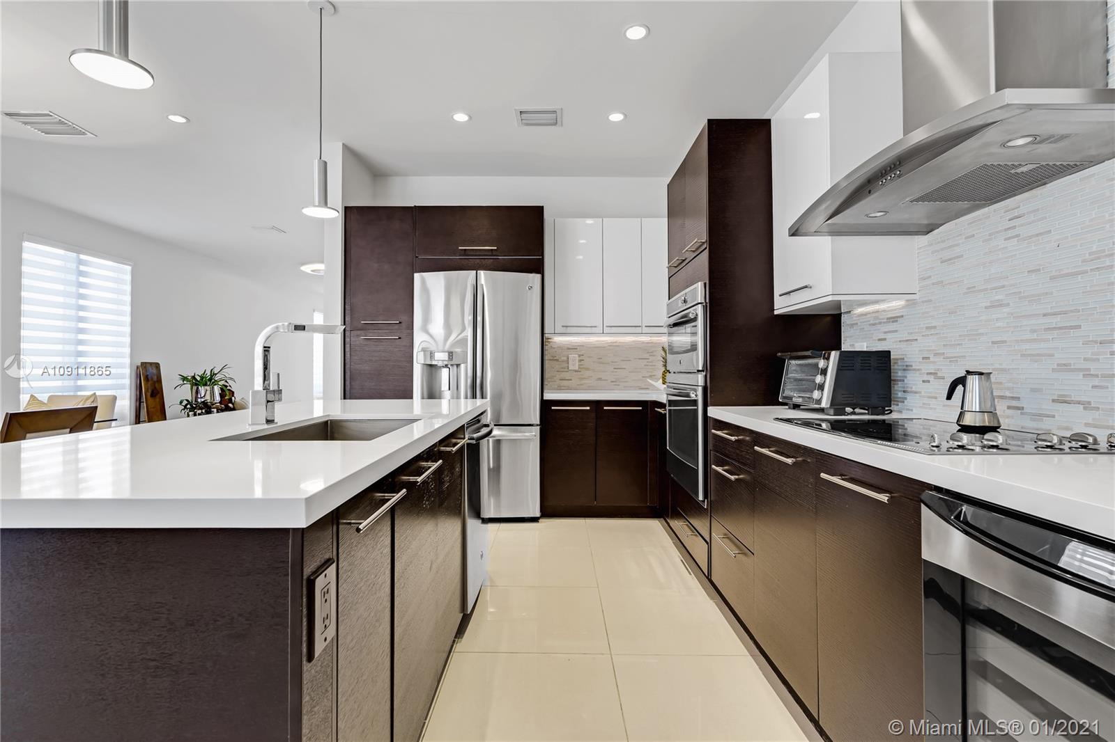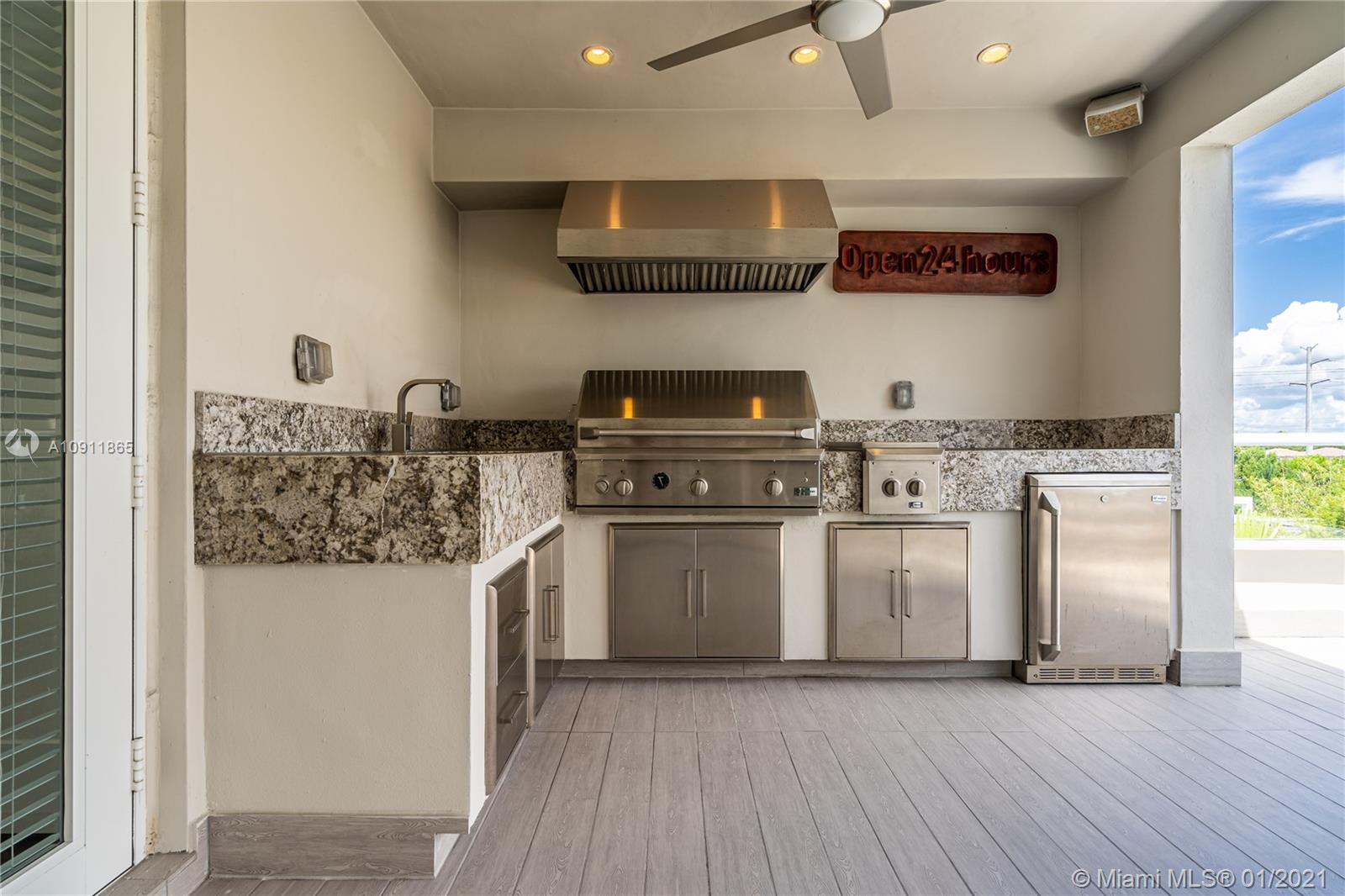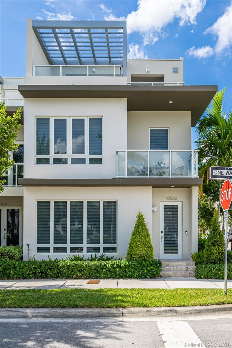 The most spectacular property in the Landmark at Doral community. Corner immaculate & luxurious Tri-Level "Smart" Townhome with duplex benefits. Modern building with impact windows and doors. The main building has 3 Bdrm, 3 full bath (master with balcony), living room, dining room, family room, open kitchen, quartz countertops, SS appliances, laundry room, 2-car garage, patio, and on the third floor, sky view terrace, half bath, closet, SS BBQ grill, refrigerator, granite countertop. The rear building has a studio (next gen) with bathroom, kitchen, laundry, A/C. Also, amenities resort style: clubhouse, pool, Jacuzzi, kids splash park, gym, tennis courts, sauna. It is located close to the express way, turnpike, 826, 836, best schools, shopping centers, Miami international airport.