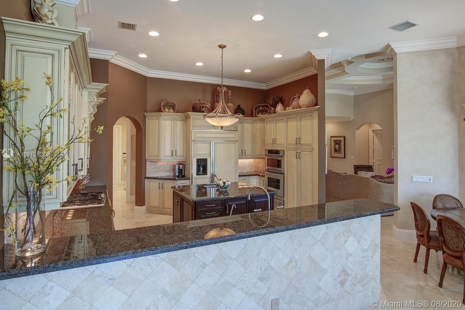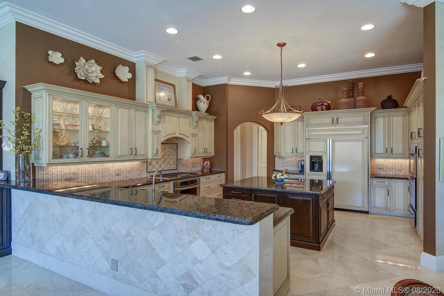 YOUR TIME IS PRECIOUS, MAKE EACH MOMENT COUNT MUST SEE: Located in Hawks Landing on a quiet cul-de-sac street. Features 5/4/3 car garage, marble 24” flooring in all main areas, baths and 3 guest bedrooms. The master and 5th bdrm have hardwood floors. 15 ft. ceilings and floor to ceiling windows flooding the home with soft, natural light.The sumptuous open island kitchen offers high end off white wood cabinetry, 2 sinks, 2 dishwashers and thermador gas cook-top, 2 ovens, warming drawer, farmhouse sink, 48” built-in refrigerator, large walk in pantry, impact/shutters. Beautiful marble gas fireplace adds to the elegance of the living room area, electric shades, central vac, solid core doors and spectacular water views from indoors to out, marble pool deck and heated salt water pool and spa.