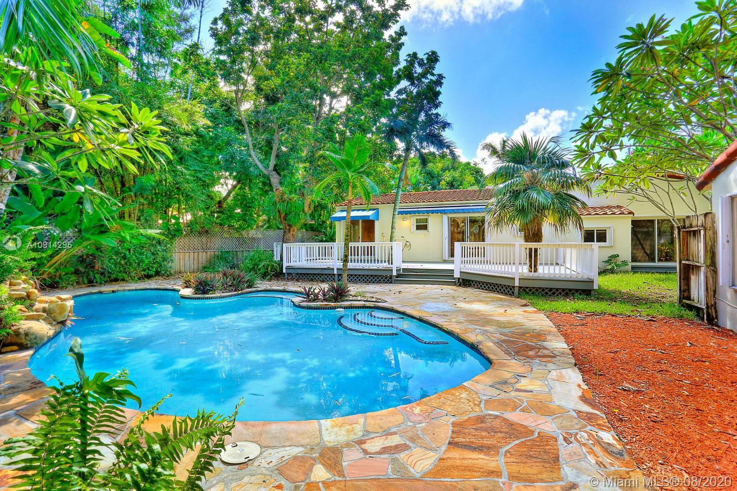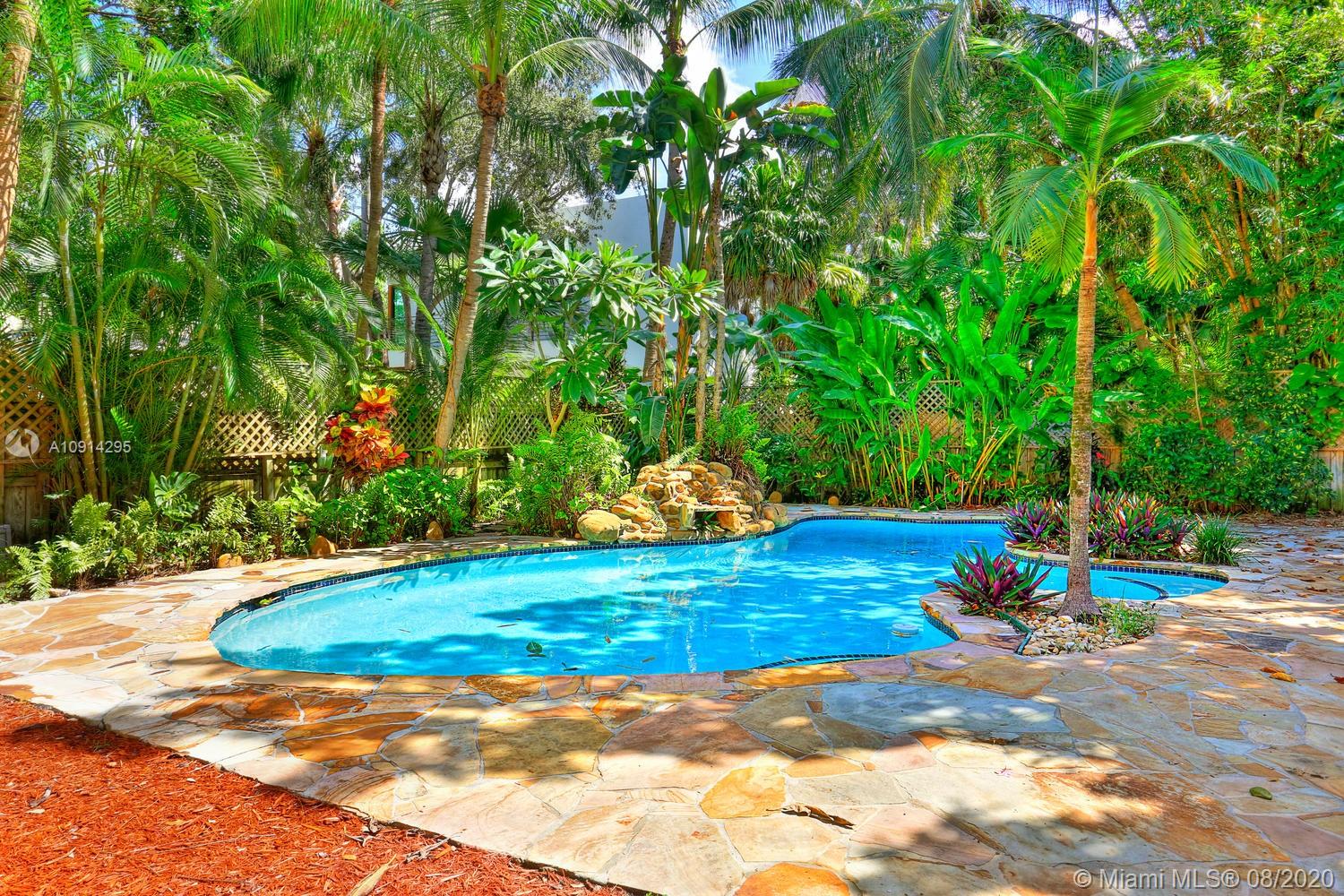Lovely gated home on a quiet tree-lined street surrounded by a 10,339 SF garden with palms & shade trees. Located just a short walk or bike ride to bayfront parks & marinas and close to the Grove village center’s galleries, boutiques & cafes. Light-filled living spaces with beautiful hardwood floors, fireplace & vaulted ceilings. Updated custom kitchen features wood cabinetry, granite countertops & stainless appliances. 2BR/2BA main house + separate 1BR/1BA guest house w/ kitchenette. Ultra-private, tropical backyard with freeform pool, waterfall & expansive wood deck. Ample gated & street parking + room to park a boat. High sea-level elevation ( flood insurance not required ).Minutes to downtown, MIA, Coral Gables, Key Biscayne & the Beaches.