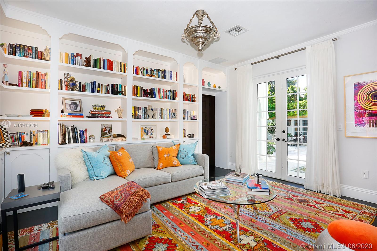 Distinctly unique residence with numerous upgrades, superior details, designer finishes and high ceilings. An oasis in Coral Gables. Upon entering the home your eyes are drawn to the 20ft vaulted ceiling in the foyer. The living areas, home library and generous bedrooms with custom closets are filled with natural light filtered through the floor to ceilings impact windows and French doors. Master bedroom with seating area, custom walk-in closet and large master bath with steam shower. Private terrace off of the master has marble pavers and is a sanctuary for meditating, relaxing or greeting the day. A separate detached guest suite or home office is adjacent to the back terrace. At the end of a long day enjoy alfresco dining and entertaining under the beautiful pergola in the backyard.
