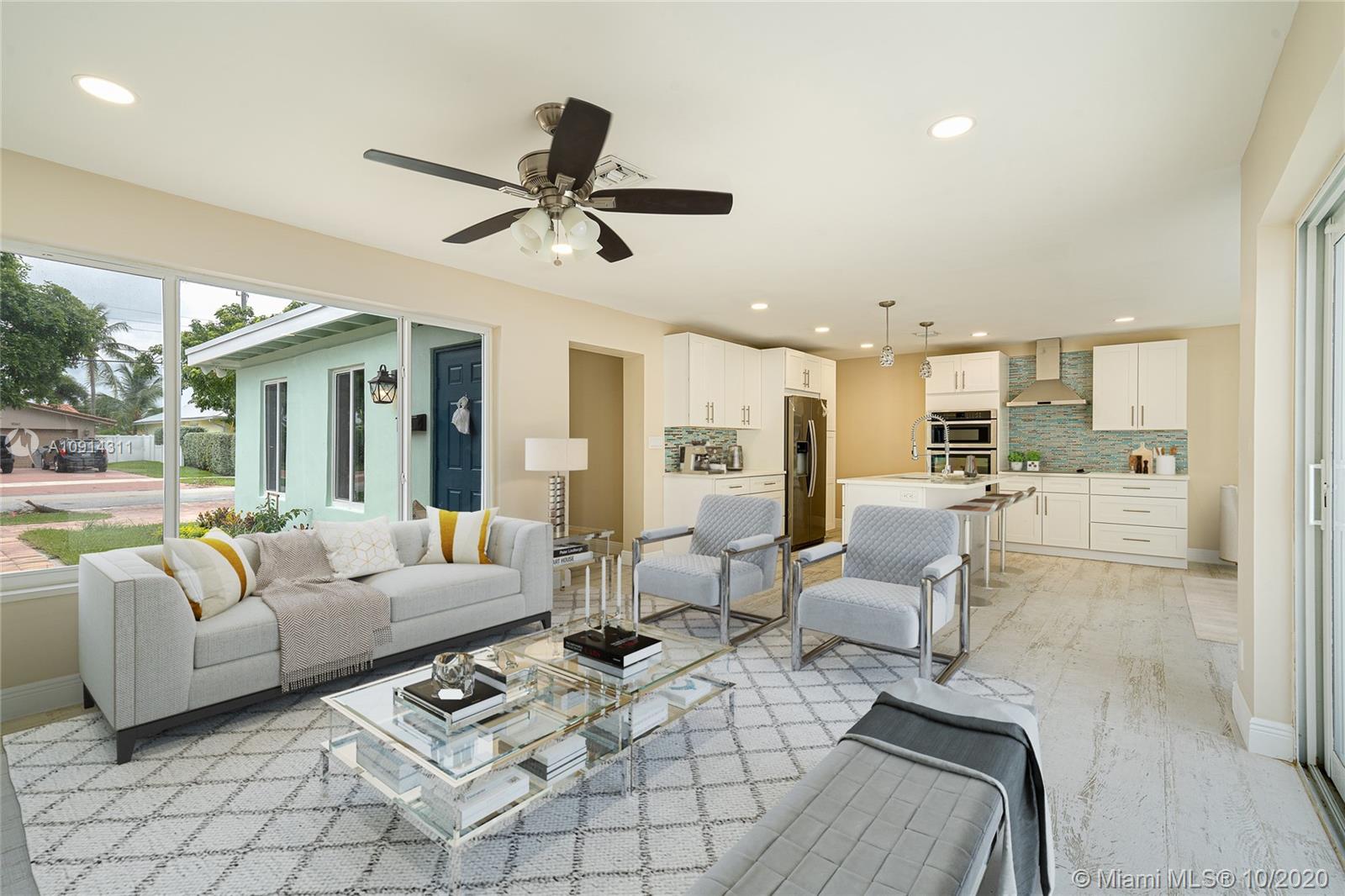 Live on an island! 3/3 completely remodelled split floor plan. New kitchen with stainless steel appliances, quartz counter tops. New baths, new A/C, new electrical, brand new pavers in the driveway and back deck area, new dock with custom lighting throughout. Spacious master bedroom and bath. Impact windows and doors. Lots of natural light. Freshly painted. Unrestricted ocean access. Federal highway bridge only minutes away. Survey available.