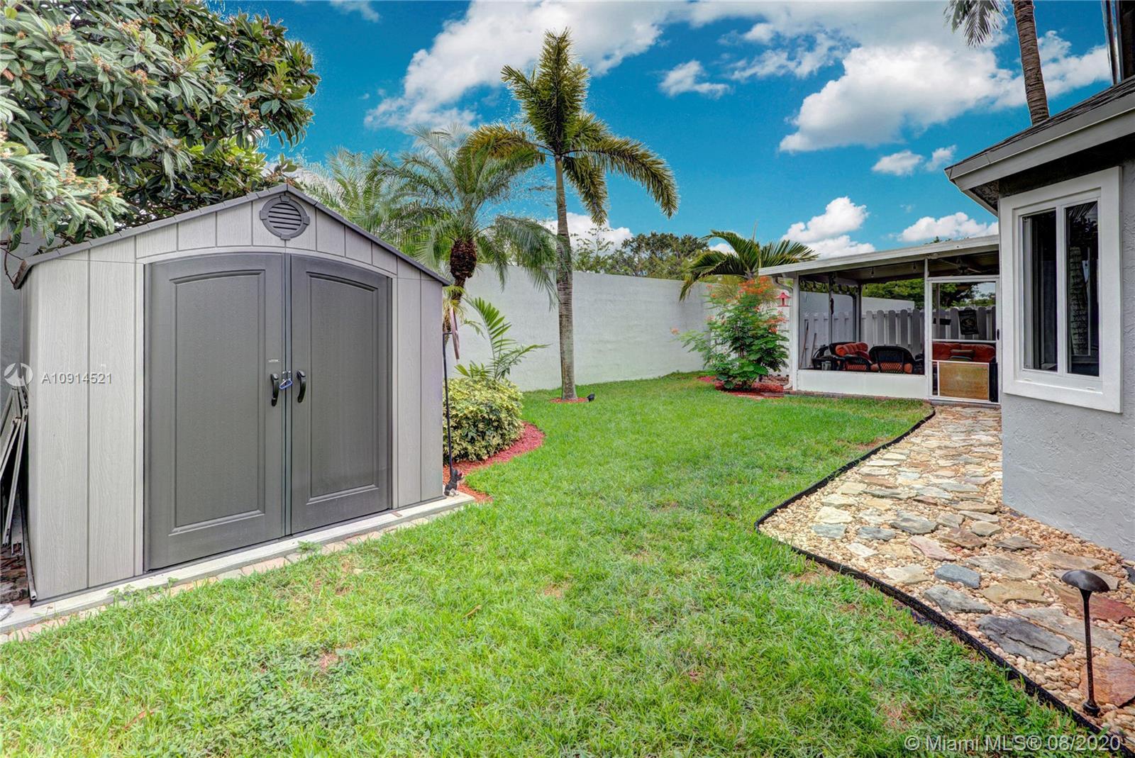 SPECTACULAR 3 BED 2.5 BATH 2 CAR GARAGE FAMILY HOME IN SOUGHT AFTER SCARBOROUGH IN DAVIE, FL. IMPECCABLY AND COMPLETELY UPGRADED WITH EXTENDED KITCHEN CABINETRY, GRANITE CTR TOPS, STAINLESS STEEL APPL, SNACK COUNTER BAR/SEATING, NEUTRAL FRESHLY TOUCH-UP INTERIOR/EXTERIOR PAINT, HIGH IMPACT WINDOWS THROUGHOUT EXCEPT FRONT DOOR/FRENCH DOORS (PANELS), REMODELED BATHROOMS, LARGE MASTER, WAINSCOTING IN BEDROOM, CROWN MOLDING, WOOD FLOORING STAIRS AND UPSTAIRS, COMPLETE PRIVACY IN BACKYARD WITH NO REAR NEIGHBORS, SHADOWBOX FENCING, ENCLOSED SCREENED IN/COVERED PATIO AREA, SPACIOUS YARD, AWESOME STORAGE SHED INCLUDED. IDEALLY LOCATED IN HEART OF DAVIE SUPER CLOSE TO 595 ACCESS, GREAT SHOPPING AND GREAT SCHOOLS.