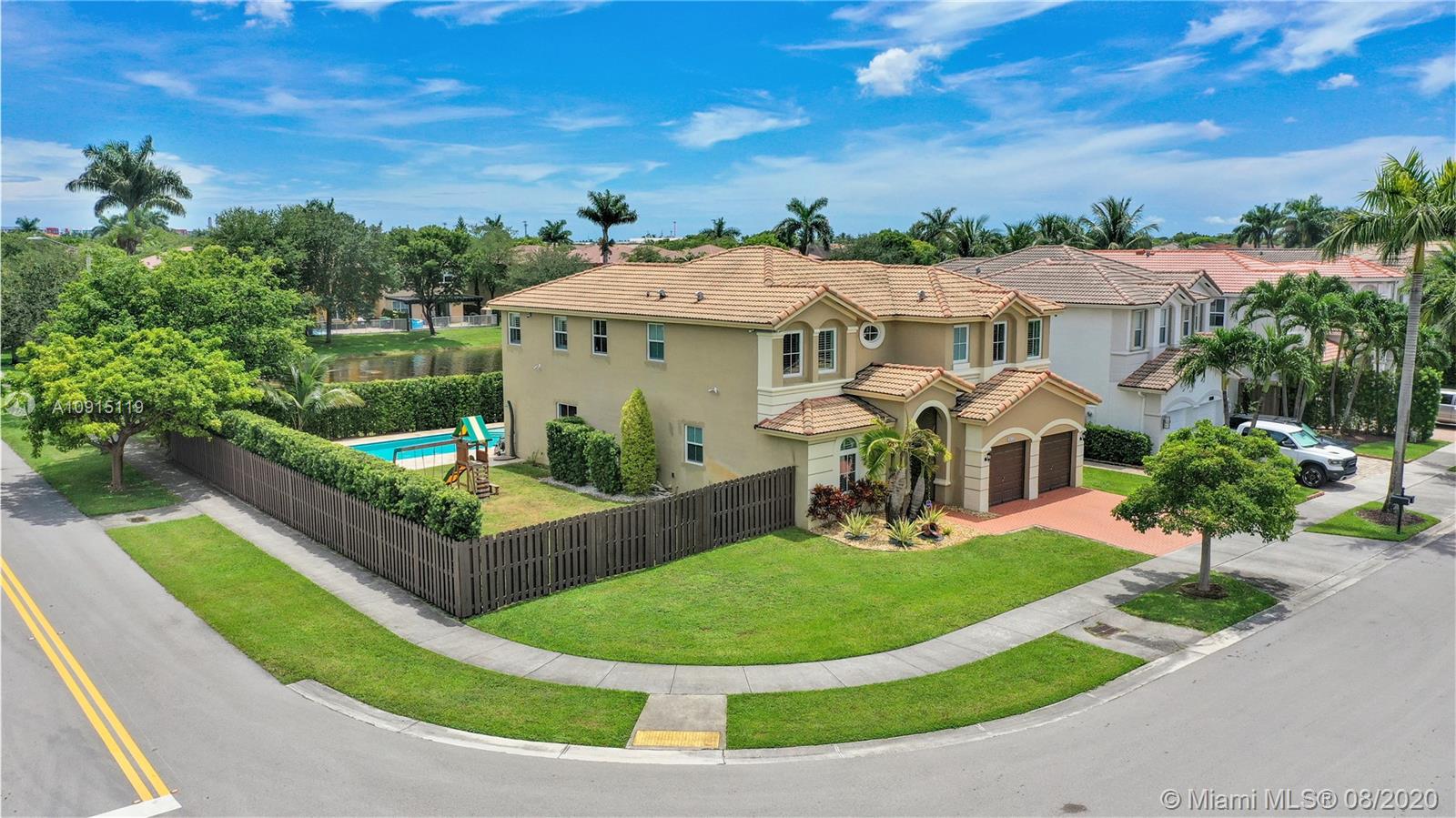 BEAUTIFUL HOME IN EXCLUSIVE MENORCA AT ISLANDS AT DORAL. THIS PROPERTY HAS IT ALL: POOL, LAKE, OVER-SIZED AND CORNER LOT, NEW IMPACT WINDOWS, NEW POOL AND PERGOLA, MARBLE AND HARDWOOD FLOORS,NEW A/C, WINE BAR WITH COOLER, PLANTATION SHUTTER IN BEDROOMS, FOUR SECURITY CAMERAS, UPGRADED KITCHEN, ONE BEDROOMS DOWNSTAIRS AND THREE BEDROOMS UPSTAIRS ALL WITH PRIVATE BATHROOMS. EXCELLENT CONDITION! LOT SIZE 10,462 SQFT!