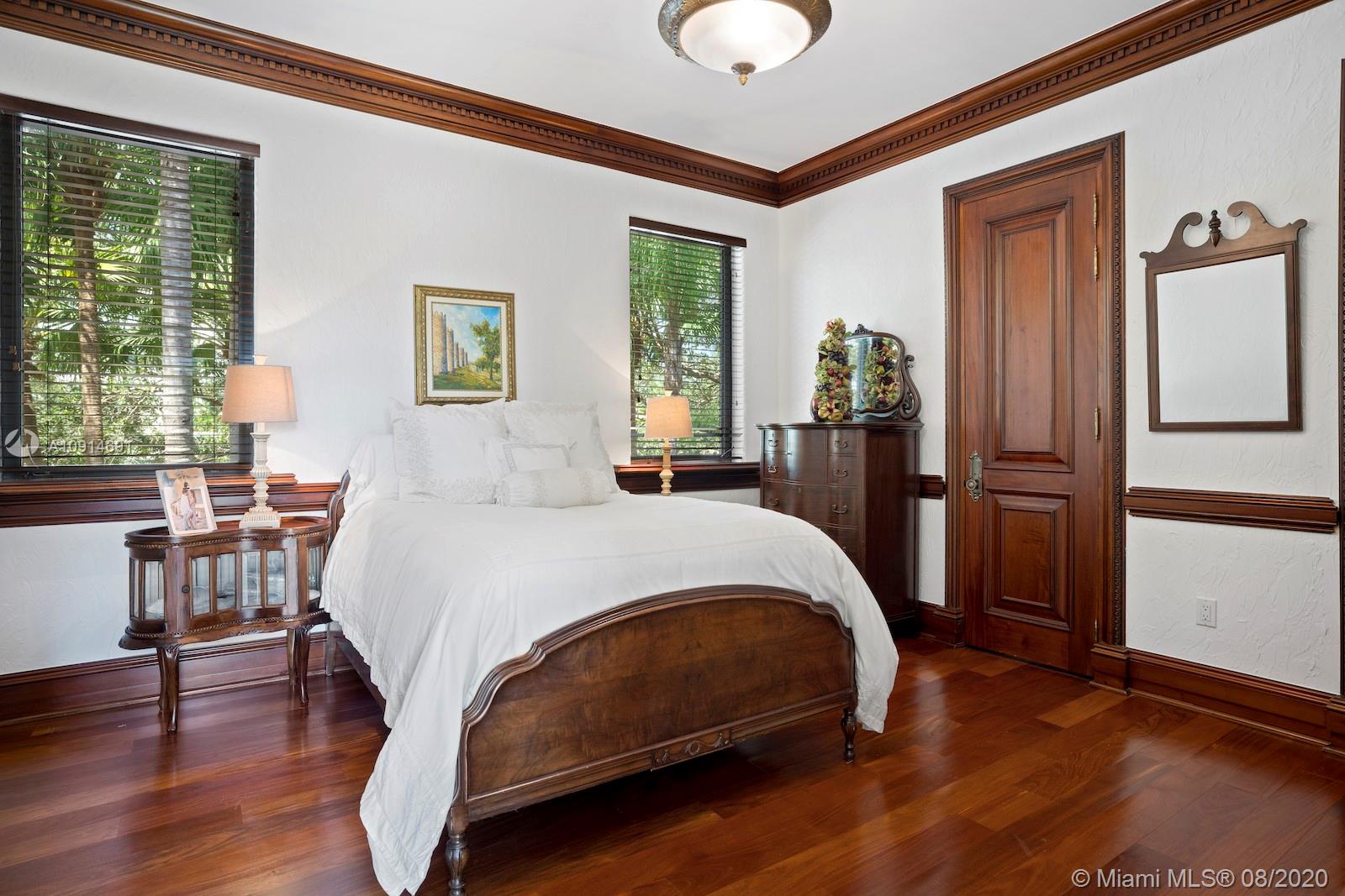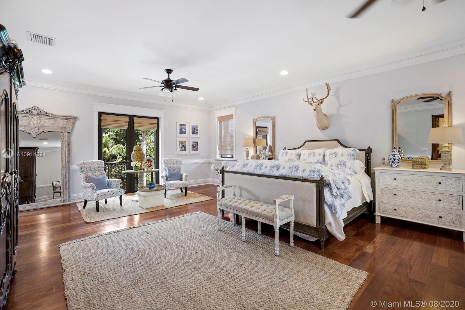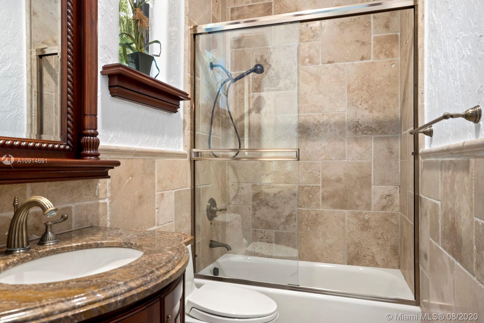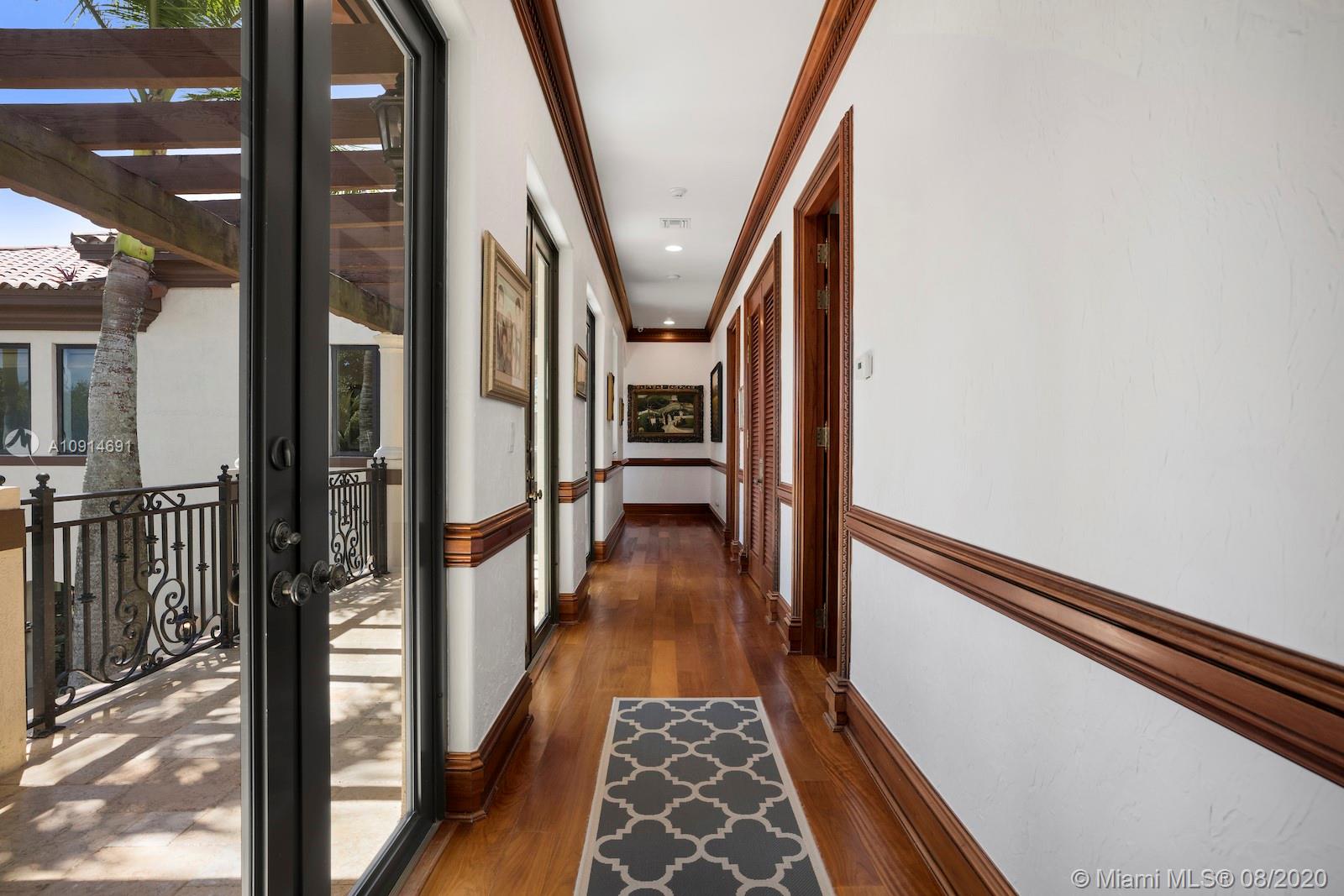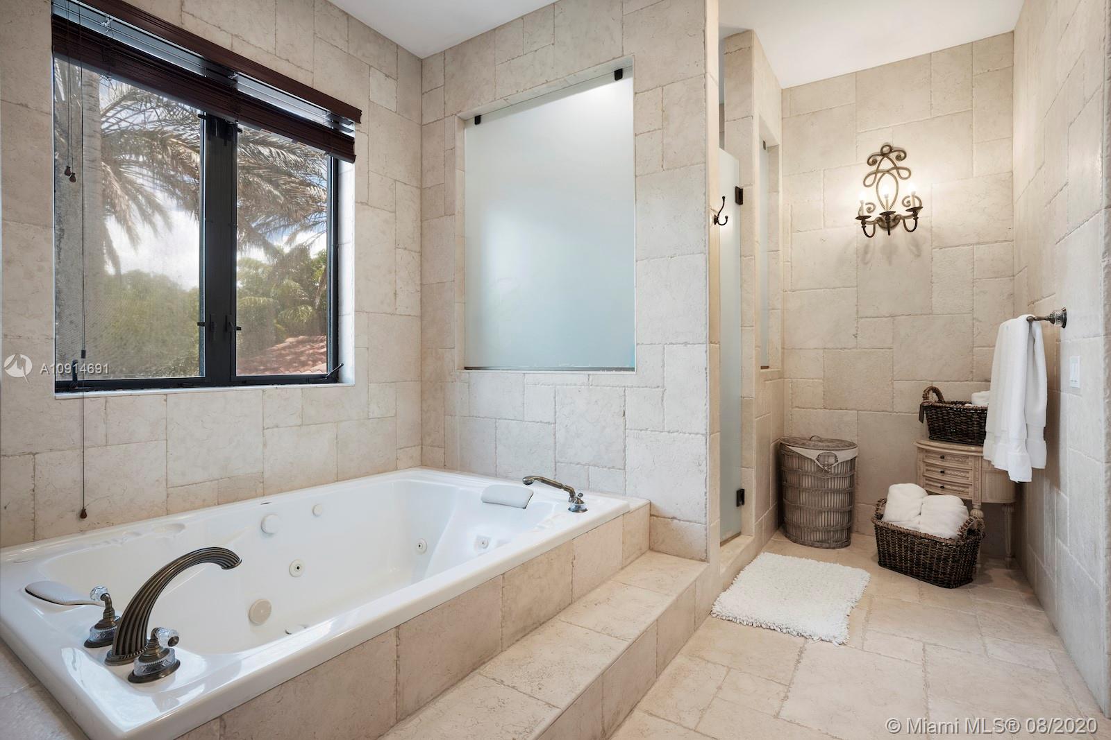 Prime corner home in Pinecrest, on nearly an acre lot. Stunning foyer entry & formal living room with high ceilings, glass doors letting in natural light & views of the Italian manicured garden & pool, a gas fireplace & built-in bar, a perfect setting for entertaining. The striking kitchen has double ovens, induction cooktop, large kitchen island, & elegant white marble with an eat-in counter & breakfast area. Master suite plus 3 ensuite beds on 2nd level, add’l room on 1st flr that could be a gym, office or in-law suite, with its own entrance. Serene backyard has summer kitchen, 2 covered areas, and sparkling pool with water feature.Gated front entry leads to motor court for guests, & the 2-car garage (room for lifts) at separate entrance around the corner. Generator. 1/2 court basketball