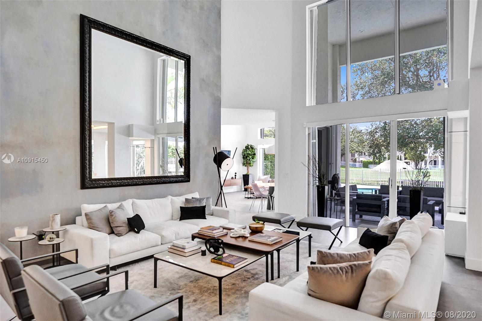 This newly remodeled estate was masterfully designed to blur the lines of modern-residential living, with over 4,266 SF of interior space on a spacious 8,936 SF lot. This Garland Model features 5 bedrooms plus maid's quarters and 6 ½ baths. Completely redesigned, this home showcases a glass staircase, high ceilings, impact windows, office /den space, an in-home gym, and much more. Upon entrance, you are greeted by an open living area with views of the pool/golf course. Many other amazing details throughout.