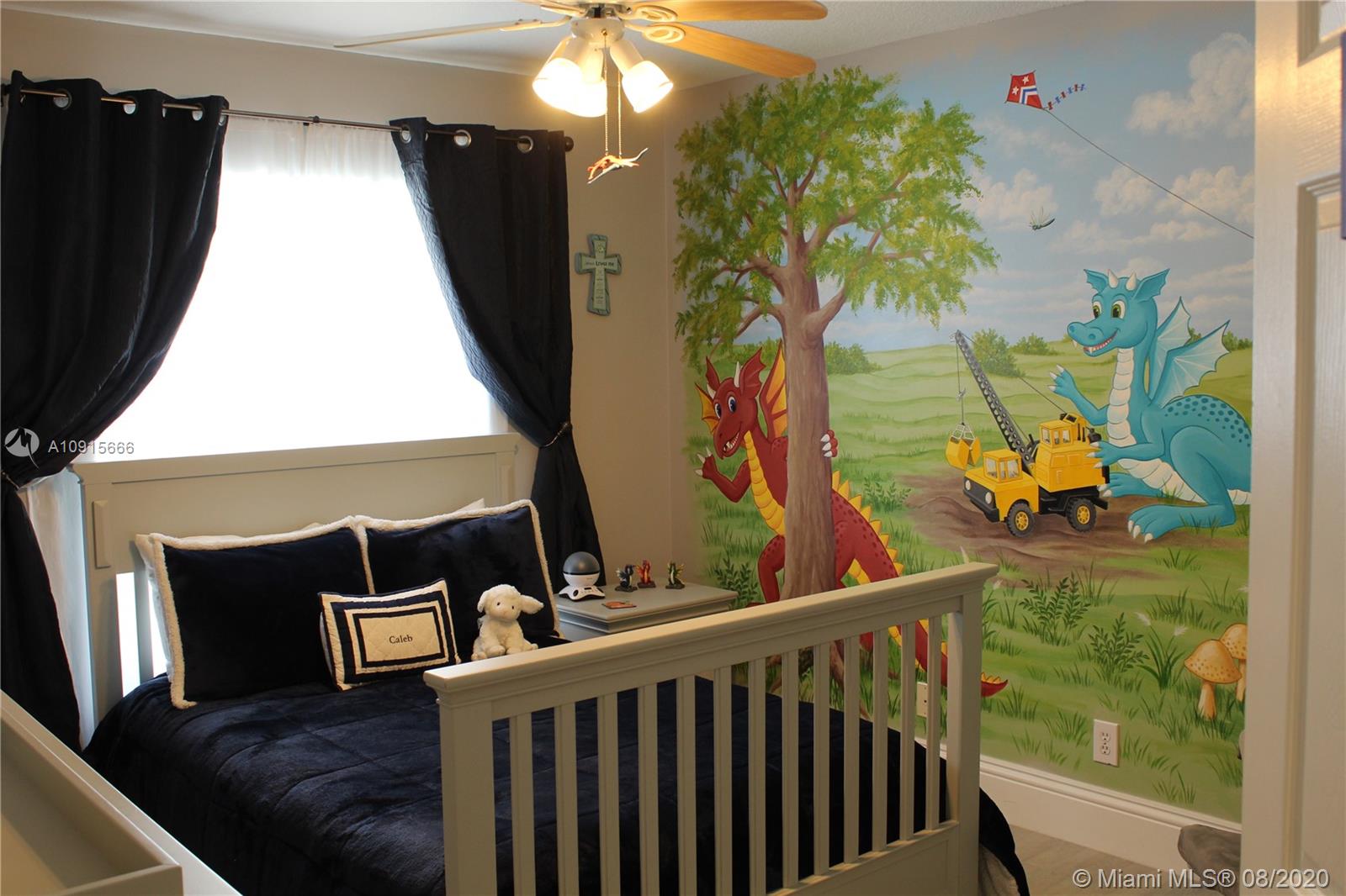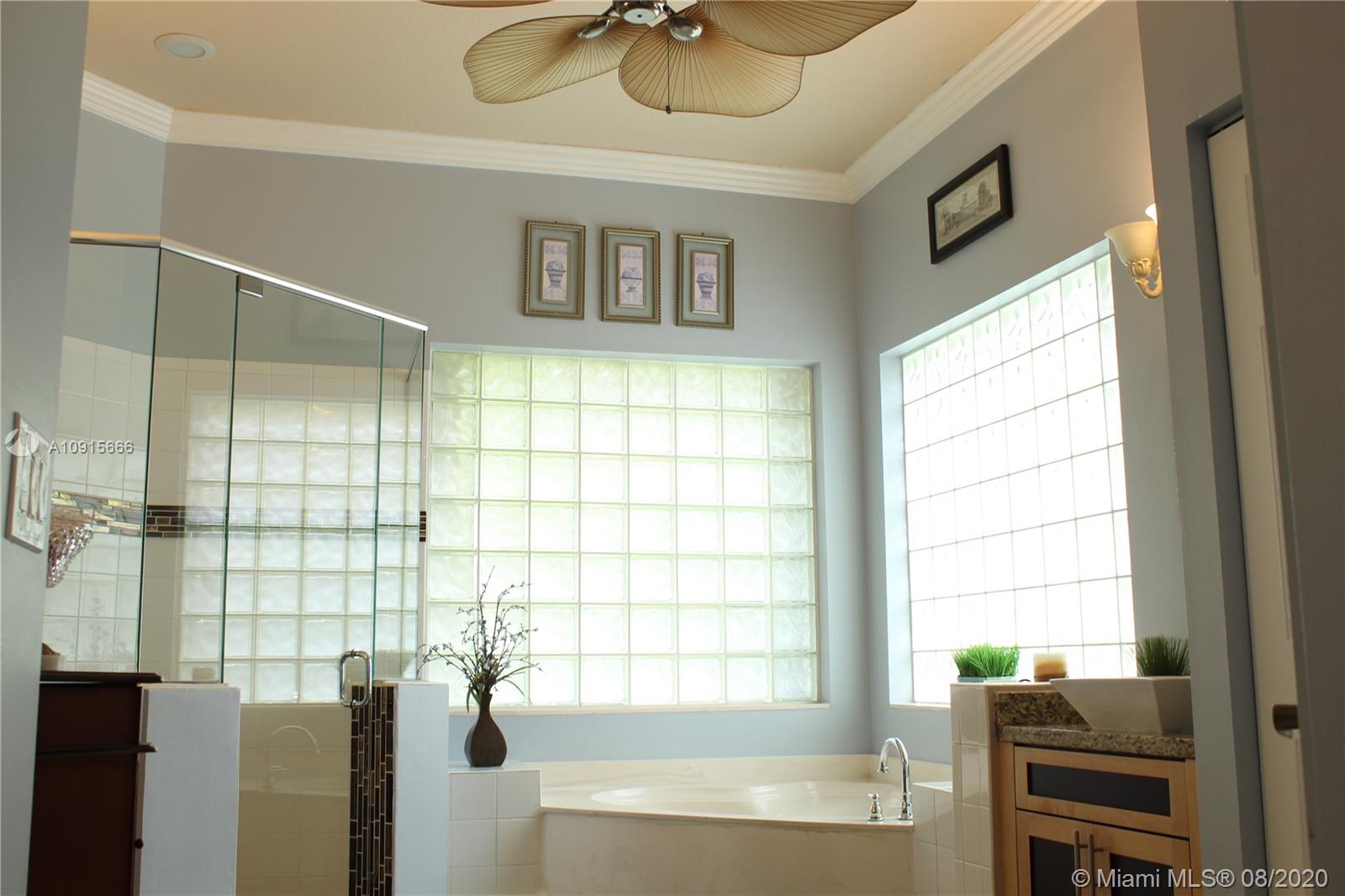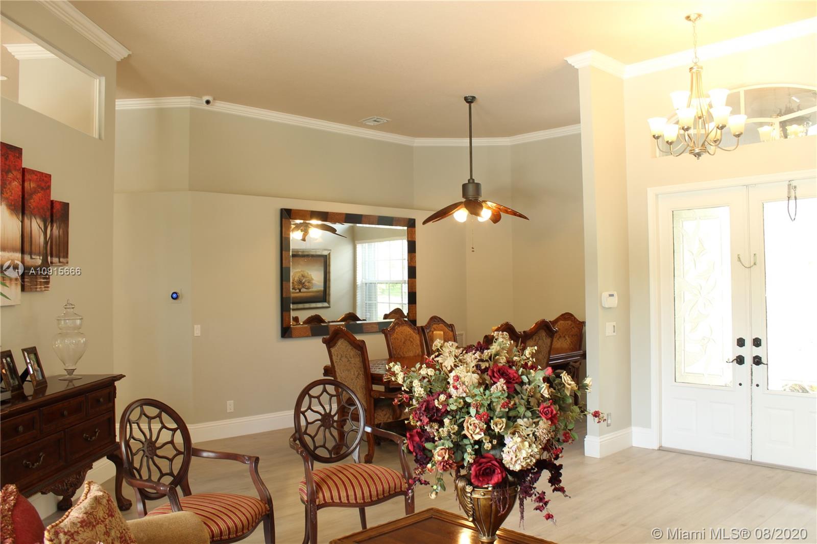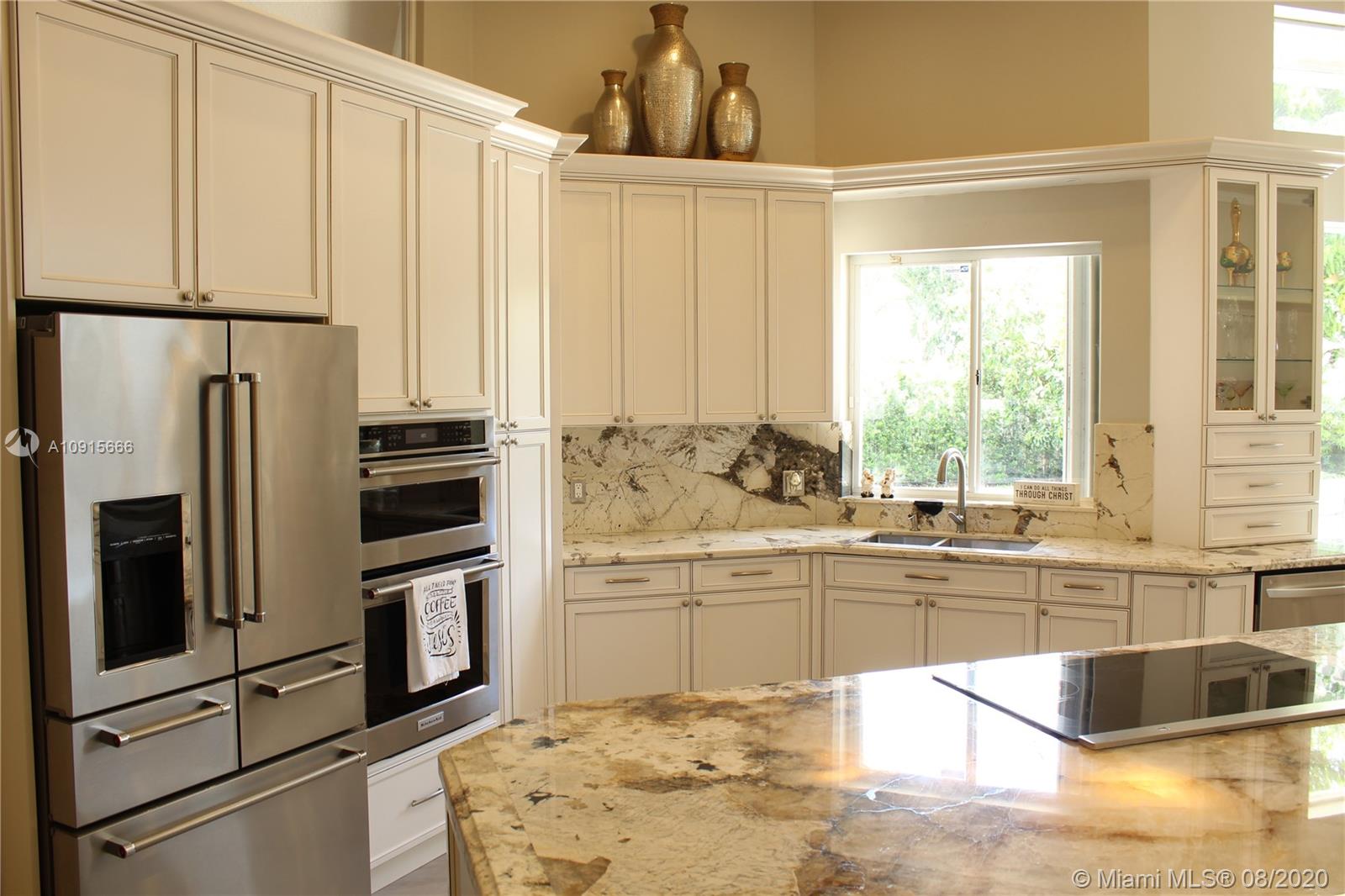 Beautiful home in sought after Fox Run! Spacious 5 bedroom/3 bath three-split floor plan with tons of natural light and over $150K in upgrades made within the last 2 years. Dream gourmet kitchen with top of the line appliances including state of the art induction stove, top designer see-through natural stone counters, oversized island and beautiful pendant chandeliers. Designer Italian tile floors throughout. Newly installed antibacterial air purifying system in HVAC. Twelve camera security system. Large lot with mature fruit trees (guava, sweetsop, orange, lime, banana, plantain, Hass and Catalina avocado). Renovated swimming pool with lighted water features and french pattern travertine deck. Lush privacy hedges along side fence and back garden wall. Accordion shutters.