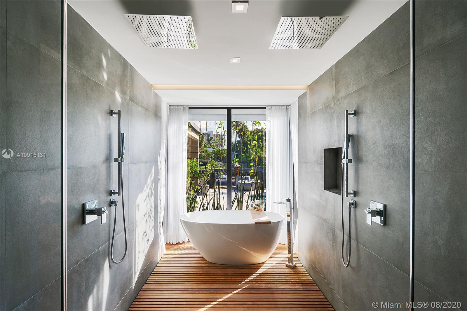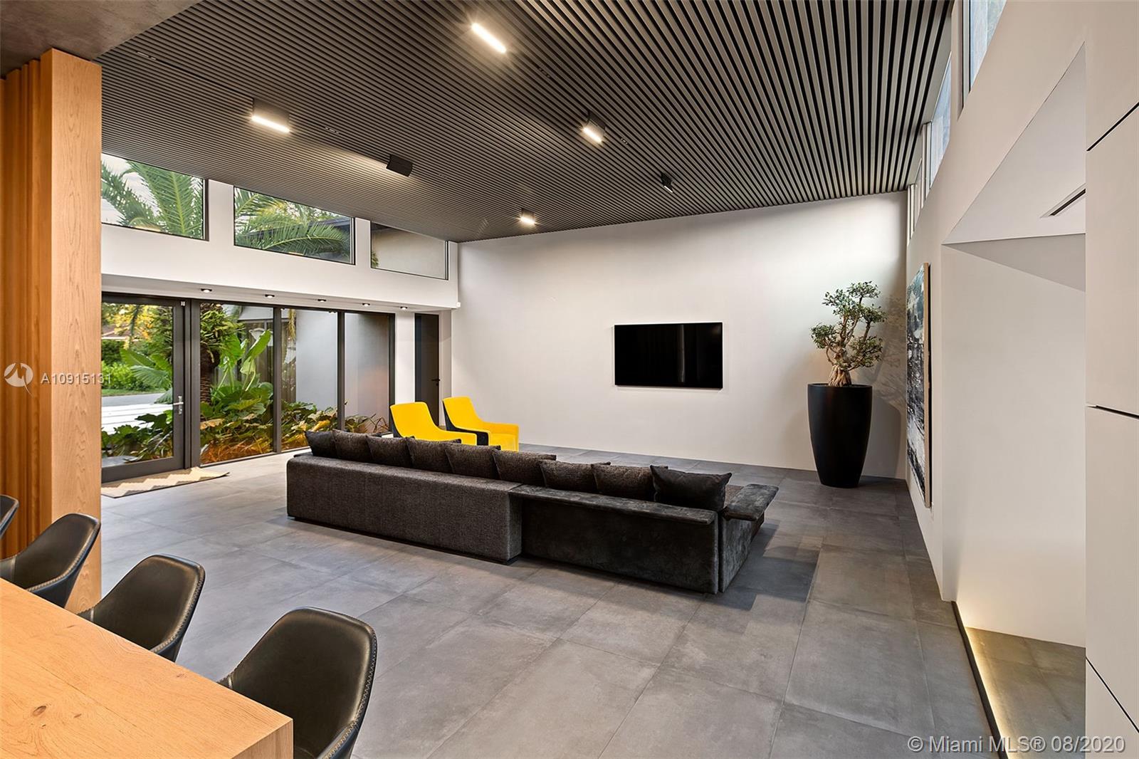 Black is always the new black! Above average, impeccable finishes, powerful vibes! Find yourself in the private community of San Souci Estates, couple of minutes away from Bal Harbour. Delightful split floor plan for this waterfront one-story home with 12 ft. ceilings. Completely renovated in 2018, this home offers new Italian custom-made kitchen with gas appliances, costume made closets, salt water pool, new roof, pluming, electrical, mosquito system, and unique use of stone and microcement throughout. Backyard easily enjoyable and ready to entertain with pizza oven, Chinese wok, commercial BBQ grill, and outside kitchen. Enjoy the best sunsets Miami has to offer. 75 ft on the water with brand new dock. Words are not enough to describe this STATEMENT! NO HOA!