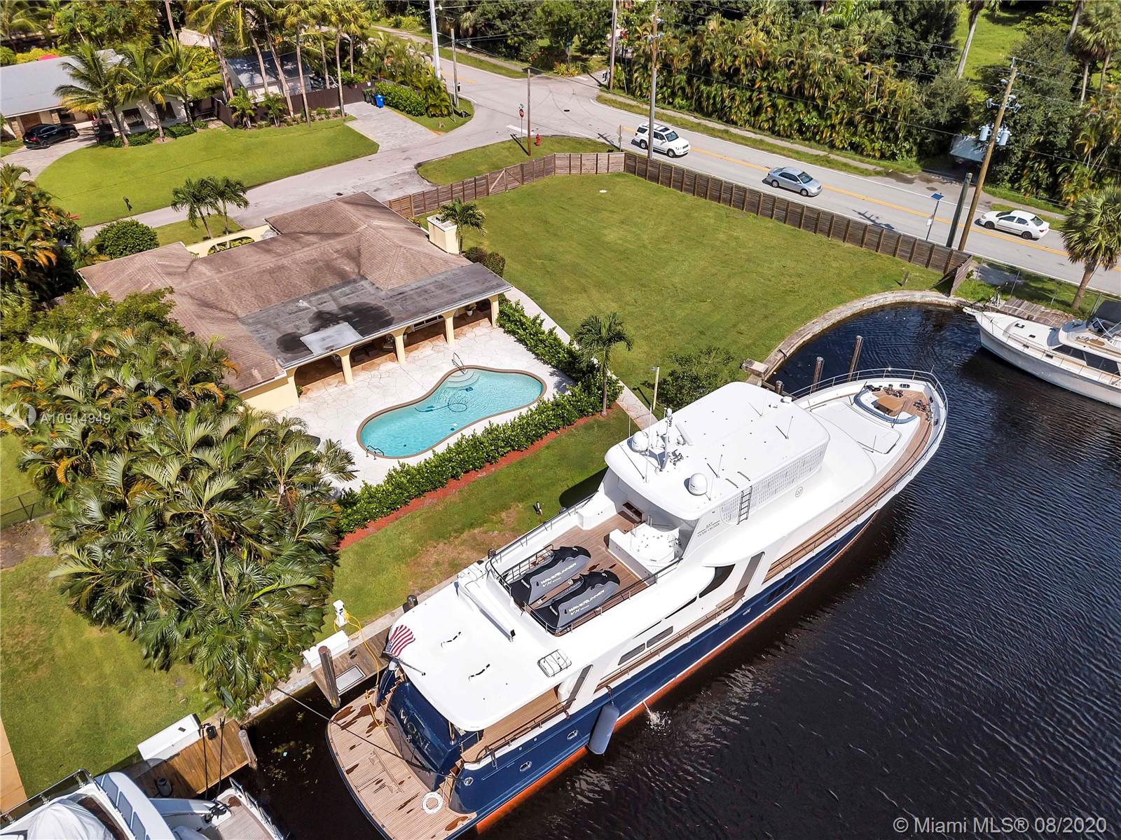 BRING YOUR YACHT HOME!!! Stop paying docking fees. Dock your 135' yacht here. Property features 156' water frontage on wide canal that fits 100'+ yachts on the New River. Includes 100 AMP 3 phase shore power. Direct ocean access with Zero fixed bridges. The residence sits on a generous corner 1/2 acre lot with an oversize green lawn in the desired community of Riverland. Perfect location provides easy access to the Ft Lauderdale airport, highways, downtown and the beaches. Upgraded 3 bedrooms, 2.5 bath home offers a great layout with modern natural colors. Fireplace in the living room for your evening relaxation. Upgraded kitchen. Home includes a huge covered patio overlooking the pool and water. This is a rare opportunity, highly sought property. Come and see it now before it is gone