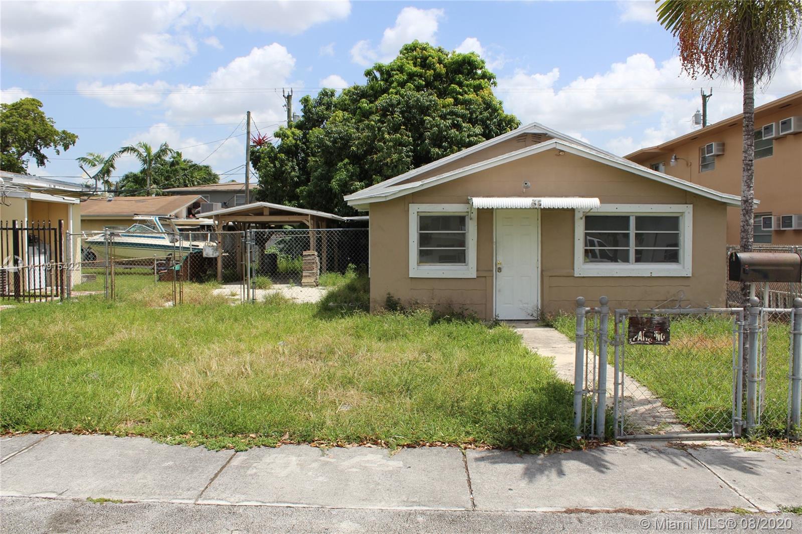 This frame house has 3 bedrooms, 2 baths, central air, circuit breakers, a detached carport, and separate storage building at the rear of the lot and is being sod "AS IS". The value in this property is in the lot. The Hialeah Planning & Zoning Department has advised that up to 4 units can be built with the current zoning on this lot.