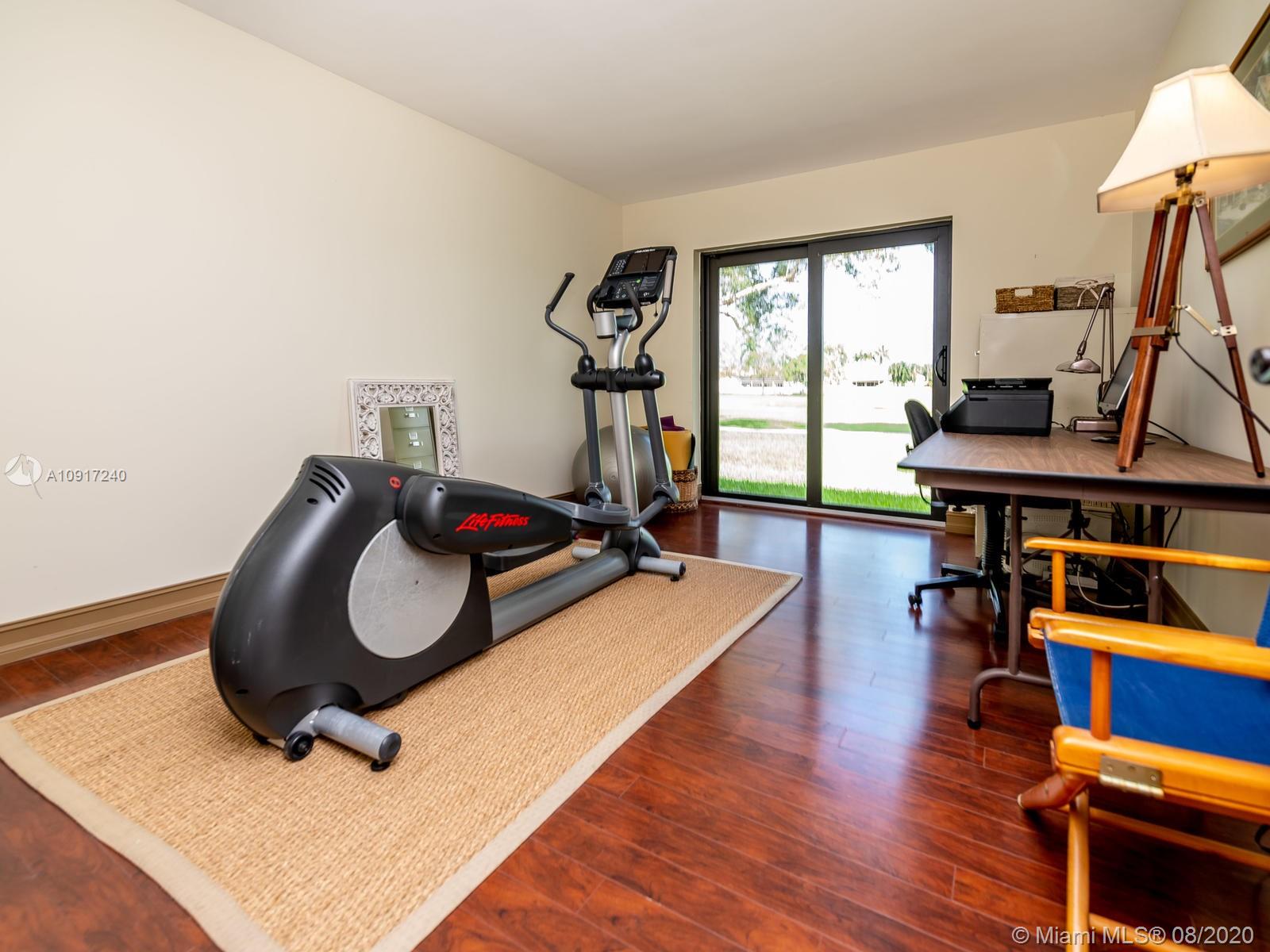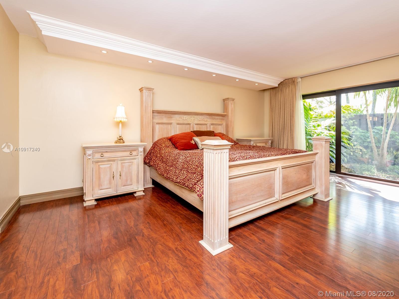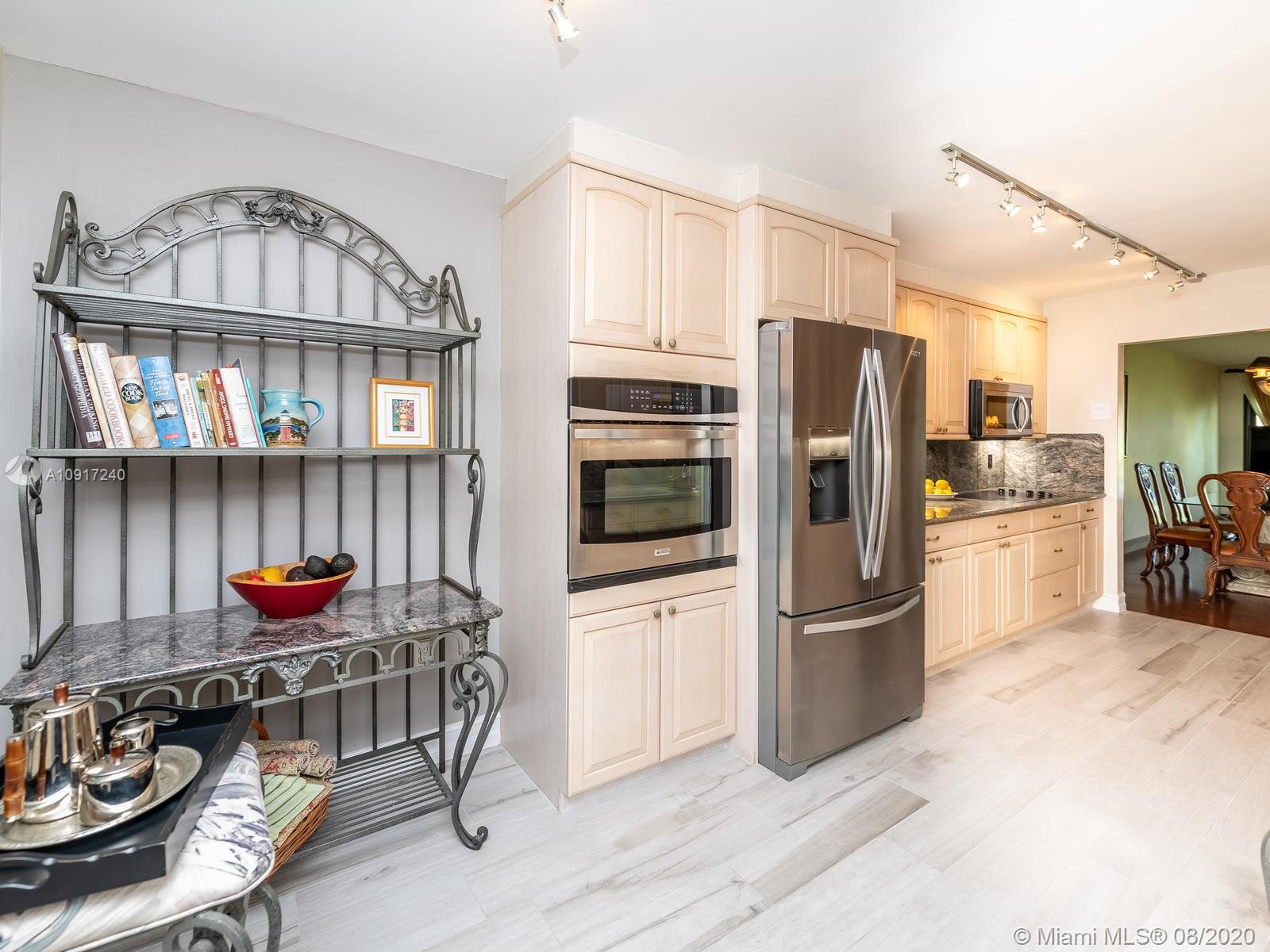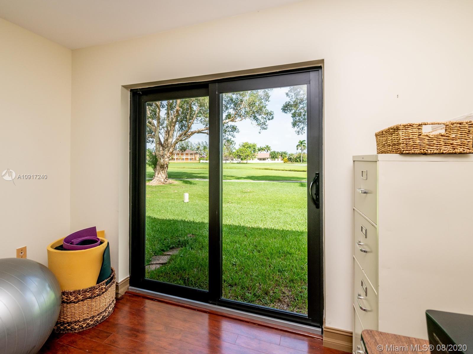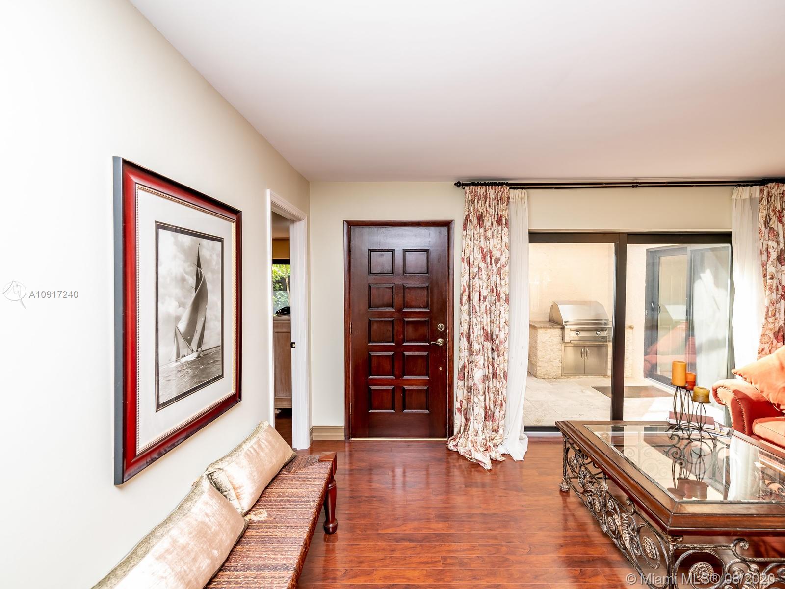 Stunning Golfcourse view! Walk into your new home thru the new decorative aluminum entry gate...Into beautiful travertine courtyard & lighted landscaped area plus a built in Fresco grill!Hurricane impact windows and doors including accordians!!The roof is poured concrete,there is a 2 car garage! Chamberlain garage remotes will open from your cell phone & turn on security lights!! Interior floors are engineered wood & kitchen is the tile wood look...Kitchen updated with wood cabinets,granite counters&backsplash, stainless appliances and bonus matching bakers rack! Both bathrooms highly upgraded featuring travertine,marble,and Graff and Groehe fixtures! Zoned A/C's with Germicidal UV lights!Custom window treatments,smooth ceilings,(no popcorn!)Solid wood doors thru out and new bifold doors.