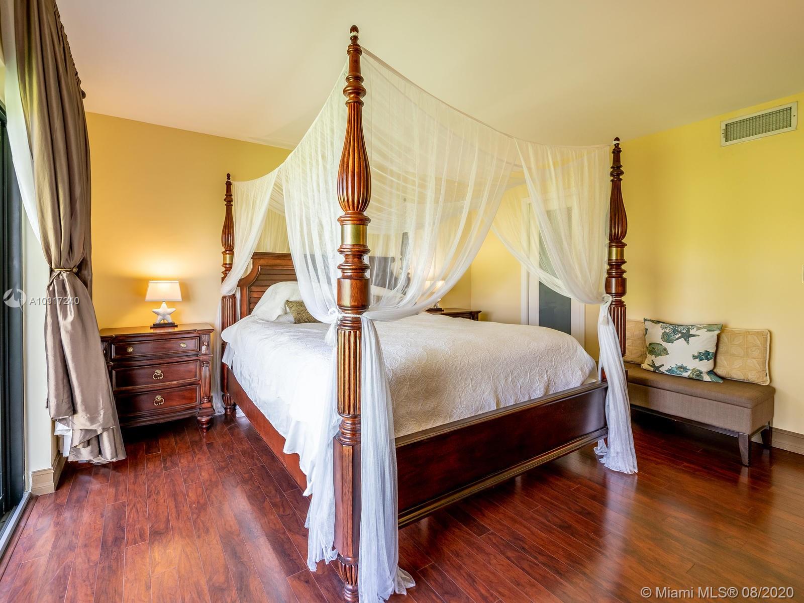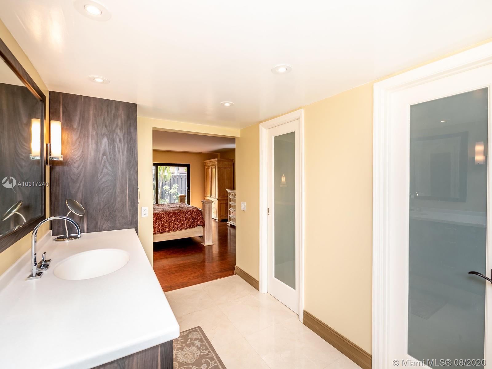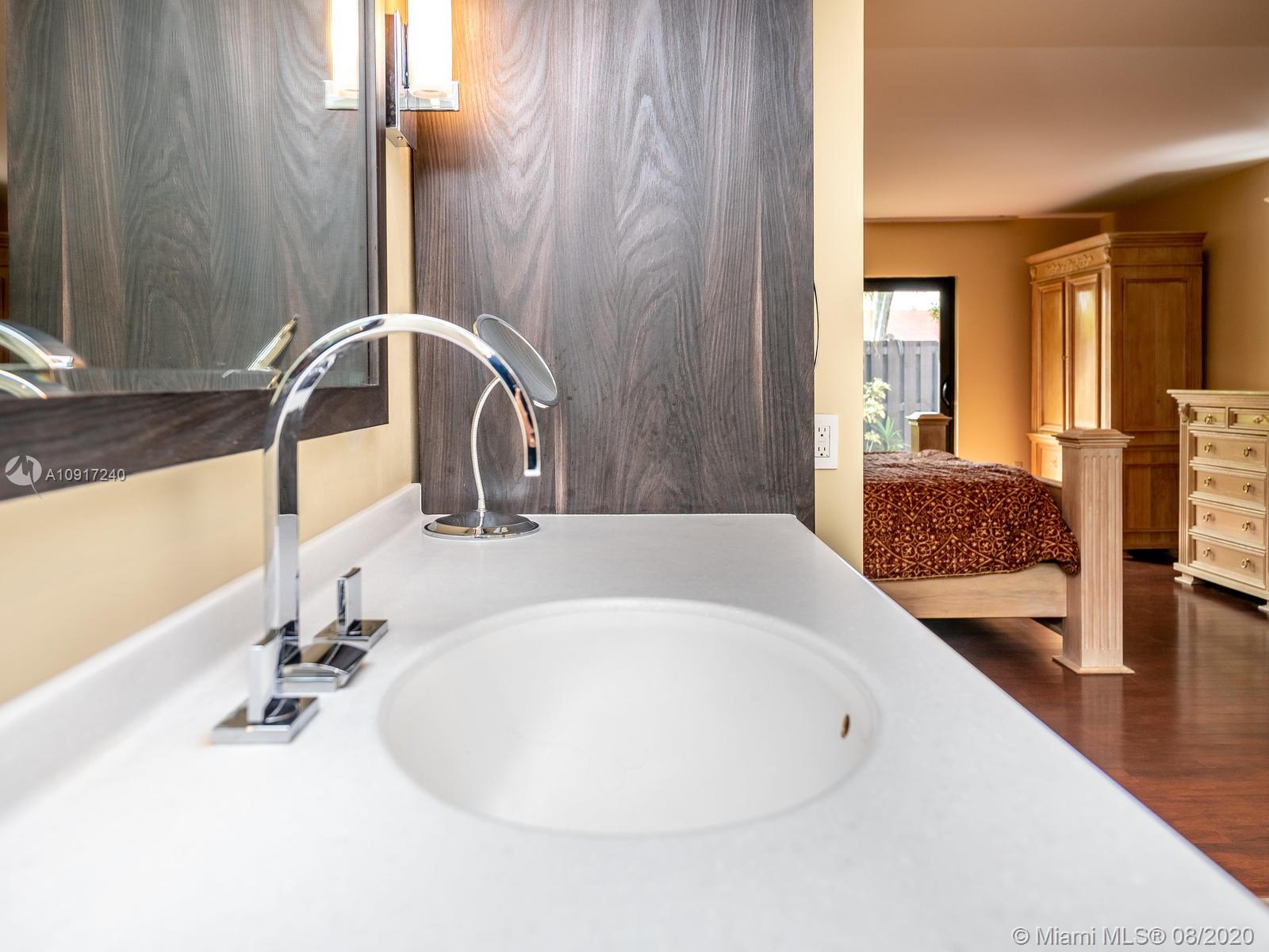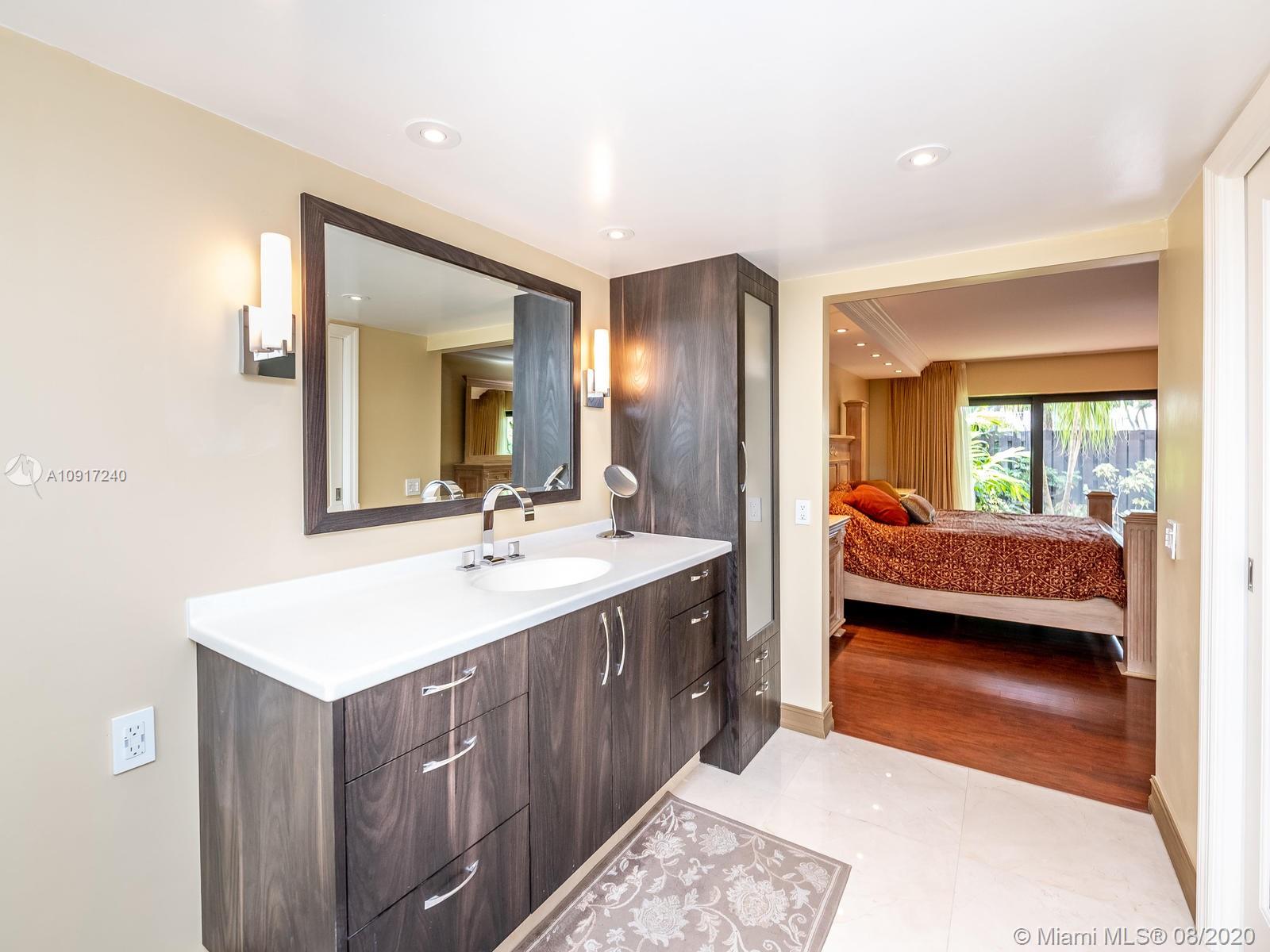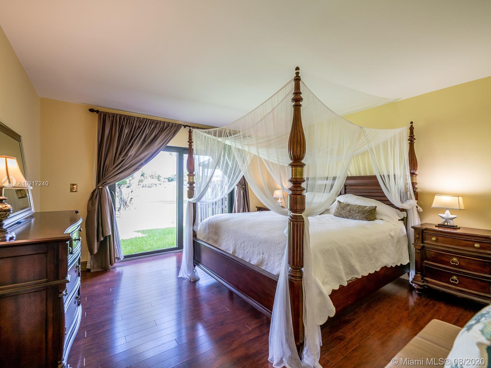 Stunning Golfcourse view! Walk into your new home thru the new decorative aluminum entry gate...Into beautiful travertine courtyard & lighted landscaped area plus a built in Fresco grill!Hurricane impact windows and doors including accordians!!The roof is poured concrete,there is a 2 car garage! Chamberlain garage remotes will open from your cell phone & turn on security lights!! Interior floors are engineered wood & kitchen is the tile wood look...Kitchen updated with wood cabinets,granite counters&backsplash, stainless appliances and bonus matching bakers rack! Both bathrooms highly upgraded featuring travertine,marble,and Graff and Groehe fixtures! Zoned A/C's with Germicidal UV lights!Custom window treatments,smooth ceilings,(no popcorn!)Solid wood doors thru out and new bifold doors.