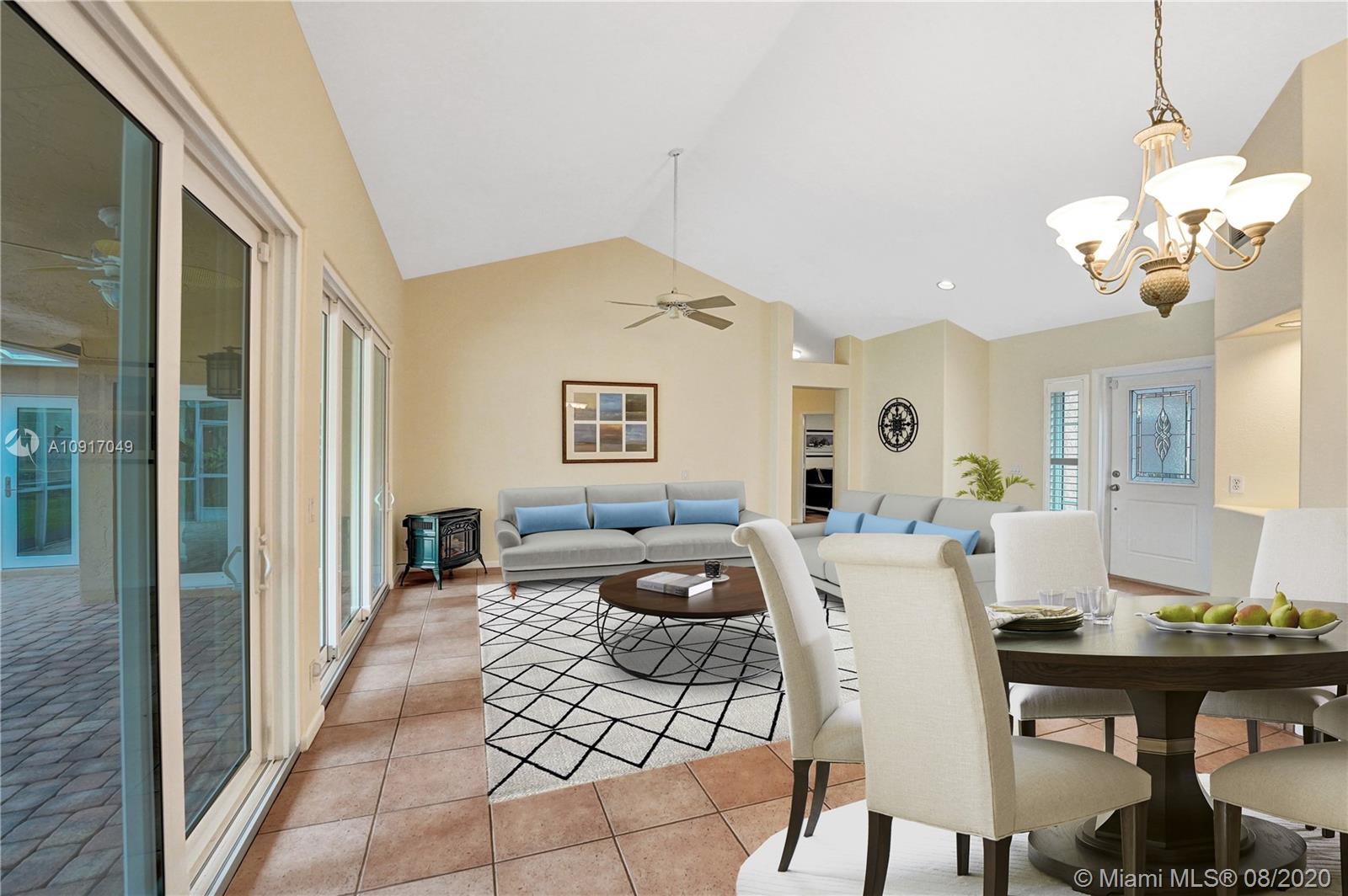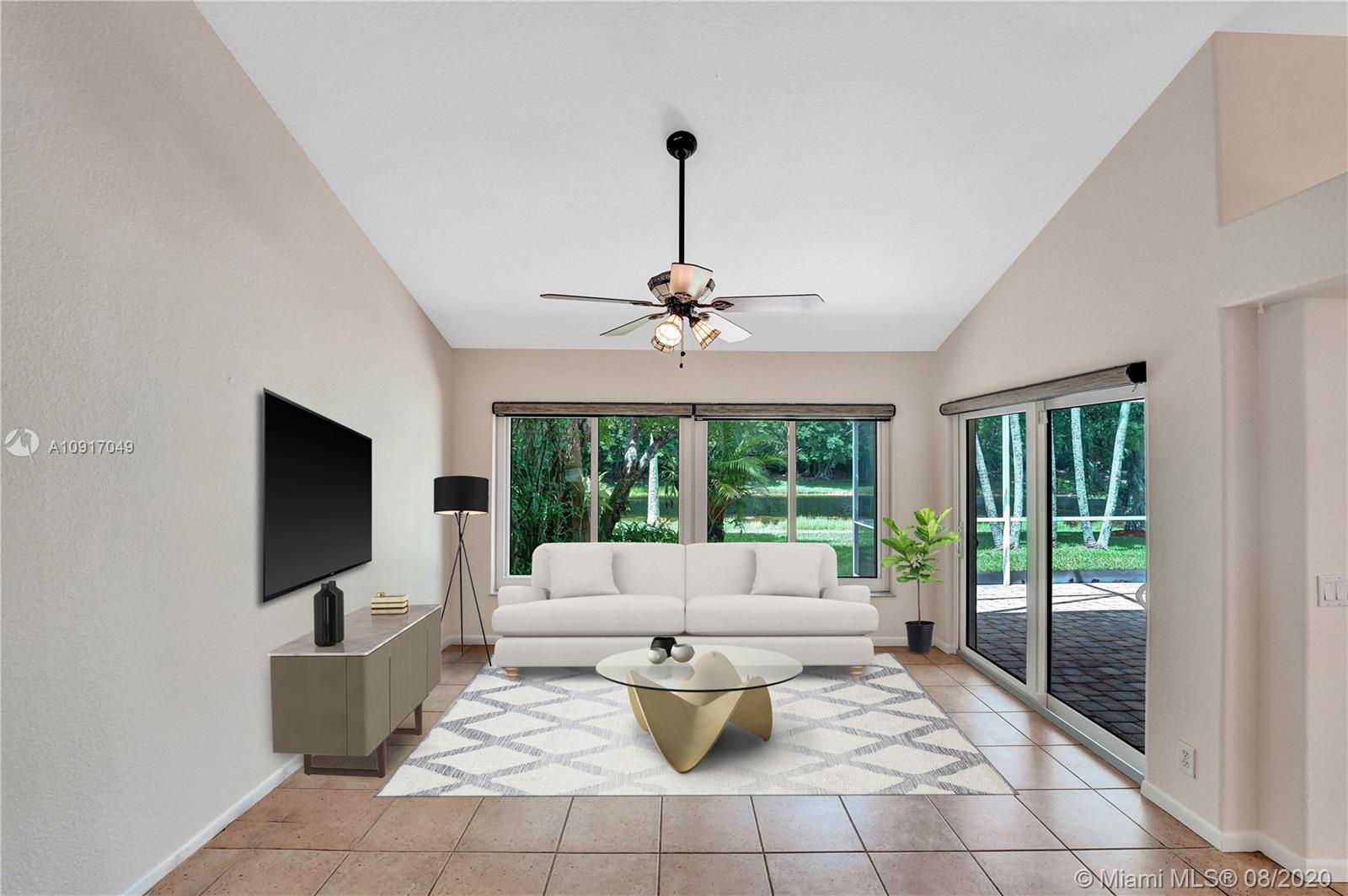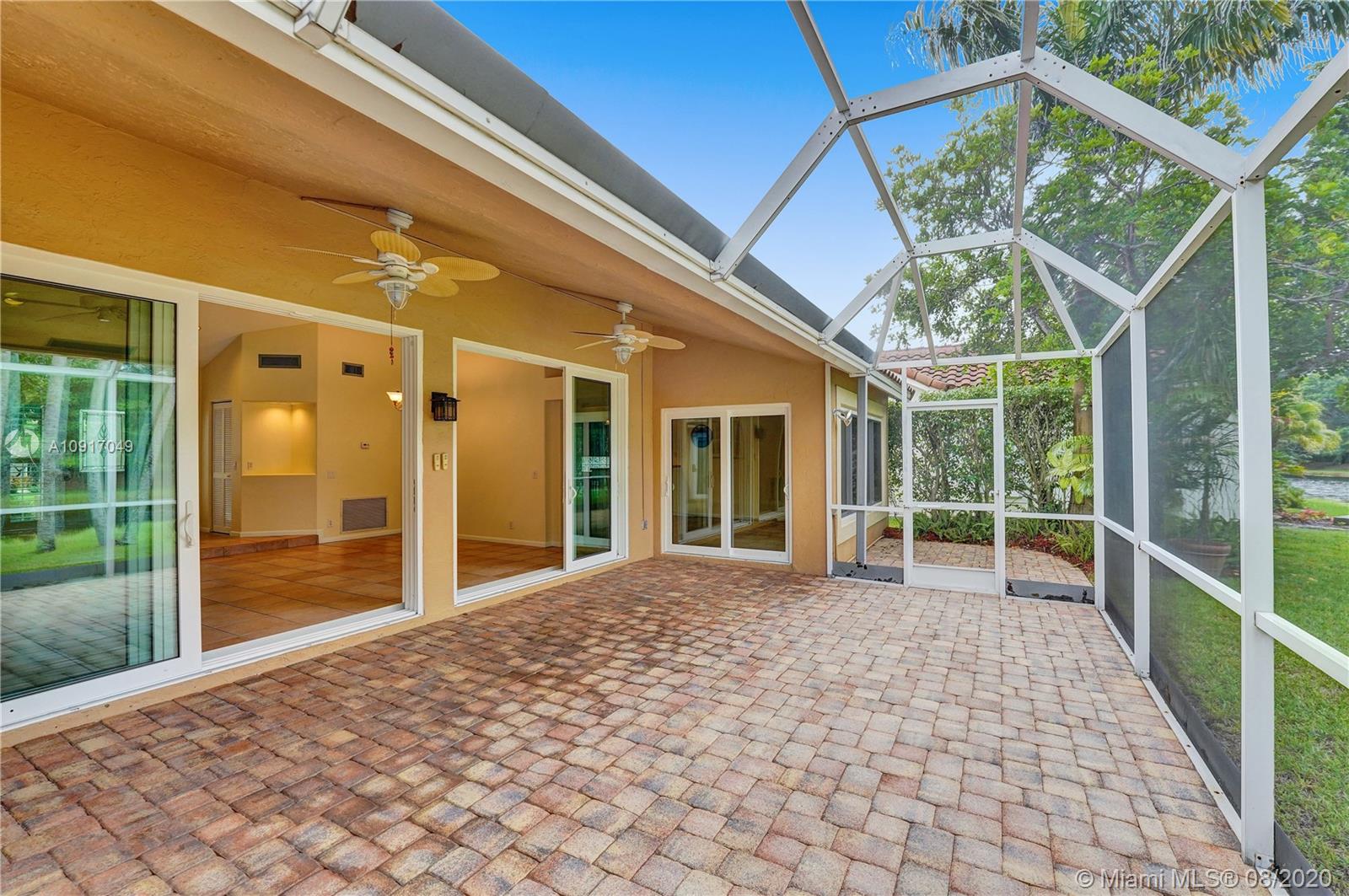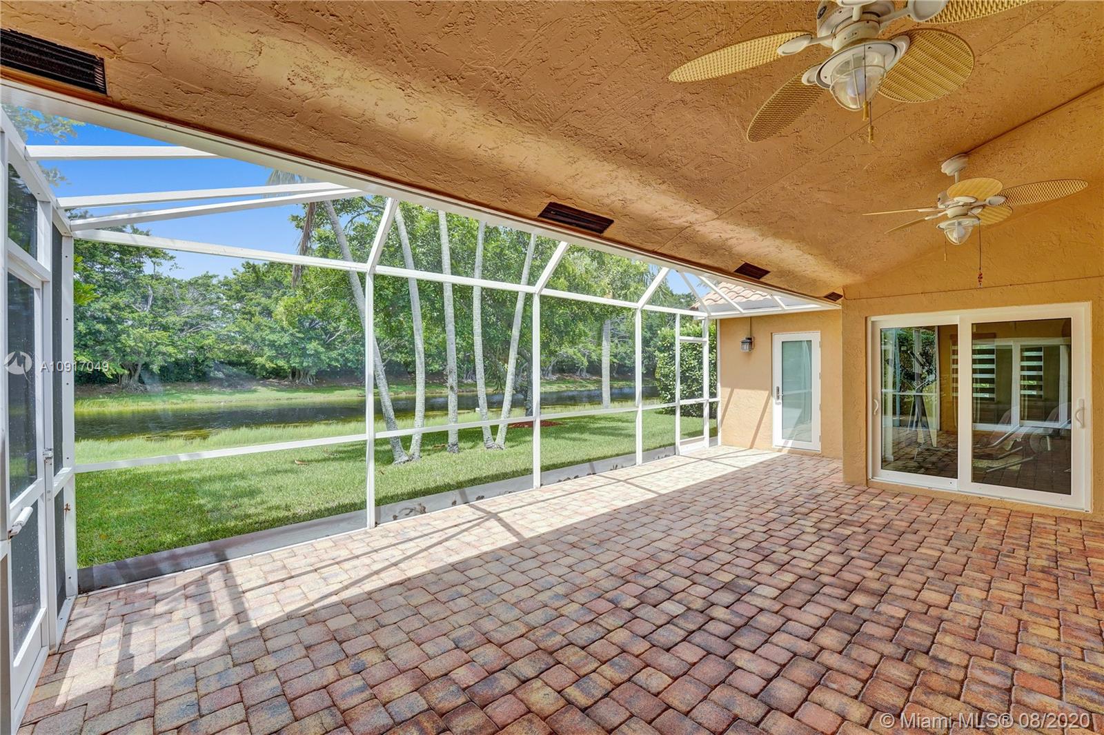 Fabulous opportunity @ highly sought-after "Laguna Springs 2" Updated 1 level waterfront home, unique architectural details, expansive living areas with high ceilings, picture windows with motorized blinds & tall sliding patio doors, calming views of waterfront & greenery, true S Florida indoor/outdoor lifestyle. Updated large kitchen, updated master bath with soaking tub & separate stall shower. Large screened & very private patio overlooking a peaceful setting. Newly installed ($40,000+) Impact & energy efficient windows & doors + newer roof, wired for back-up power during black-outs. Located in a small, quaint & centrally located enclave, resort style community pool. Walking distance to Indian Trace Elementary, Tequesta Trace Park facilities, Middle school, shopping & houses of worship.