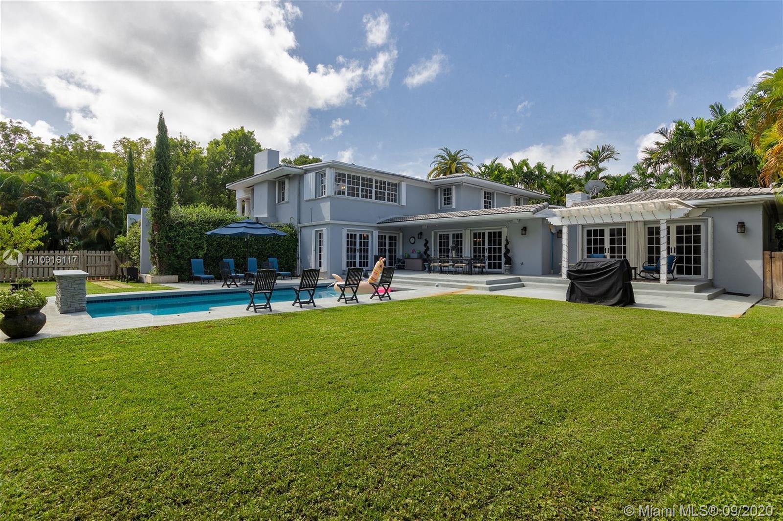 BEAUTIFUL 2-STORY HOME ON GRAND CONCOURSE IN MIAMI SHORES. LARGE LOT WITH 2 CAR CARPORT, COVERED PATIO & POOL. ENTER THIS HOME BY WAY OF A LARGE FOYER WITH SWEEPING OPEN STAIRCASE. FIRST FLOOR HAS 2 BEDROOMS & 2 FULL BATHS + OFFICE & HALF BATH. UPSTAIRS HAS 4 BEDROOMS AND 3 BATHS. BIG LIVING ROOM, BIG DINING ROOM & HUGE FAMILY ROOM. FAMILY ROOM HAS A WOOD BURNING FIRE PLACE & IS OPEN TO THE RENOVATED COOK'S KITCHEN. GIANT PLAYROOM LARGE ENOUGH TO KEEP ALL THE KIDS TOYS IN ONE SPACE. MANY ROOMS OVERLOOK THE POOL & GARDEN. GREAT OUTDOOR SPACES, POOL, GRASSY PLAY AREA, COVERED PATIOS & ROOM FOR A GARDEN. VERY PRIVATE YARD. WALK TO ALL THE KIDS ACTIVITIES & COUNTRY DAY SCHOOL. MOVE IN CONDITION, NOTHING LIKE IT ON THE MARKET IN MIAMI SHORES.
