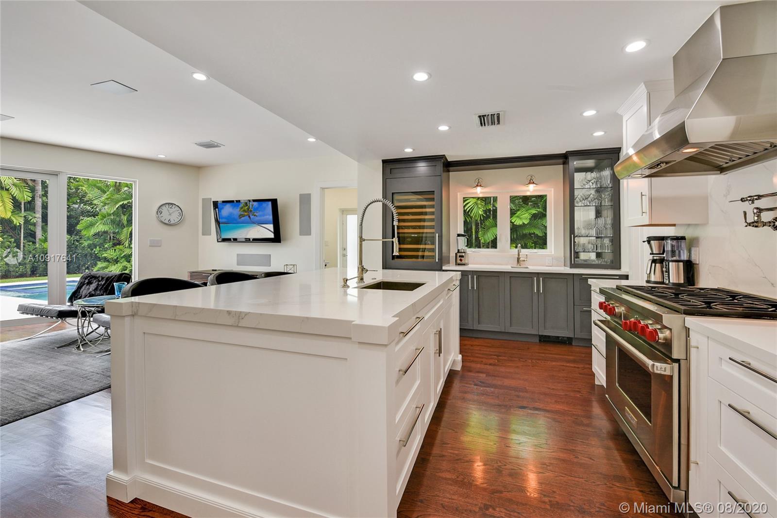 Gorgeous mid-century home overlooking Riviera Golf course with views of The Biltmore Hotel just west of Santa Maria Street. Completely remodeled, this 2019 Coral Gables Tour of Kitchen’s home is a chef's dream: custom cabinetry; large island; Sub-Zero and Wolf appliances. Kitchen is fully open to family room with views of the lush backyard paradise -pool and spa. Hardwood floors throughout, large bedrooms and designer finishes. Expansive master suite includes marble bathroom, dual vanity, double rain shower, walk in closet and dedicated shoe closet. Separate office with two built in desks for working from home or virtual school. Impact windows and doors, 1,000 gallon underground propane tank, security system, and circular drive with parking for up to 10 cars. Walk to Riviera Country Club.