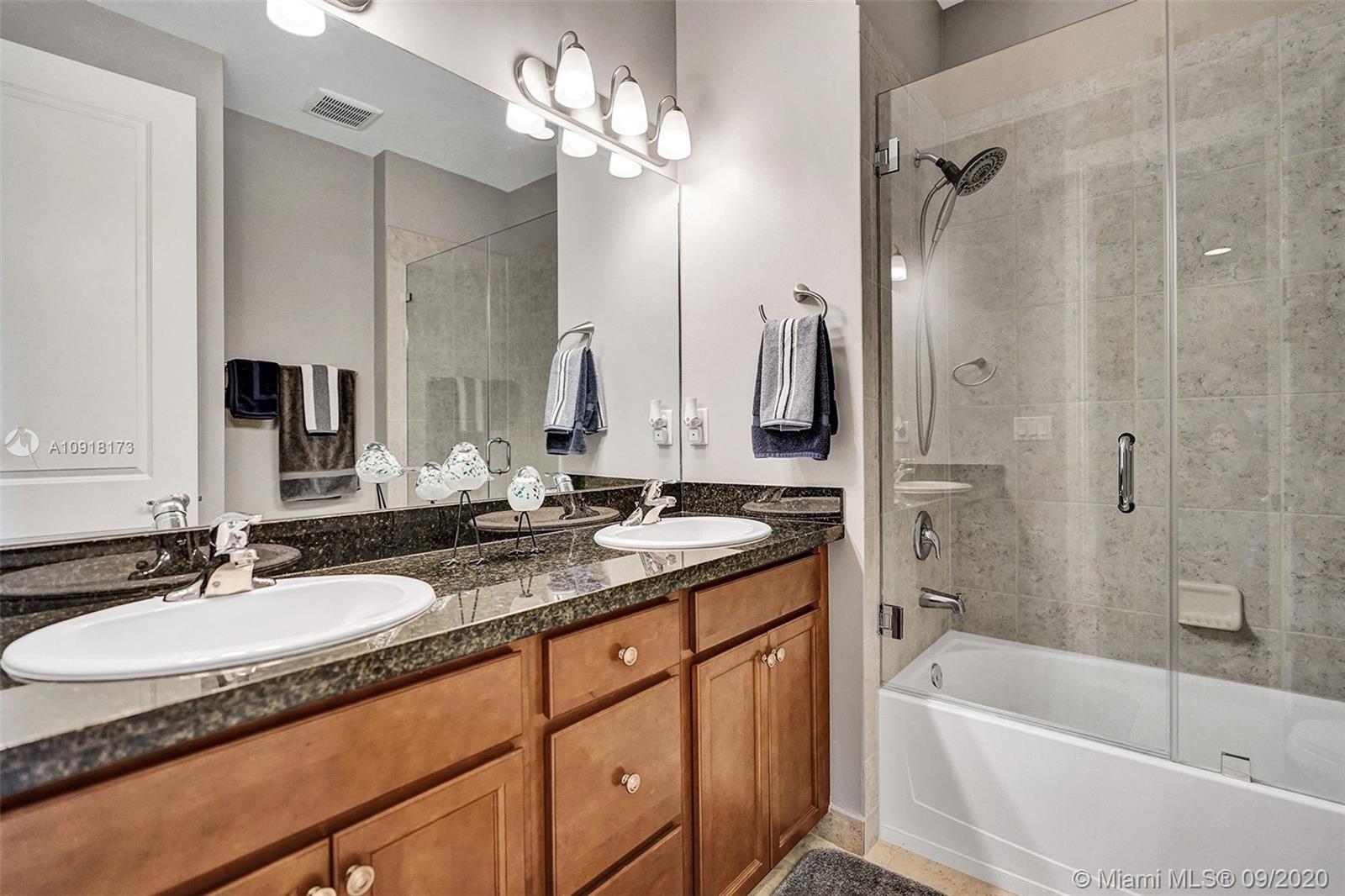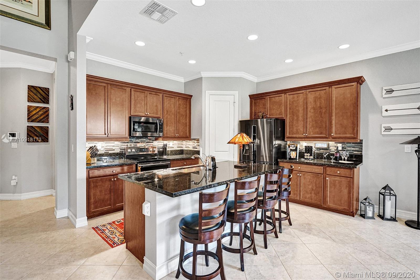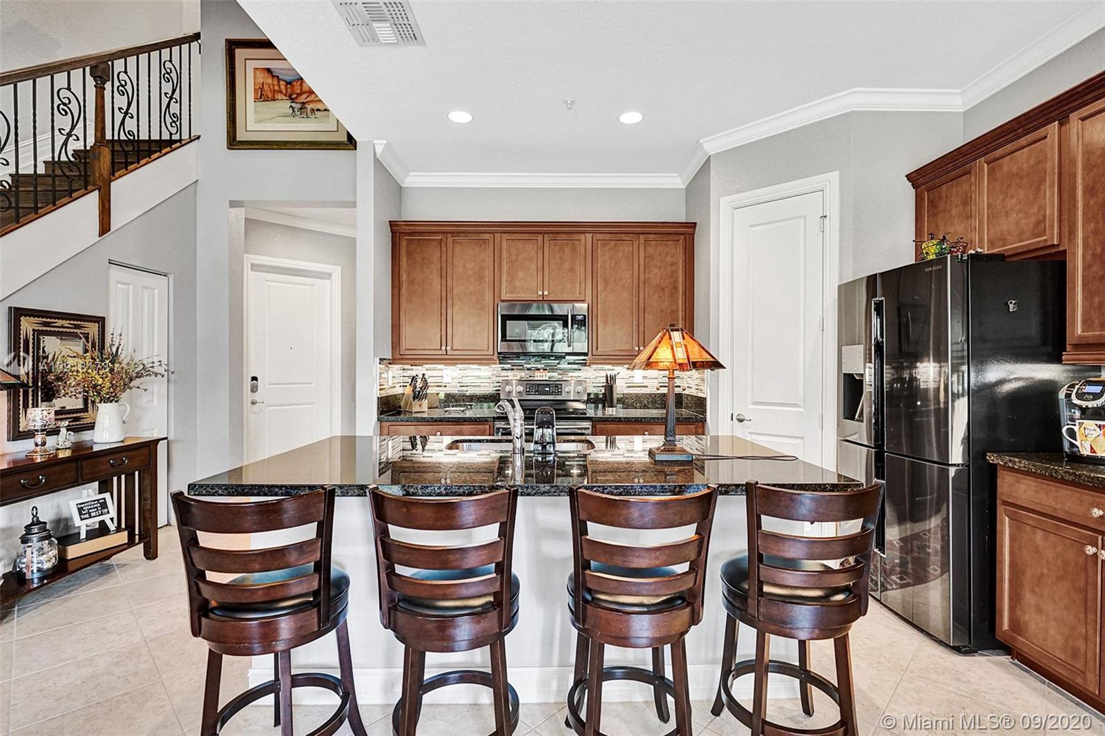 Paradise at Raintree villa townhouse with over 2,000 completely tiled interior square feet. Downstairs boasts an open concept kitchen,solid oak cabinets, cooks island, Brazilian granite counters, top line Samsung appliances, half bathroom & attached 2 car garage. Magnificent views of lush patio garden delight family & friends as they relax in the living/dining area. The custom wrought iron & wood staircase leads upstairs to the 2nd & 3rd bedrooms & bathroom with granite counter double sink vanity with European glass bathtub/shower enclosure and full laundry room. The master suite is complete with 2 separate granite & wood dual sink vanities, luxurious octagonal shower with custom glass enclosure and a huge walk-in closet. Resort style swimming pool and club house are just steps away