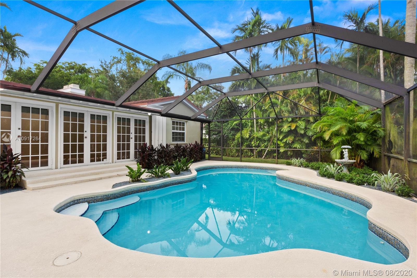 Lovely Spanish Ranch home in the heart of the Gables. 3 bedroom, 2 bath in the main house and a 1 bedroom, 1 bath in-law quarters on a large 13,900 sq. ft. lot. Hardwood floors throughout, working fireplace, updated Granite and Stainless steel kitchen and a 5 year old roof. Impact windows, oversized two car garage and a beautiful screened in pool, with lush tropical landscaping. This is turnkey and offers a formal Dining room and plenty of room for expansion. Walk to the Venetian Pool, Biltmore Hotel or Drive 5 minutes to downtown Coral Gables of the Shops at Merrik Park.