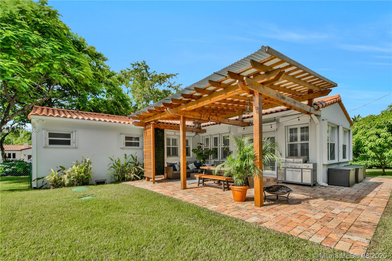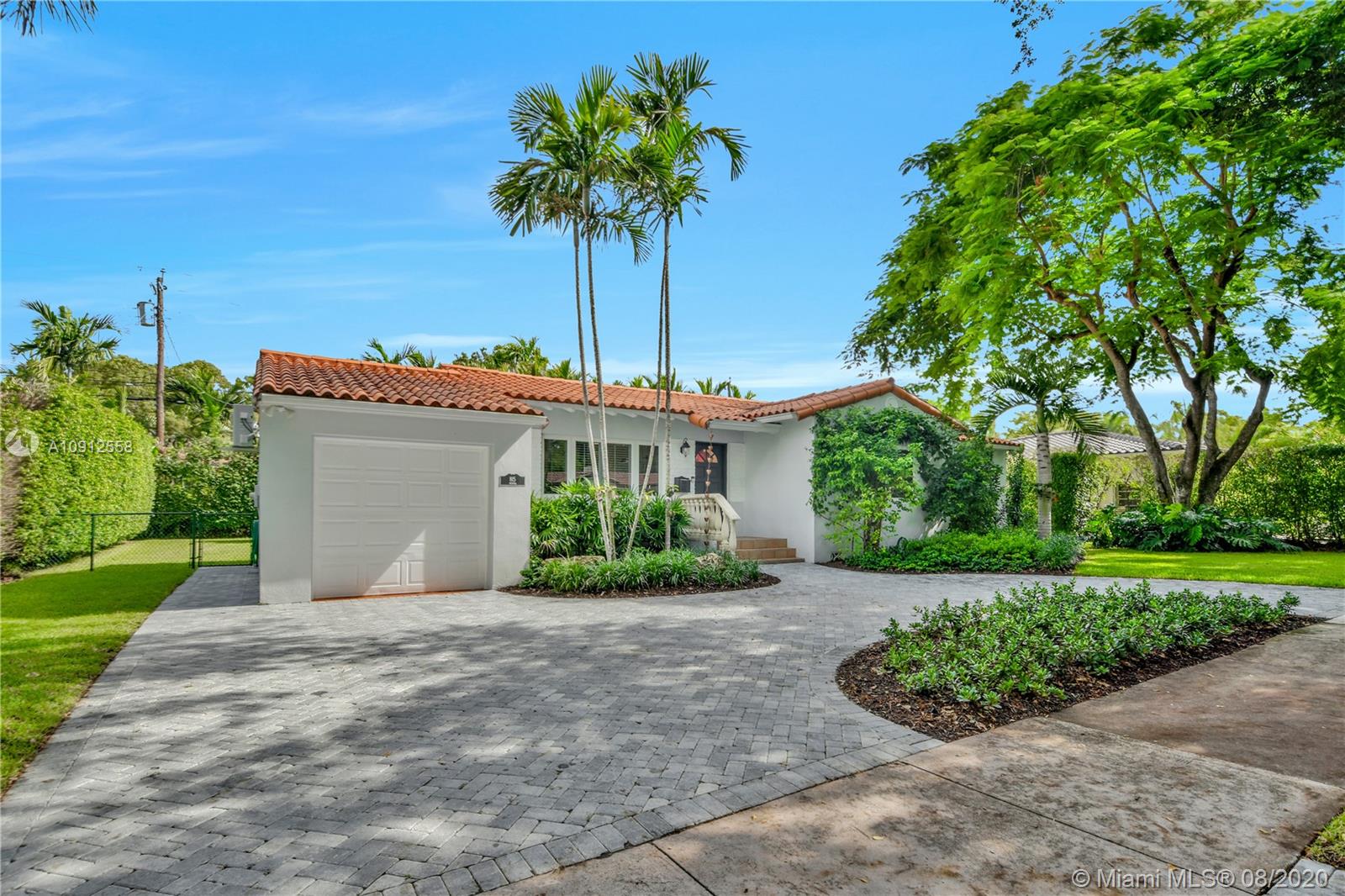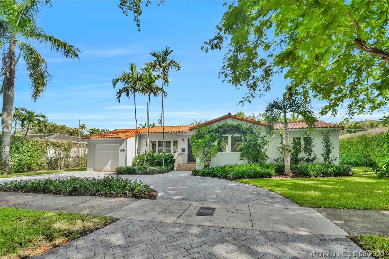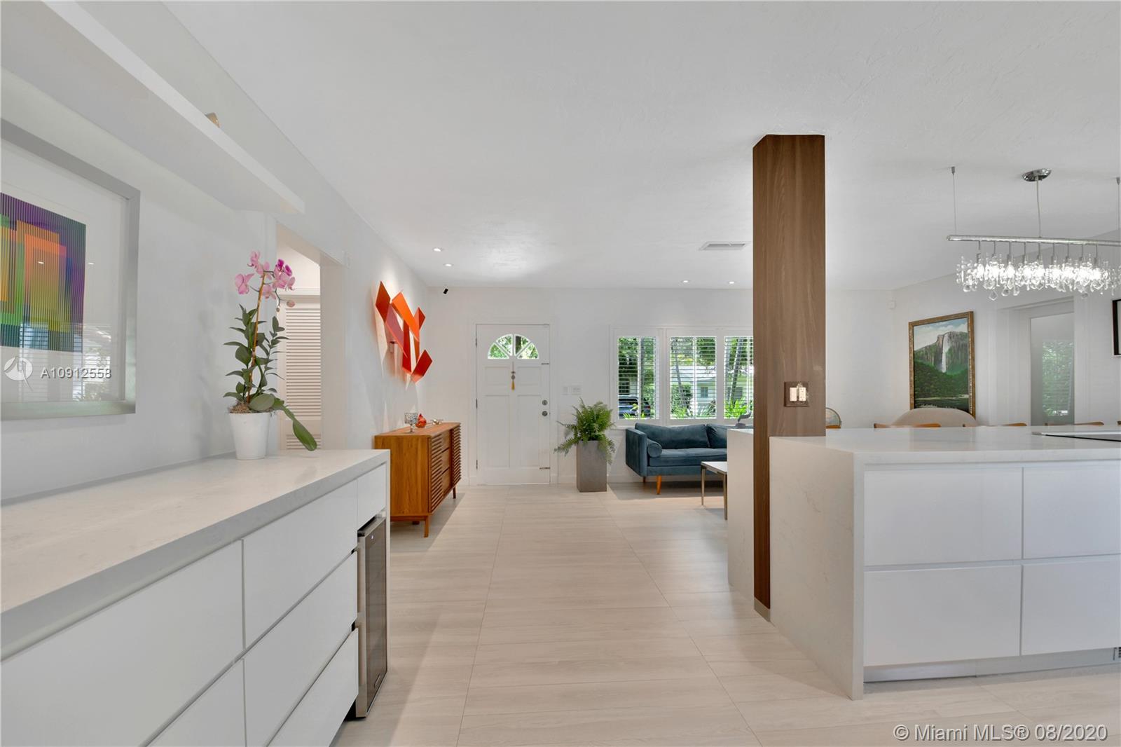 This elegant and lovely Mediterranean/Modern home sits on a quiet dead end tree-lined street in the heart of Coral Gables. The seamless spacious floor plan is truly amazing, with lots of natural bright light shinning throughout. Exquisitely remolded with Italian porcelain tile across all rooms with a state-of-the-art kitchen, which includes top of the line Bosch oven, microwave, cook-top, and downdraft. White cabinetry and a 12-ft quartz island with a waterfall finish, including a stainless steel farmhouse sink, while the kitchen sidebar includes a wine fridge. Enjoy your private and delightful oasis of tropical landscaping for relaxing and entertaining under your beautiful natural cedar wood pergola. Close to Miracle Mile, which is filled with world class restaurants and art galleries.