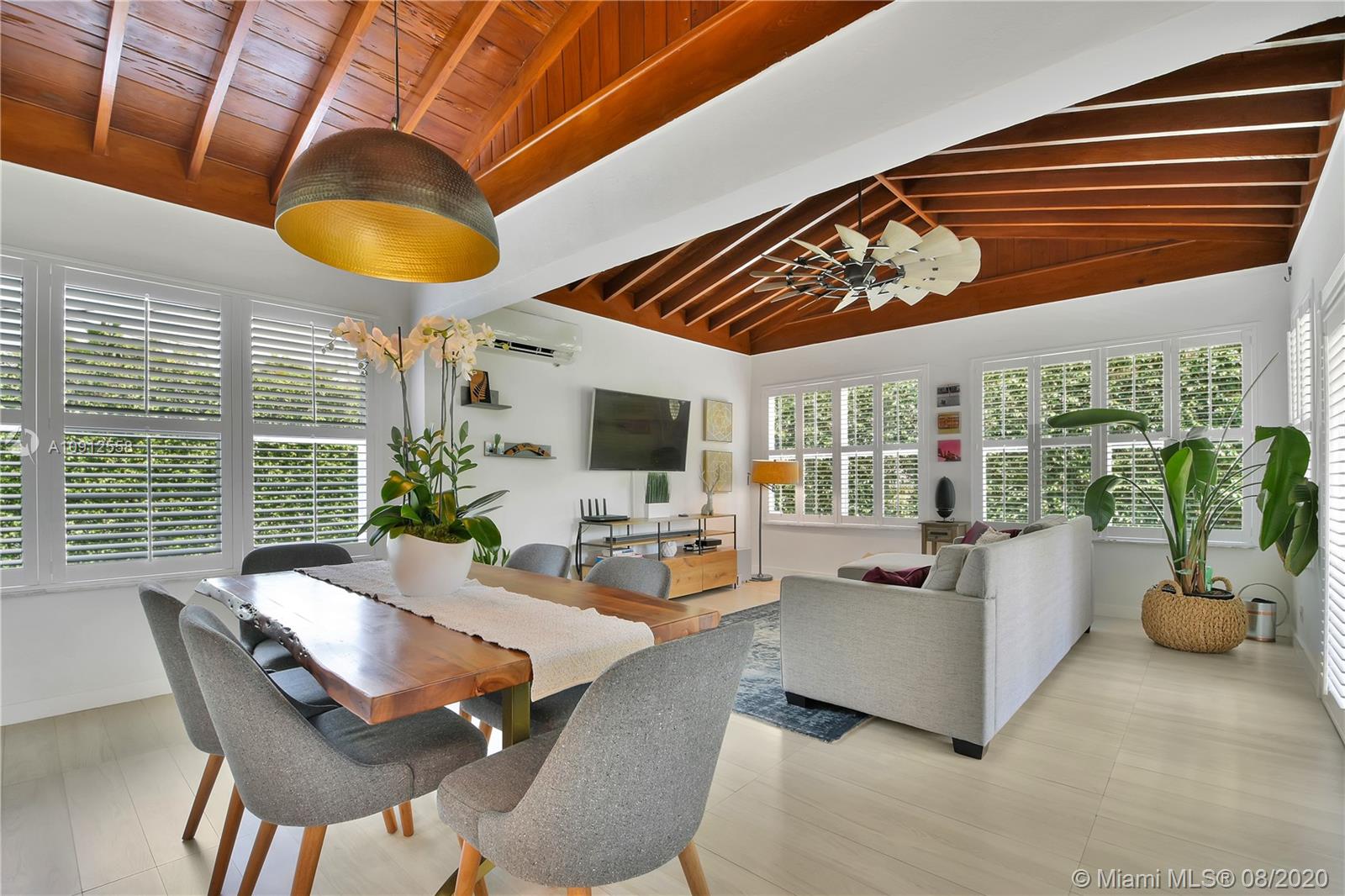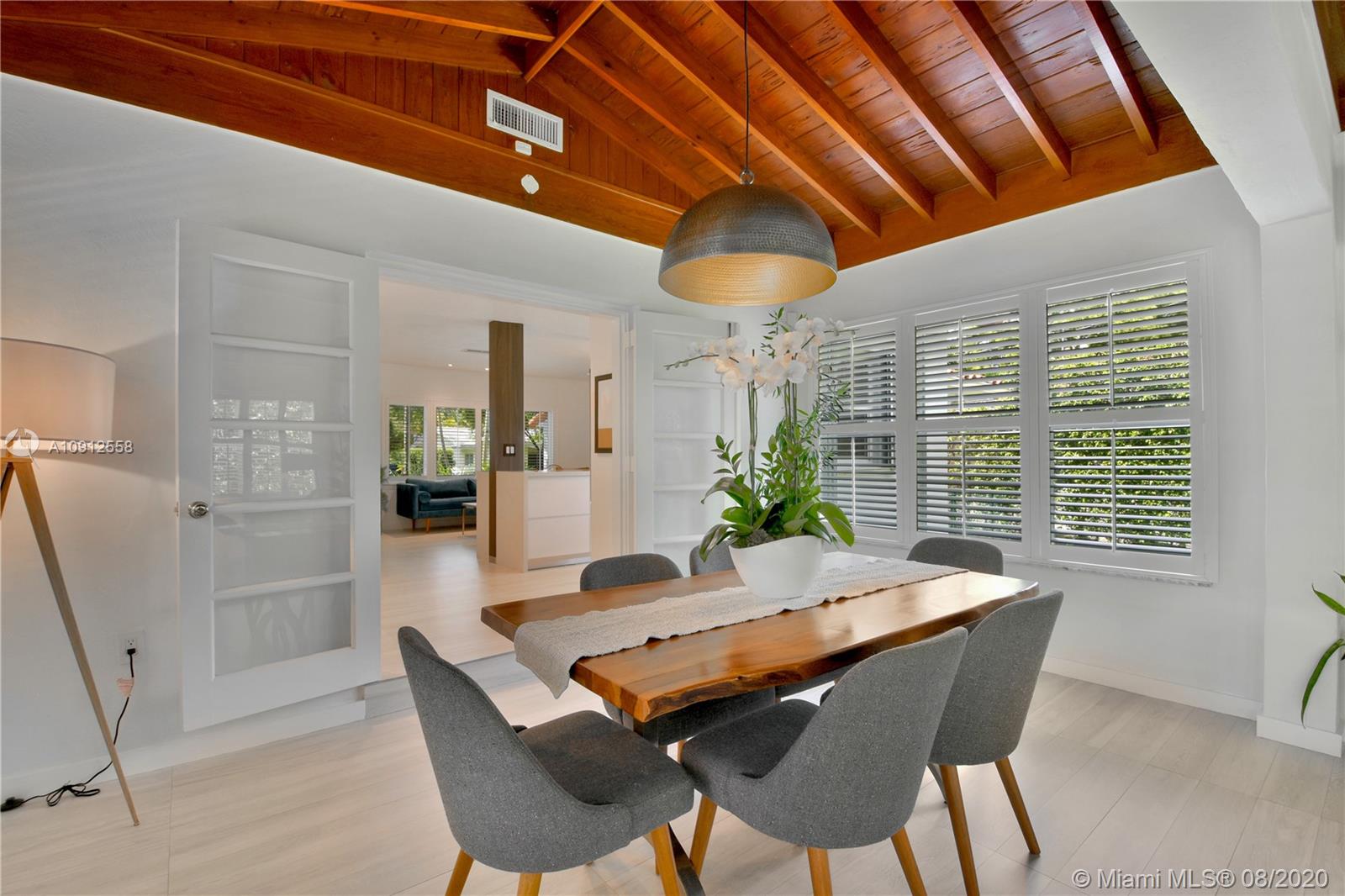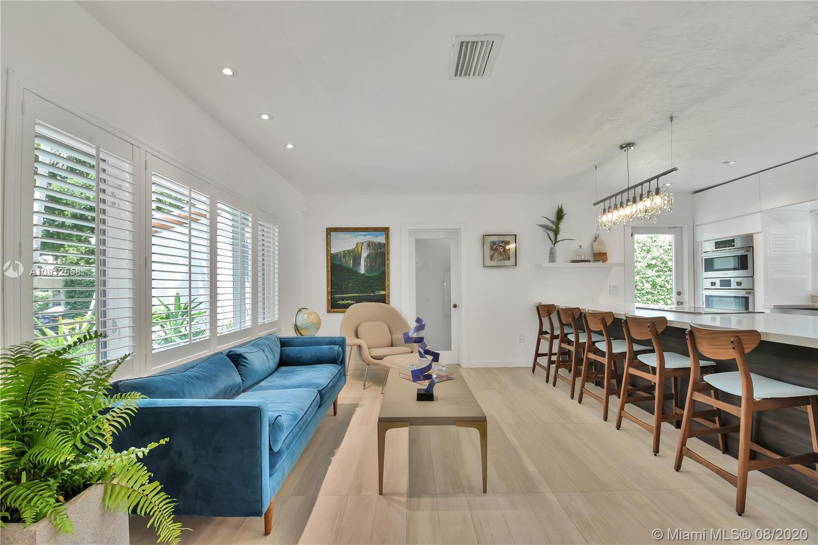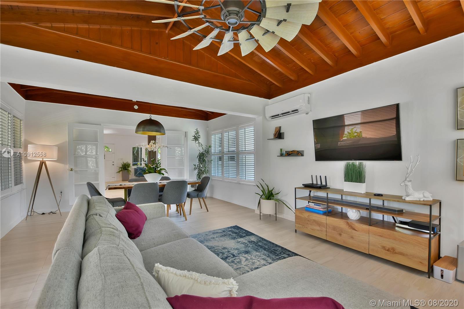 This elegant and lovely Mediterranean/Modern home sits on a quiet dead end tree-lined street in the heart of Coral Gables. The seamless spacious floor plan is truly amazing, with lots of natural bright light shinning throughout. Exquisitely remolded with Italian porcelain tile across all rooms with a state-of-the-art kitchen, which includes top of the line Bosch oven, microwave, cook-top, and downdraft. White cabinetry and a 12-ft quartz island with a waterfall finish, including a stainless steel farmhouse sink, while the kitchen sidebar includes a wine fridge. Enjoy your private and delightful oasis of tropical landscaping for relaxing and entertaining under your beautiful natural cedar wood pergola. Close to Miracle Mile, which is filled with world class restaurants and art galleries.