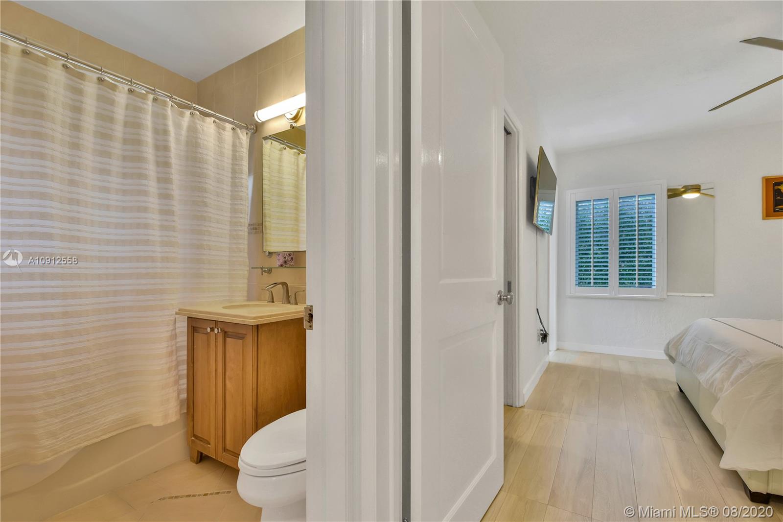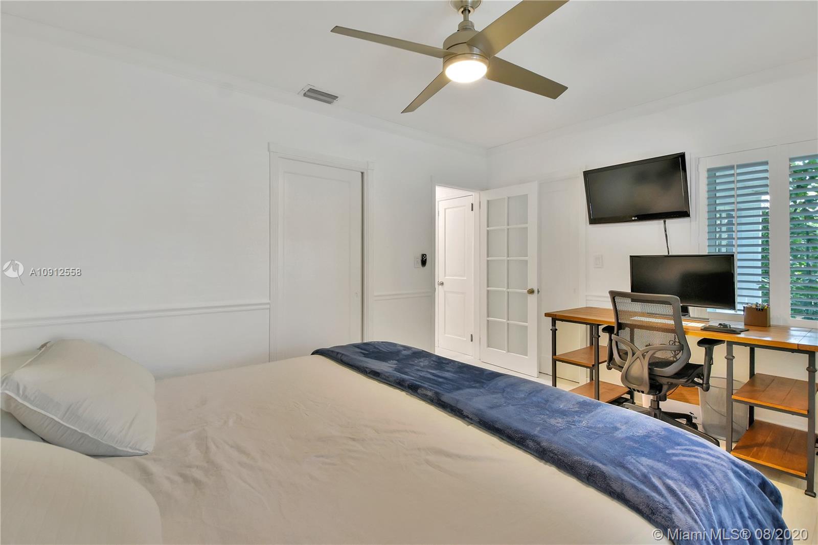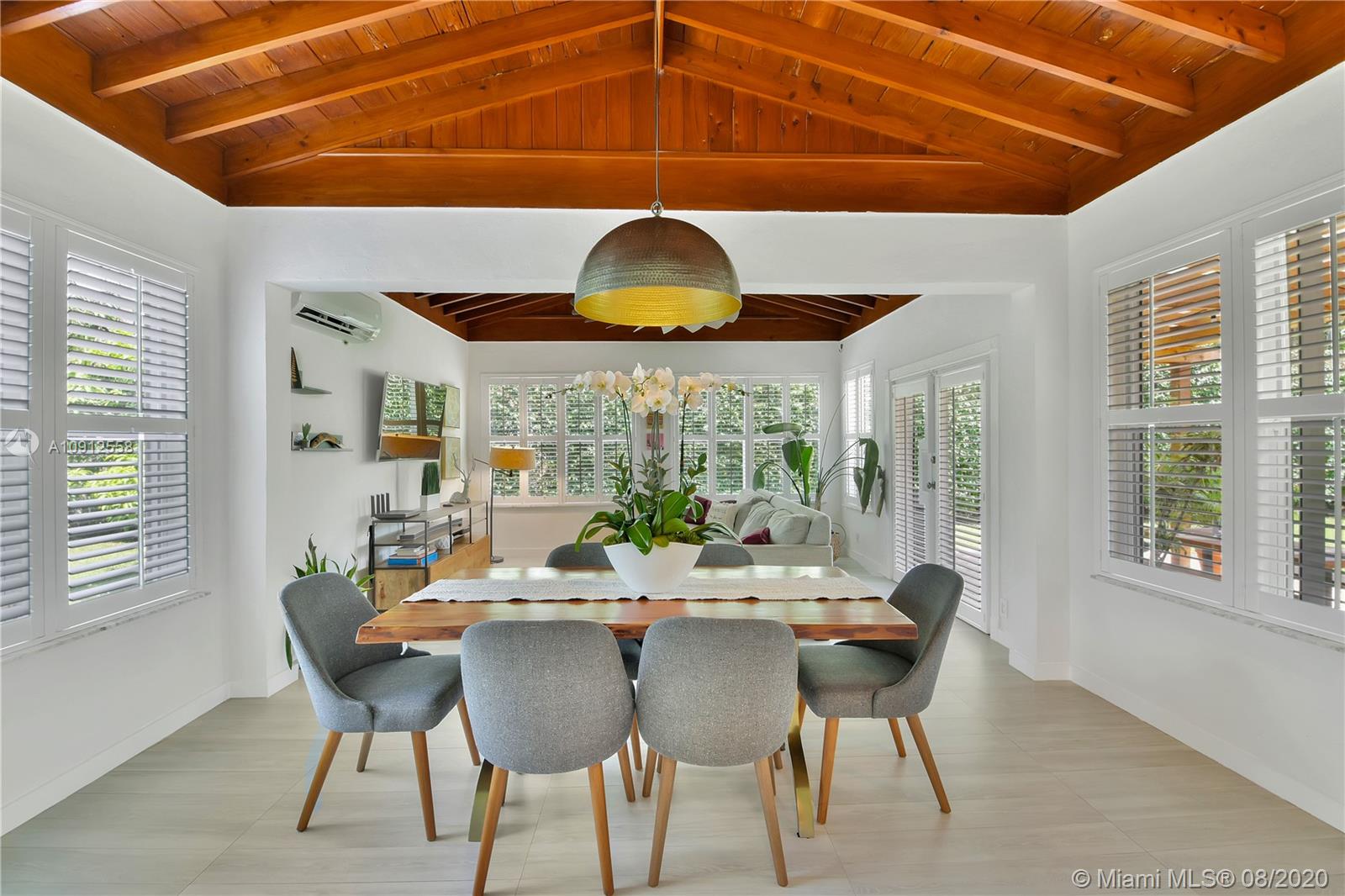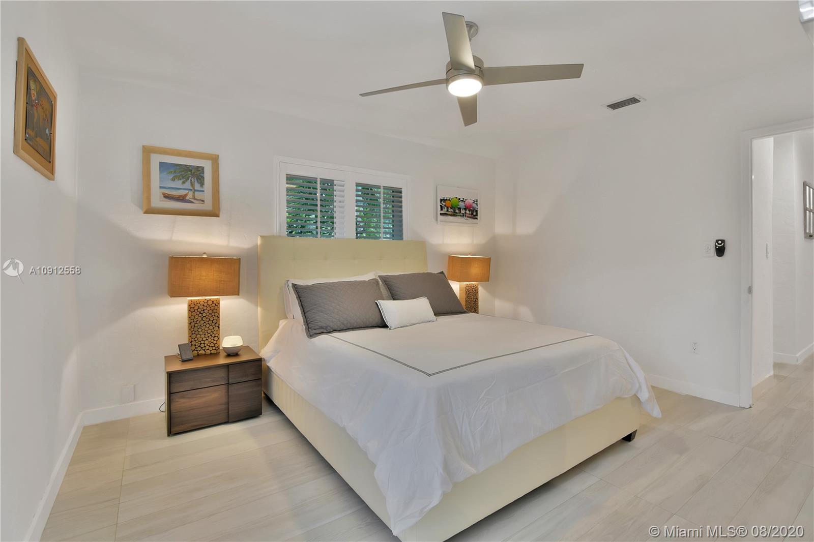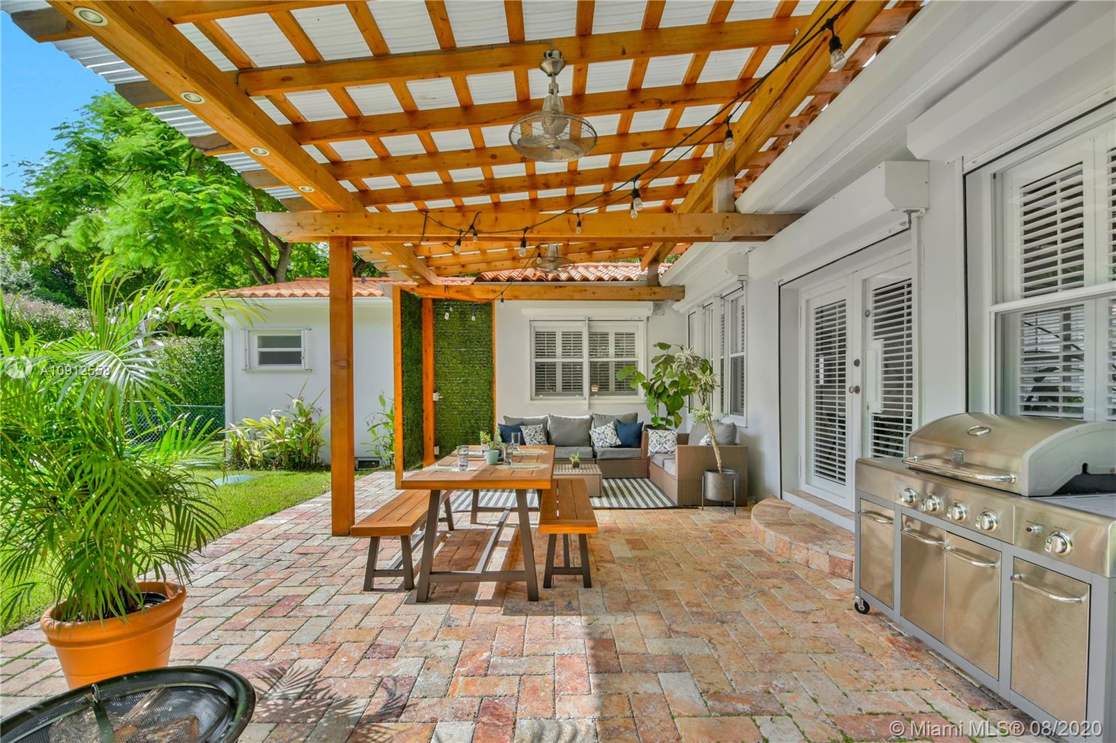 This elegant and lovely Mediterranean/Modern home sits on a quiet dead end tree-lined street in the heart of Coral Gables. The seamless spacious floor plan is truly amazing, with lots of natural bright light shinning throughout. Exquisitely remolded with Italian porcelain tile across all rooms with a state-of-the-art kitchen, which includes top of the line Bosch oven, microwave, cook-top, and downdraft. White cabinetry and a 12-ft quartz island with a waterfall finish, including a stainless steel farmhouse sink, while the kitchen sidebar includes a wine fridge. Enjoy your private and delightful oasis of tropical landscaping for relaxing and entertaining under your beautiful natural cedar wood pergola. Close to Miracle Mile, which is filled with world class restaurants and art galleries.
