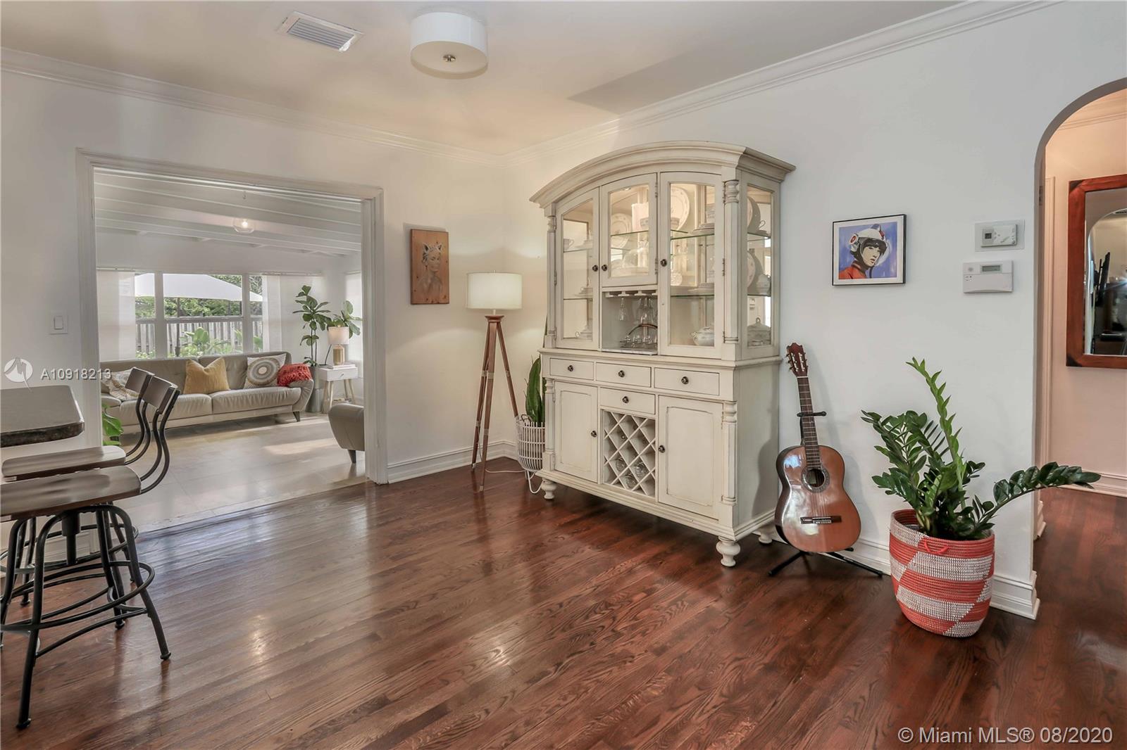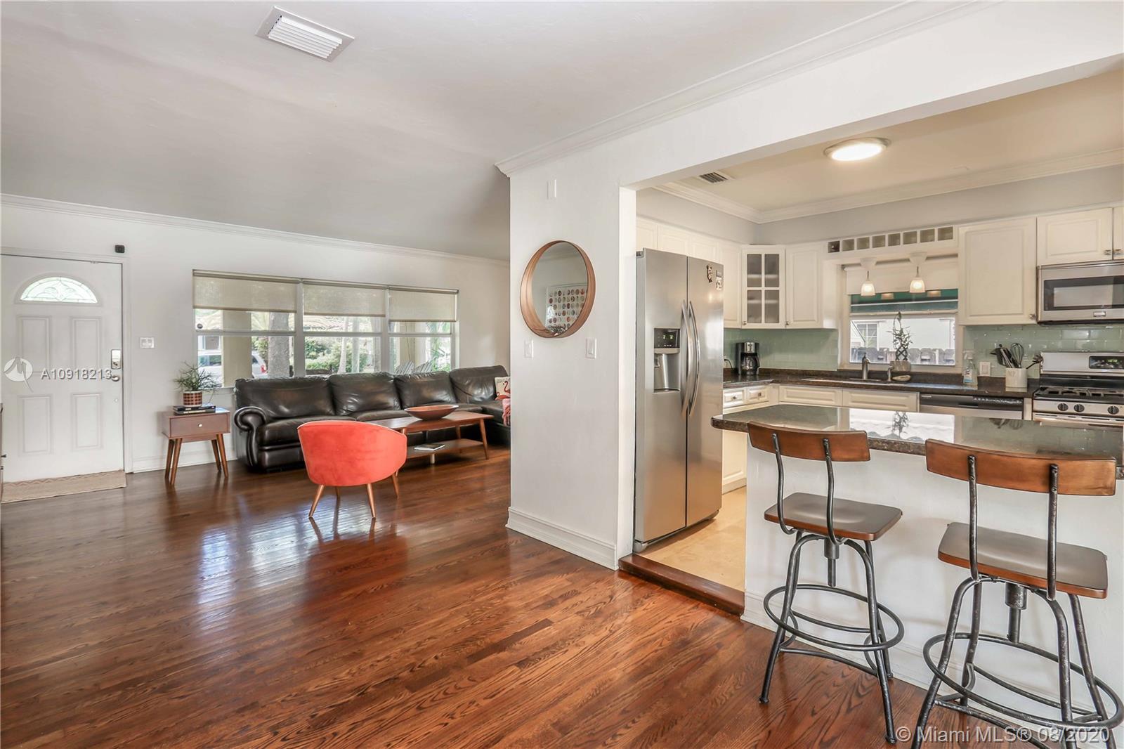 Welcome to your dream home nestled in the beautiful Historic Hollywood Lakes community. This 3 bedroom, 3 bath offers functionality and privacy with its split floor plan layout. Home features beautiful designed kitchen with stainless steel appliances, gas stove, granite countertops with subway glass backsplash, formal dining room, family room with exposed wood beams in ceiling, original, wood floor in living room, 2 master suites, updated bathrooms, crown molding throughout, impact windows and doors. Outside of the home features a spacious, fenced backyard with stamped concrete patio, covered porch, and a storage shed. Stamped concrete driveway and parking for 2 cars.