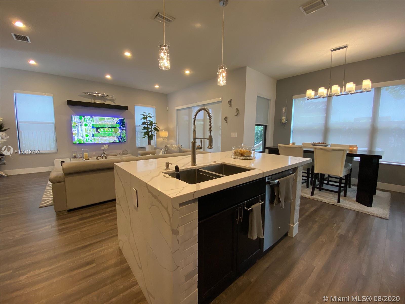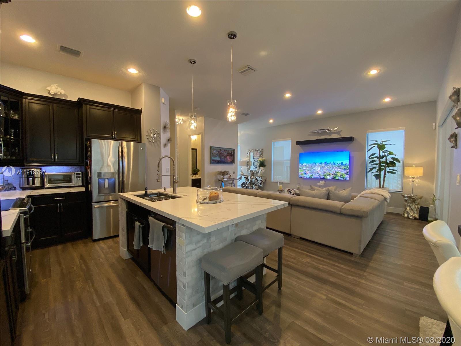 Move in ready elegant and unique home in Bonterra.This 2,609 Sq Ft.home has 3-bedroom, 2 1/2 bathrooms, a 2-car garage fully equipped with elegant epoxy flooring and 2 ceiling racks for a convenient and functional space. This open concept home has elegant flooring in the entire house, a fabulous kitchen with calacatta quartz countertops, top of the line stainless steel appliances, carrara marble showers, upgraded kohler faucets, toilets and bathroom accessories, designer class bathroom vanities, beautiful and modern upgraded light fixtures and fans, a covered terrace, a beautiful fenced garden with pet friendly artificial turf, front load washer/dryer, modern windows treatments (2 are motorized), SmartHome kit included and more. Do not miss the opportunity to own a home ready to move in.