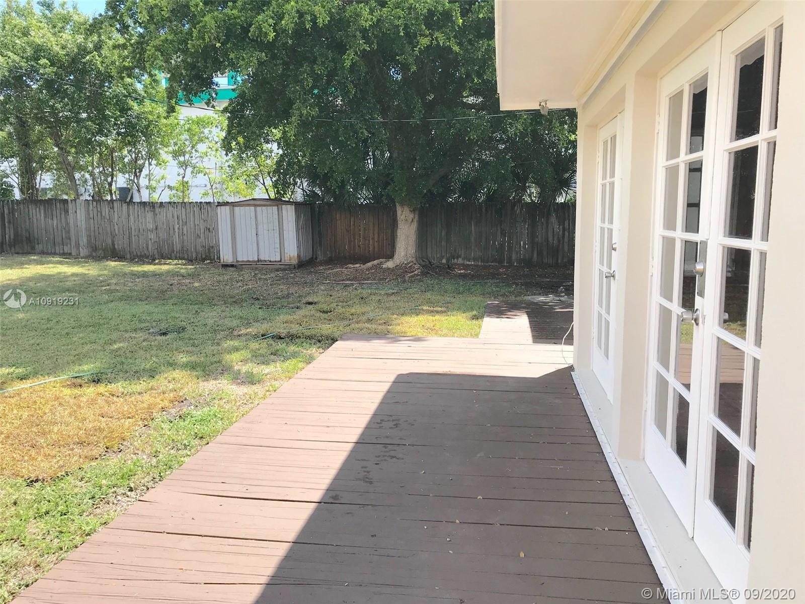 Move-in condition 3/2 + DEN, Open Wood & Granite kitchen . . . Cozy knotty wood paneled family room with 4 French doors overlooking deck & big fenced back yard. Elevated lot, high ground level gives home a unique breeze. New Roof. Storage shed. Garage was converted with permit . . . Large median strip street with plenty of entertaining parking . . . Super Location . . About 1.5 miles to New Costco, New Publix, Whole Foods, Target, Home/Office Depot’s, Panera, Starbucks, Ross, Barry U. & so much more . . . SEE YOUTUBE VIDEO link in broker remarks