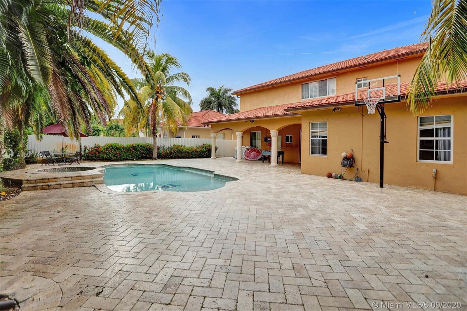 Magnificent Mediterranean beauty with 5 bedrooms plus inlaw quarters. This large family home has it all, two-story, two car garage, pool home boasting over 3238 SqFt of amazing living space. Foyer entrance into bright & open floor plan, high vaulted ceilings, tile throughout & lots of windows. Grand & spacious kitchen w/ stainless steel appliances which effortlessly pours into the expansive family room. Formal dining room is perfect for those large celebrations that transform a house into a home. Immense Master suite & bath, 2 laundry rooms, one full bath & bed downstairs, amazing crown moldings & accents, wide open tropical pool patio w/spa & marble pool deck. Basketball court. Perfect setting for those hot poolside summer days and ready for its new owner to build their memories!