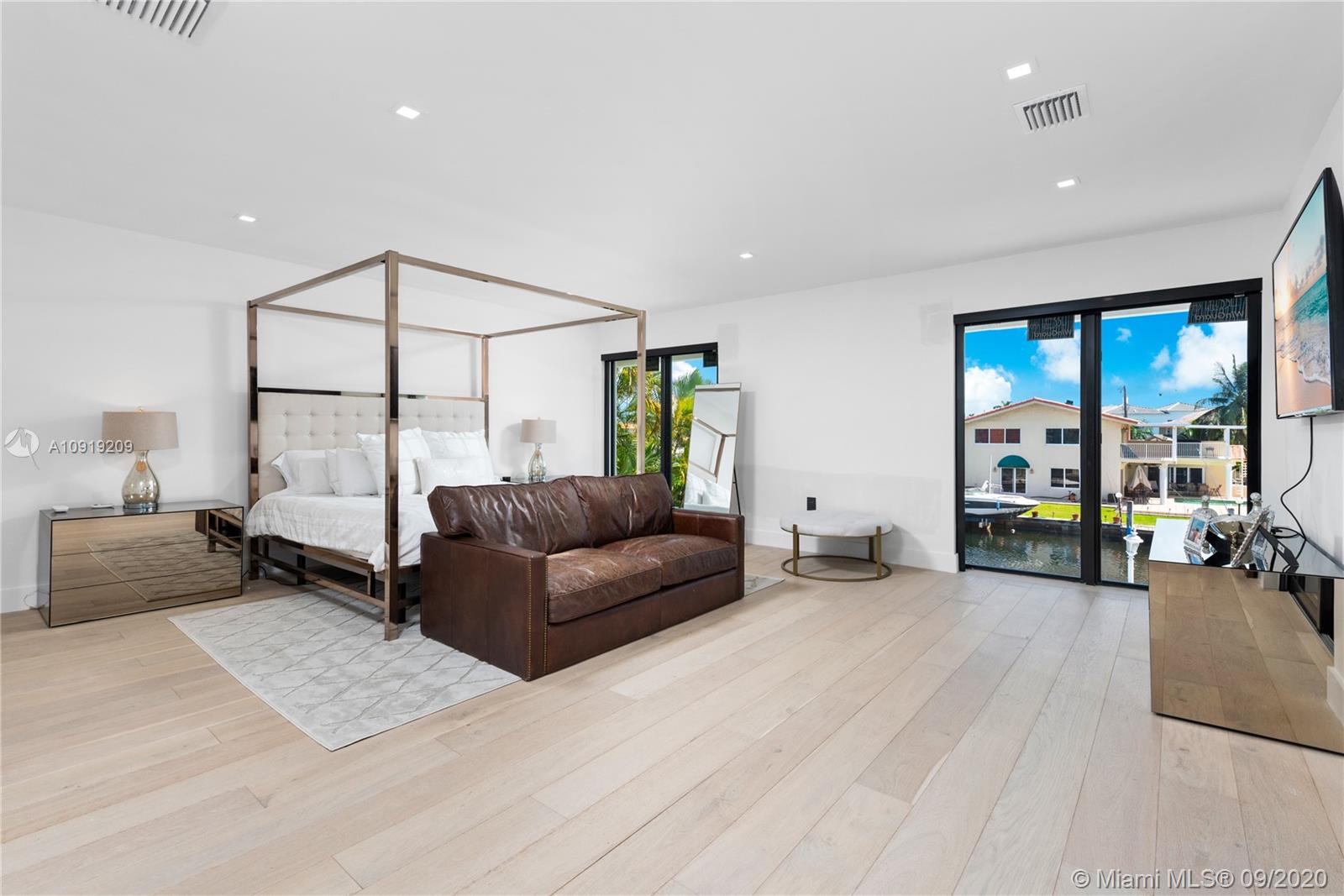 This fully remodeled, 5,650 sq ft home is situated on an oversized lot with one of the best views and more than 90 ft of water prime frontage in the heart of Eastern Shores - boasting 6 bedrooms, 7 bathrooms, a gym, office, movie theater, staff room and 2 car garage. The home has been renovated from the studs and done to the nines with no expense spared, this move-in ready home is filled with brand new AC units, new concrete tile roof, PGT hurricane impact windows, brand new 35 x 15 pool with brand new jacuzzi and energy efficient equipment. Interior finishes such as custom 48 x 48 Italian floors, a true chef’s imported kitchen equipped with subzero/wolf/Miele appliances and Dekton countertops plus custom features throughout the property make it the perfect turnkey home for a quick move-in