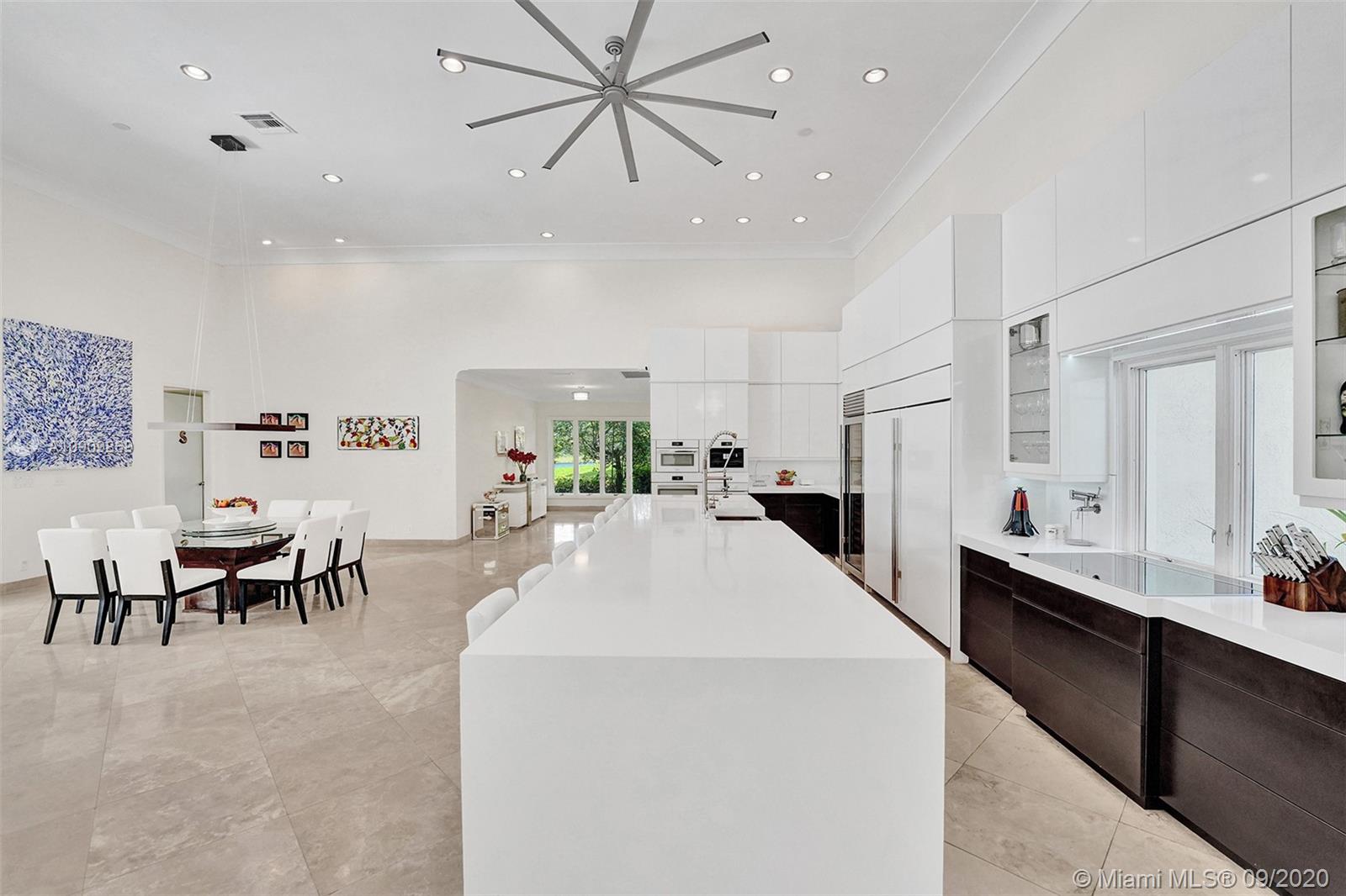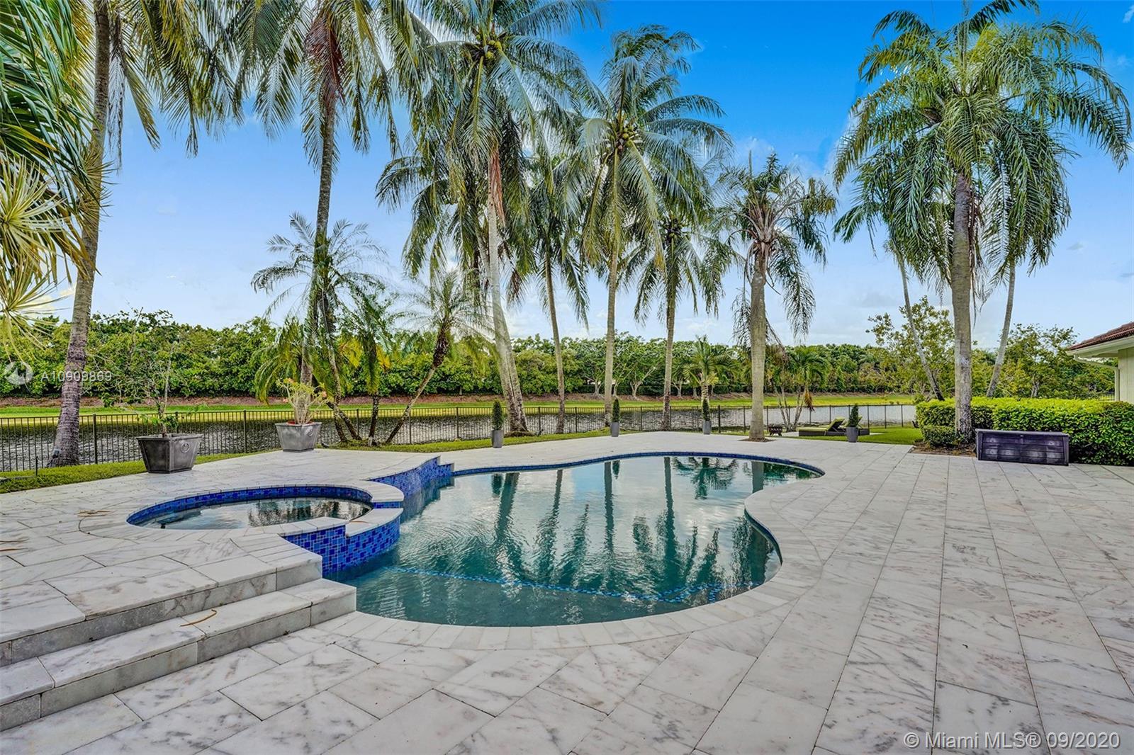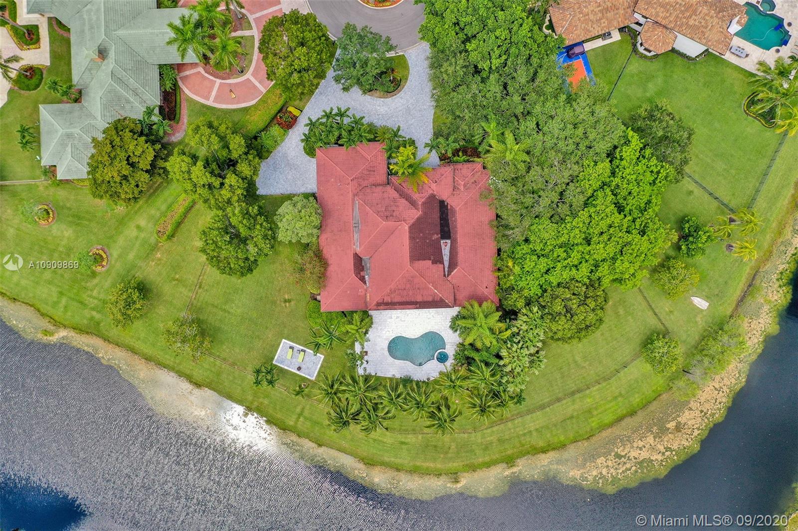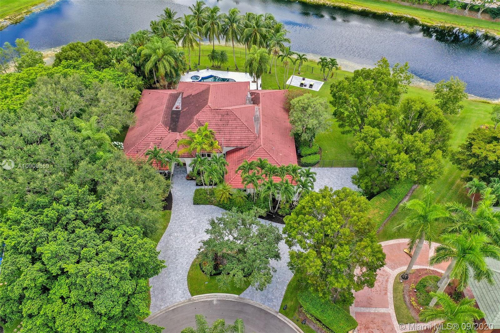 Tucked in the exclusive gated community of Windmill Ranch Estates. Point water lot with wrapping lake views on an oversized 1.25-acre cul de sac lot. 4,981 sq ft under air. Open-concept floor plan with 15' Volume Ceilings, double split bedroom plan. State of the art kitchen recently renovated with custom cabinetry, SubZero refrigerator, beverage center, ice maker & full-size wine cooler. Miele ovens regular oven, steam oven, and combo microwave, 2 Bosch dishwashers. Built-in piped Miele coffee maker. Marble & wood floors flow throughout Expansive covered patio w/summer kitchen. Recently renovated heated salt pool with spa. 6th Bedrm has a private entrance for office/in-laws/nanny quarters.