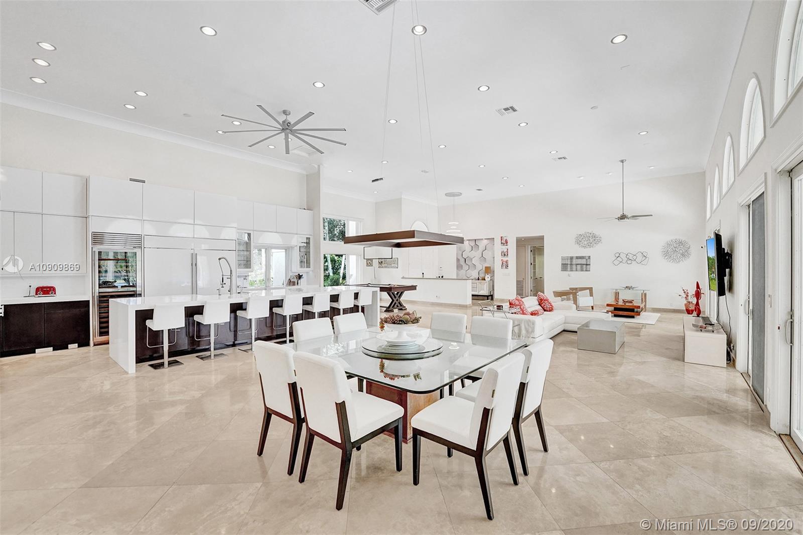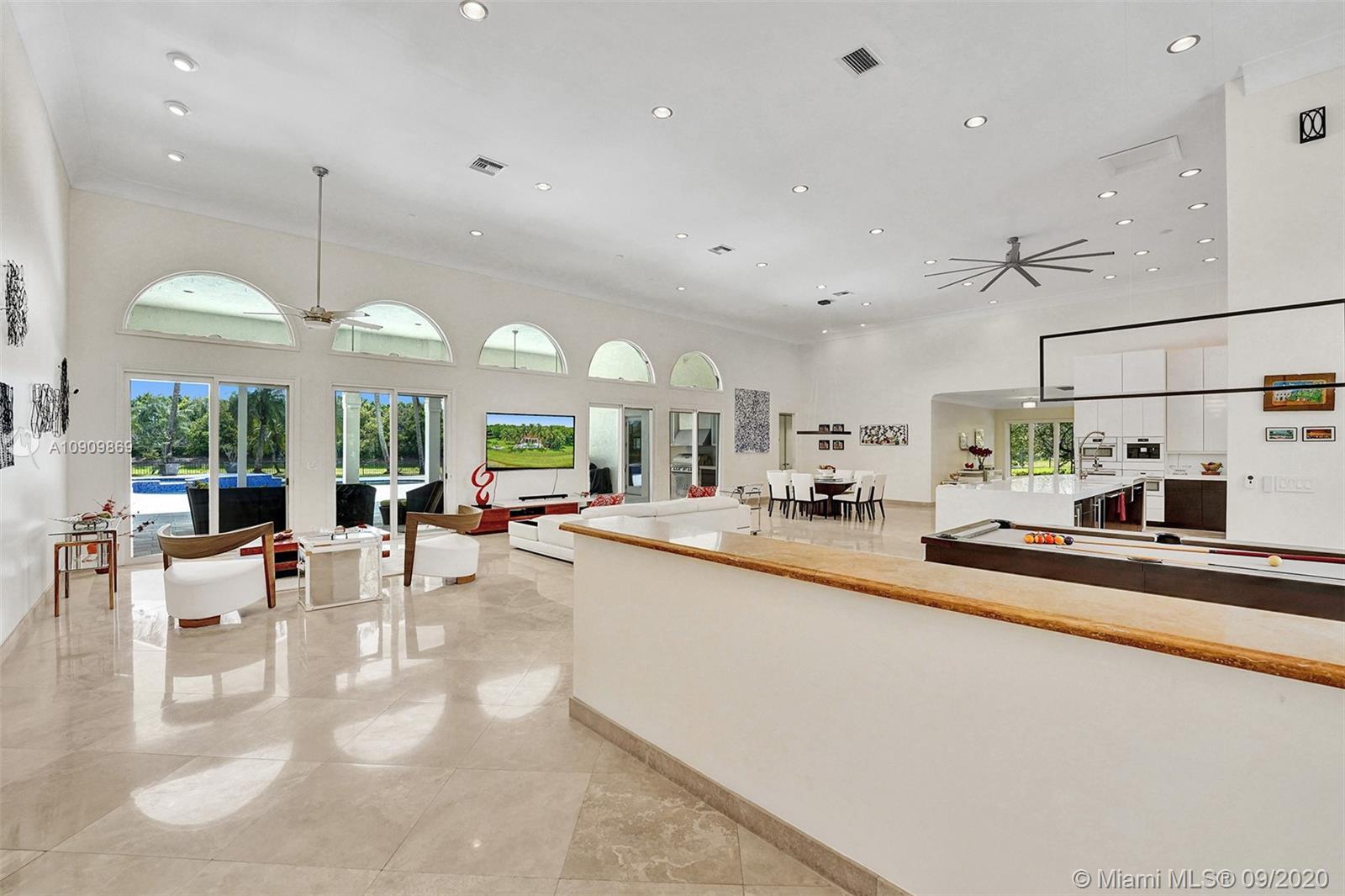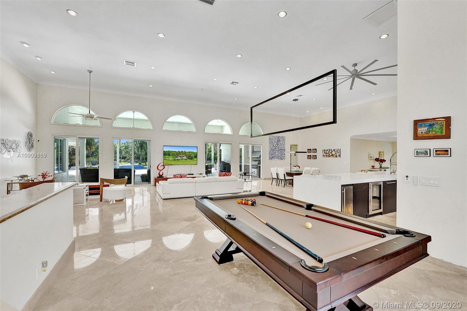 Tucked in the exclusive gated community of Windmill Ranch Estates. Point water lot with wrapping lake views on an oversized 1.25-acre cul de sac lot. 4,981 sq ft under air. Open-concept floor plan with 15' Volume Ceilings, double split bedroom plan. State of the art kitchen recently renovated with custom cabinetry, SubZero refrigerator, beverage center, ice maker & full-size wine cooler. Miele ovens regular oven, steam oven, and combo microwave, 2 Bosch dishwashers. Built-in piped Miele coffee maker. Marble & wood floors flow throughout Expansive covered patio w/summer kitchen. Recently renovated heated salt pool with spa. 6th Bedrm has a private entrance for office/in-laws/nanny quarters.