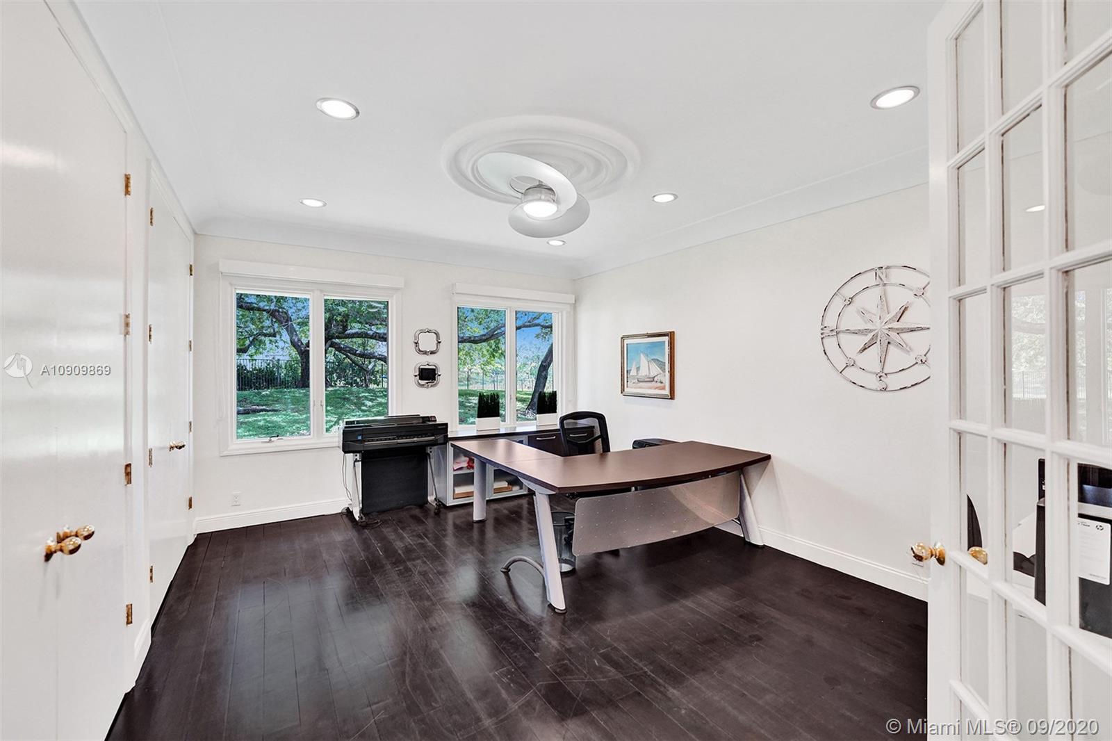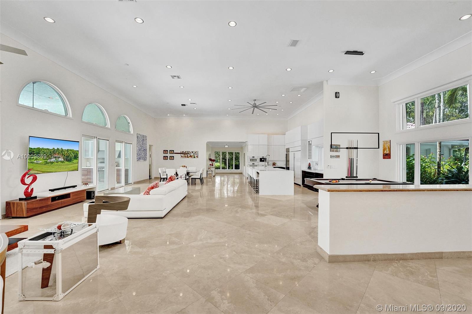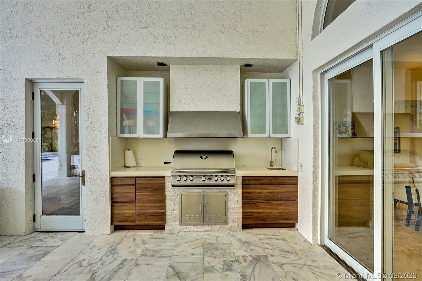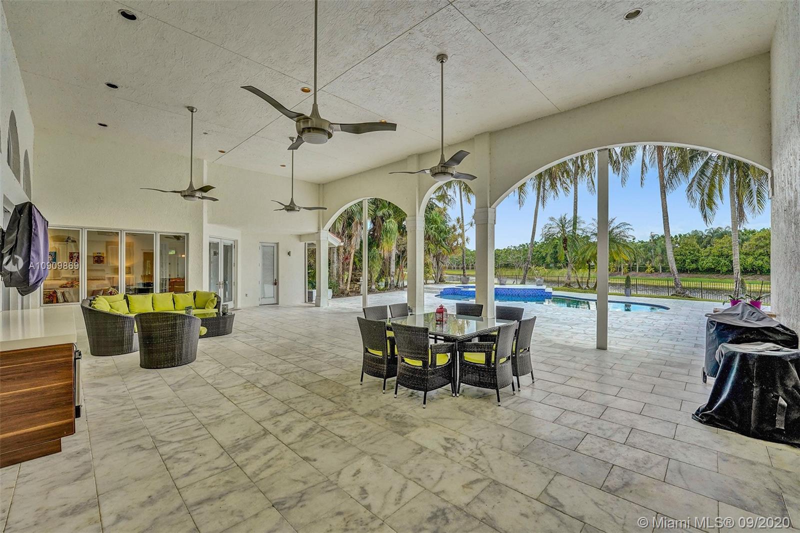 Tucked in the exclusive gated community of Windmill Ranch Estates. Point water lot with wrapping lake views on an oversized 1.25-acre cul de sac lot. 4,981 sq ft under air. Open-concept floor plan with 15' Volume Ceilings, double split bedroom plan. State of the art kitchen recently renovated with custom cabinetry, SubZero refrigerator, beverage center, ice maker & full-size wine cooler. Miele ovens regular oven, steam oven, and combo microwave, 2 Bosch dishwashers. Built-in piped Miele coffee maker. Marble & wood floors flow throughout Expansive covered patio w/summer kitchen. Recently renovated heated salt pool with spa. 6th Bedrm has a private entrance for office/in-laws/nanny quarters.