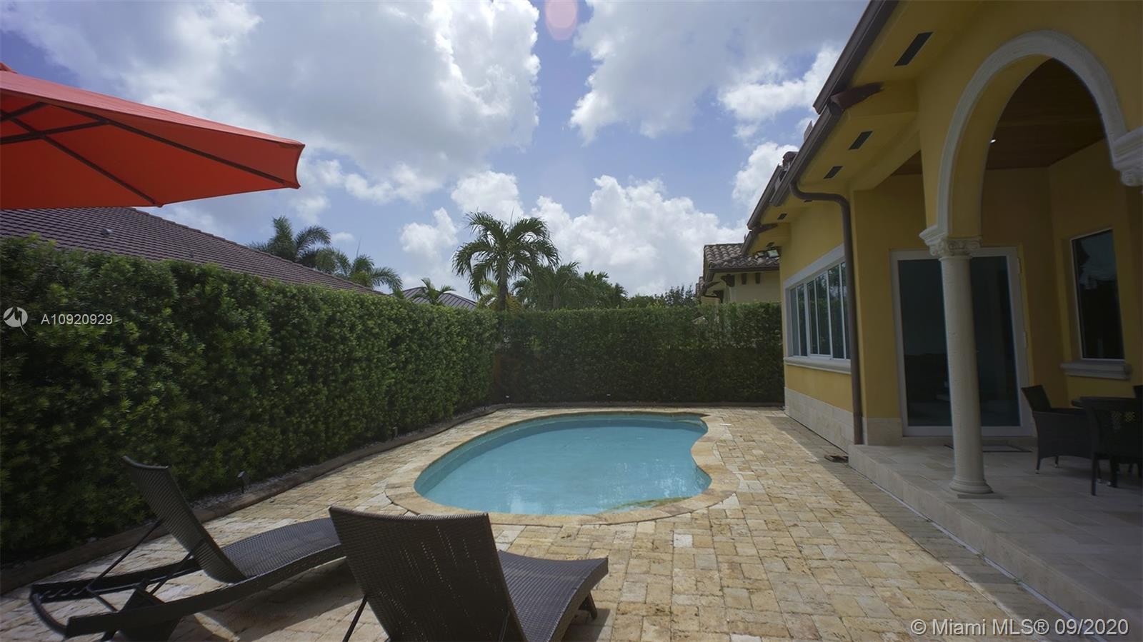 Impeccable custom-made Single Family Home on a big lot land located in the highly desirable city of Doral Community of Vandelbilt. Completely upgraded with high ceilings, top of the line appliances, granite countertops kitchen, security system, sound round system, 4 bedrooms and 3 bathrooms, costume-made closets in real wood, Italian doors, salt chlorinated pool, impact windows, covered terrace to enjoy everyday! Enough space to have all the family cars, boat and extra toys. Ready to move in.. Won't Last