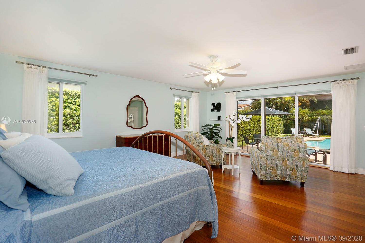 Immaculate and spacious home in THE CITY BEAUTIFUL, Coral Gables, conveniently located near UM and Doctor’s Hospital. Huge master suite addition overlooking sparking pool has sitting area, lavish bath with jacuzzi tub/separate shower & cedar-lined walk-in closet. Split floor plan w/a second master suite offers a remodeled bath & large walk-in closet. Impact Doors & Windows + accordions for added protection, updated kitchen w/SS appliances, tile & Bamboo floors throughout. Large open spaces flooded w/natural light make this home cheery & bright! Updated children’s bath is gorgeous w/double vanity & large Kohler tub. Beautiful landscaping on double lot with privacy hedge, 2-car garage, Flood Zone “X”, termite warranty and recently painted are just a few of the extras. THIS IS A GREAT HOME!