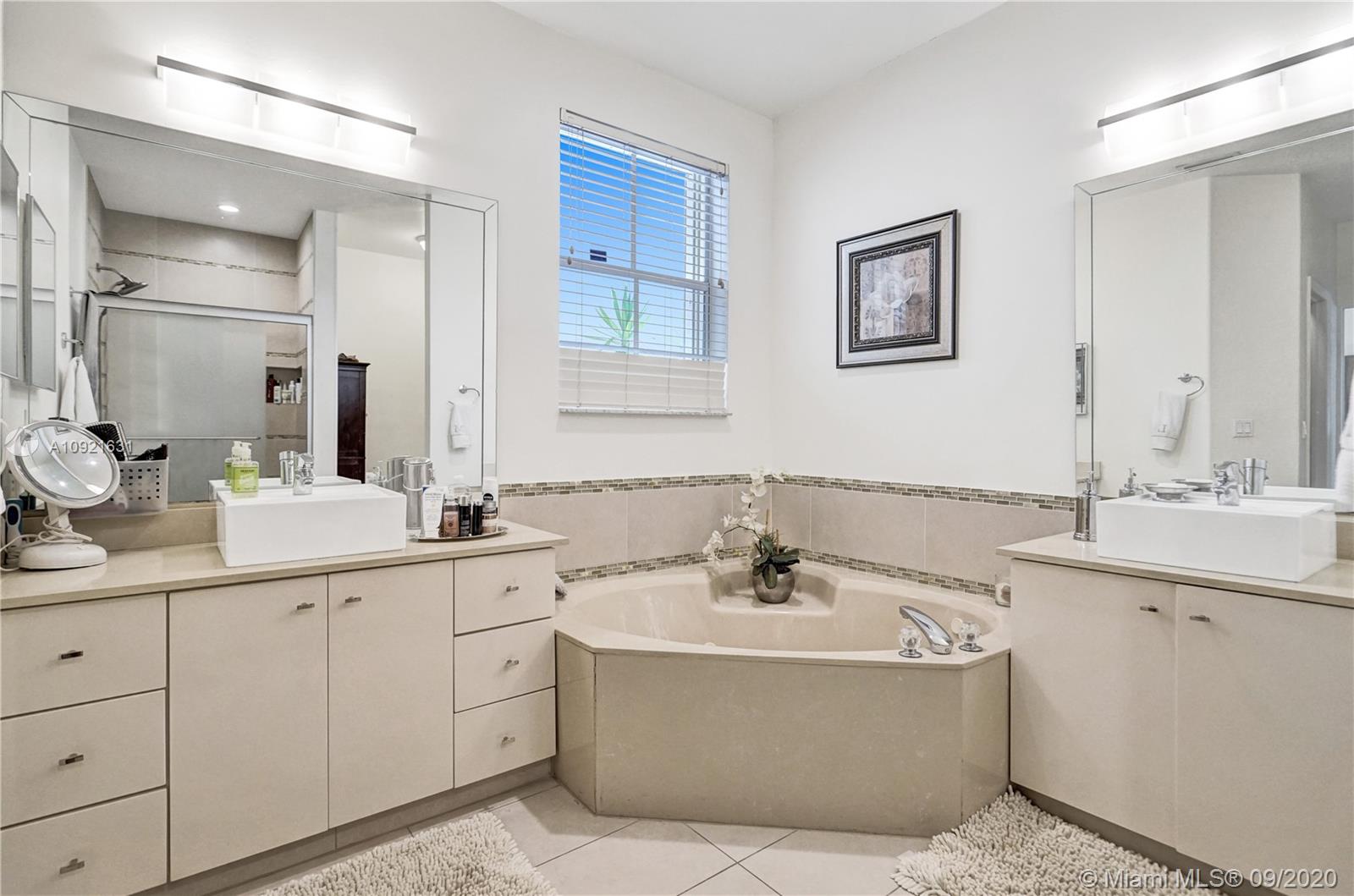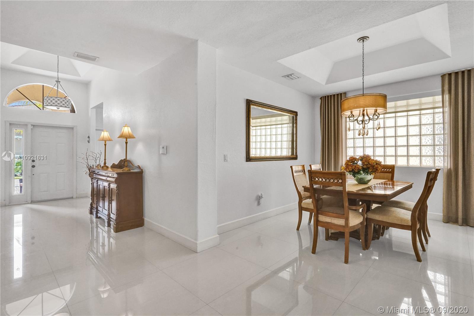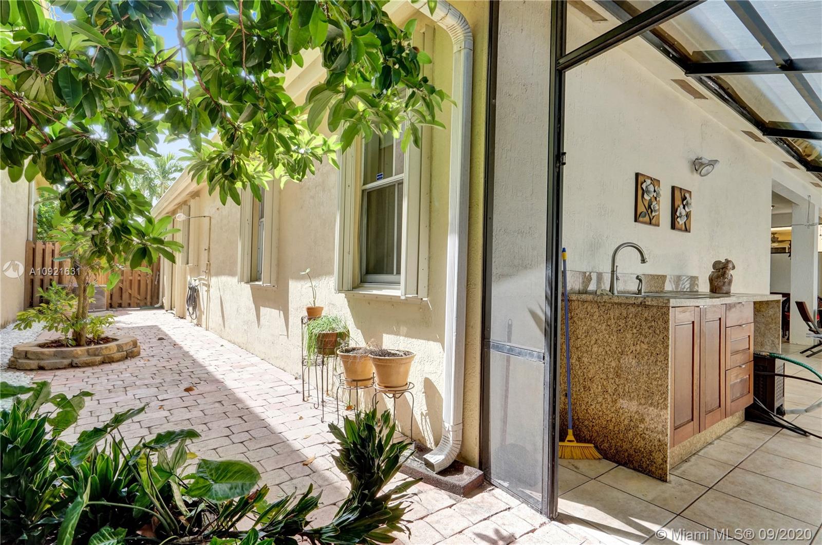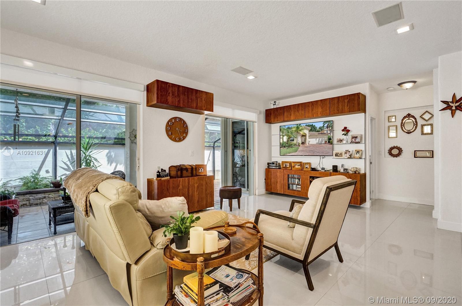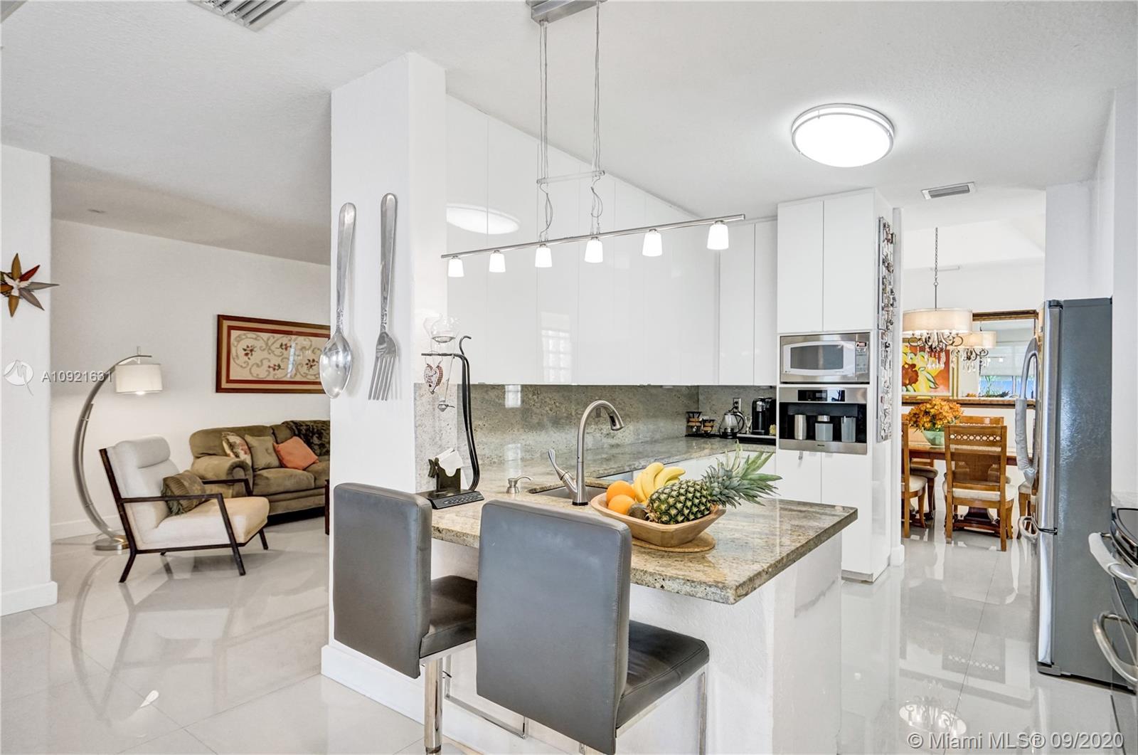 Charming one story home situated in a quiet gated community of Goldvue at Doral. NO NEIGHBOR in the back. Featuring 4 bedrooms 3 baths, 2 car garage + driveway for 2 more cars. Exquisite remodeled home with upgraded kitchen with stainless steel appliances, cover screen terrace. Low maintenance fee includes 24 hours security, common areas, basic cable, alarm monitoring, community pool.